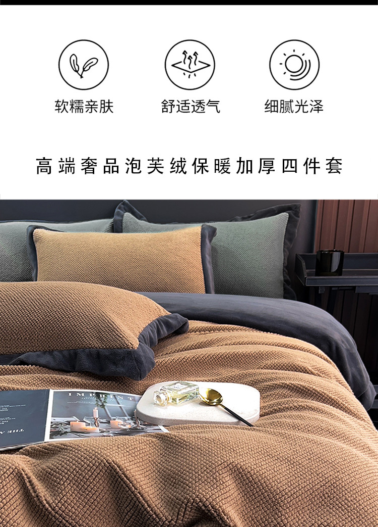 网客 2024高端奢品泡芙绒四件套 奶咖