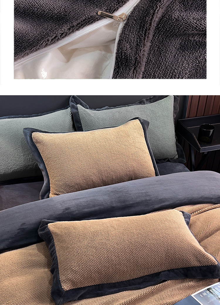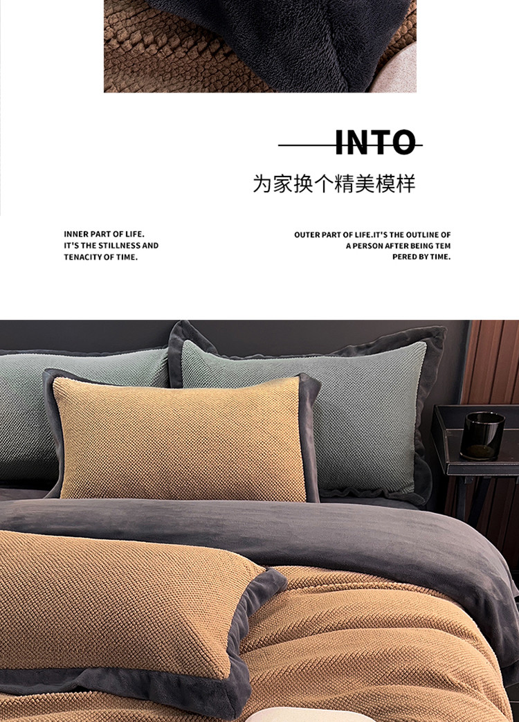 (总)网客家纺 2025新款羊毛绒牛奶绒夹棉床盖四件套,豹点-深灰,简格-黑色,简格-咖色,空间-红色,泥点-灰色,泥点-咖色,维奥-灰色,斜格-灰色,斜格-墨绿