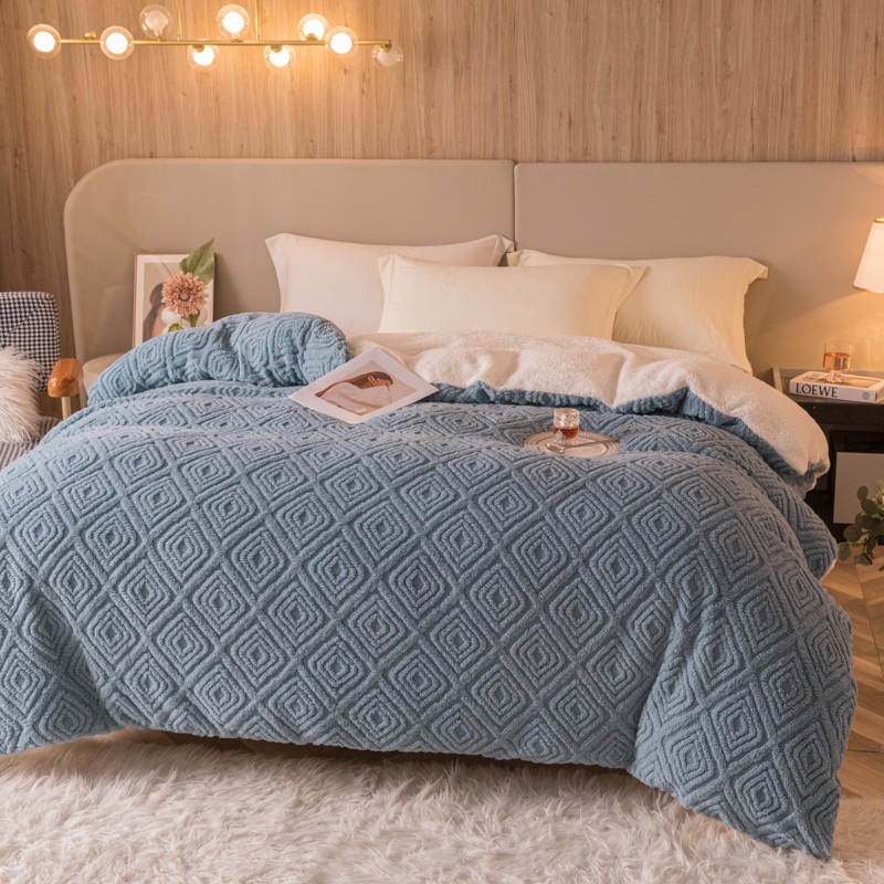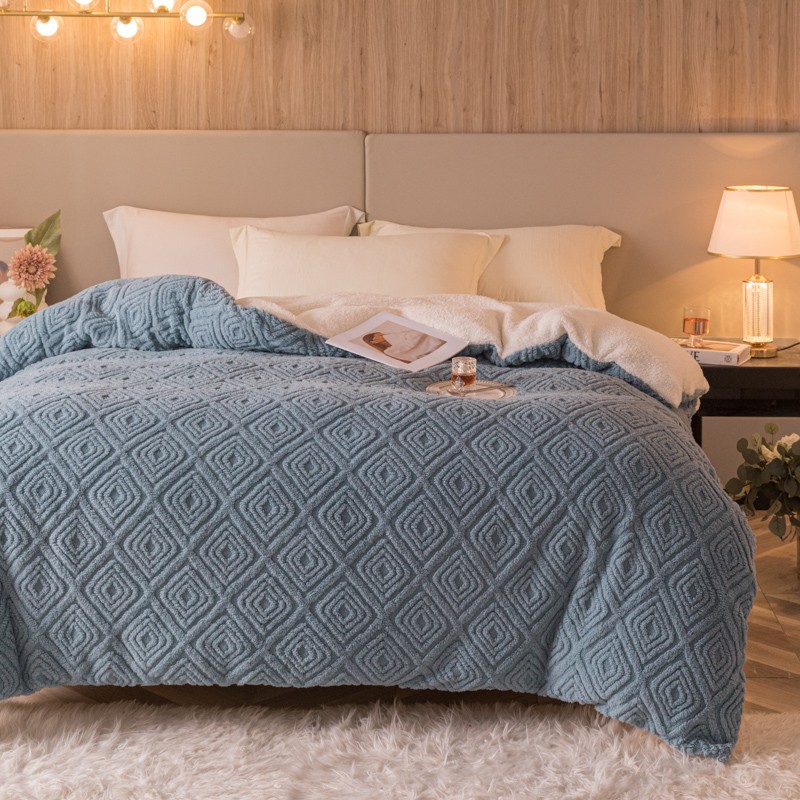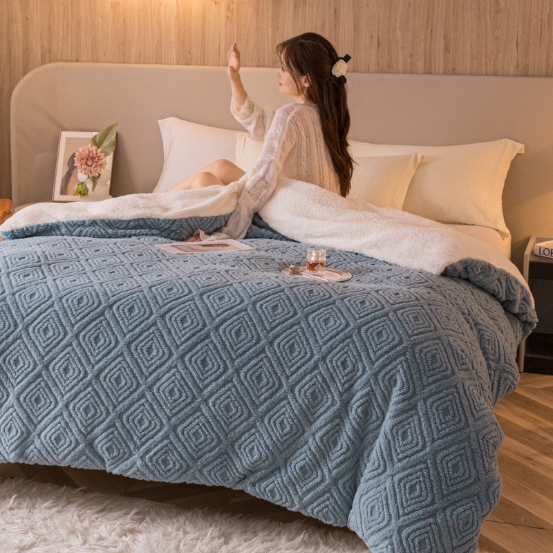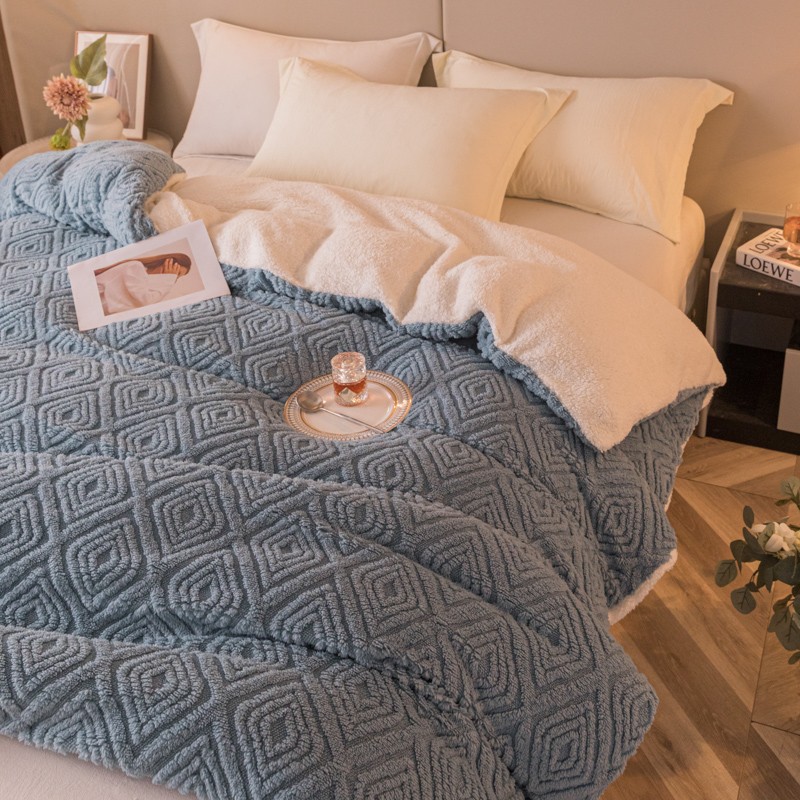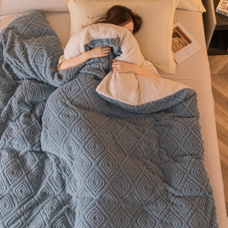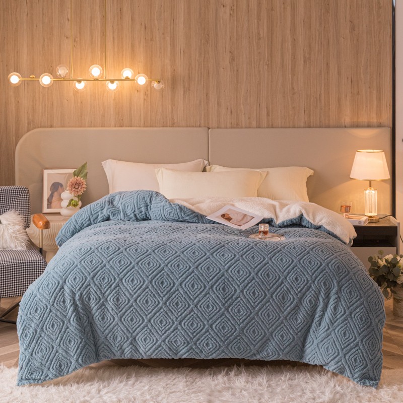 商品名称:简爱-2025舒棉绒羊羔绒单被套多功能毯 菱形苏格-暮色蓝