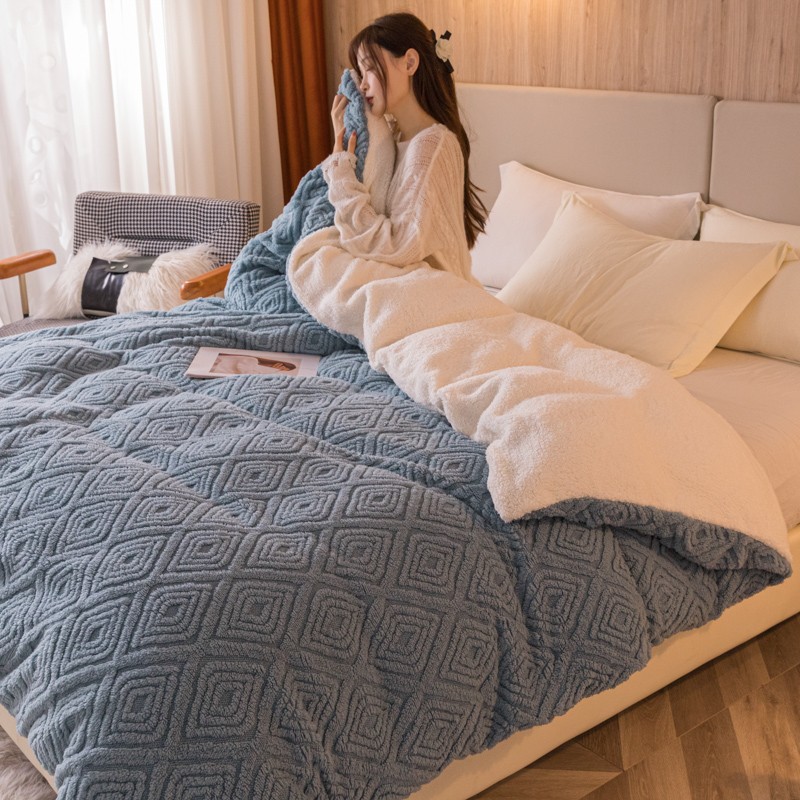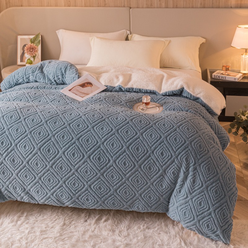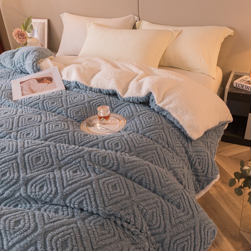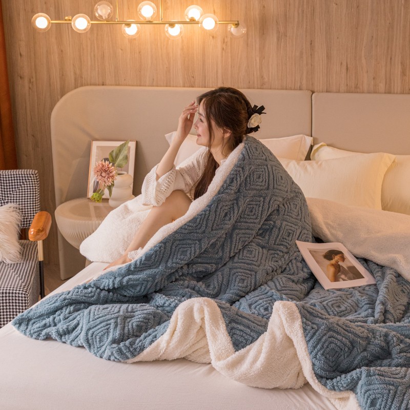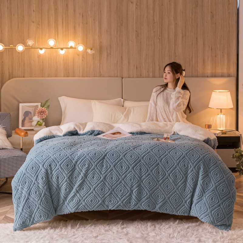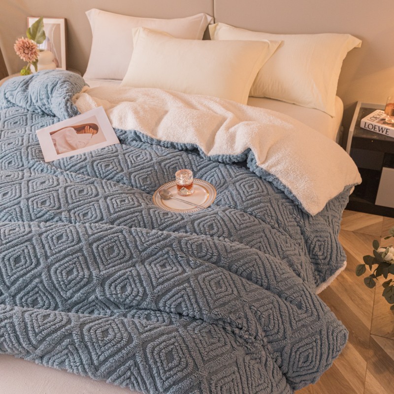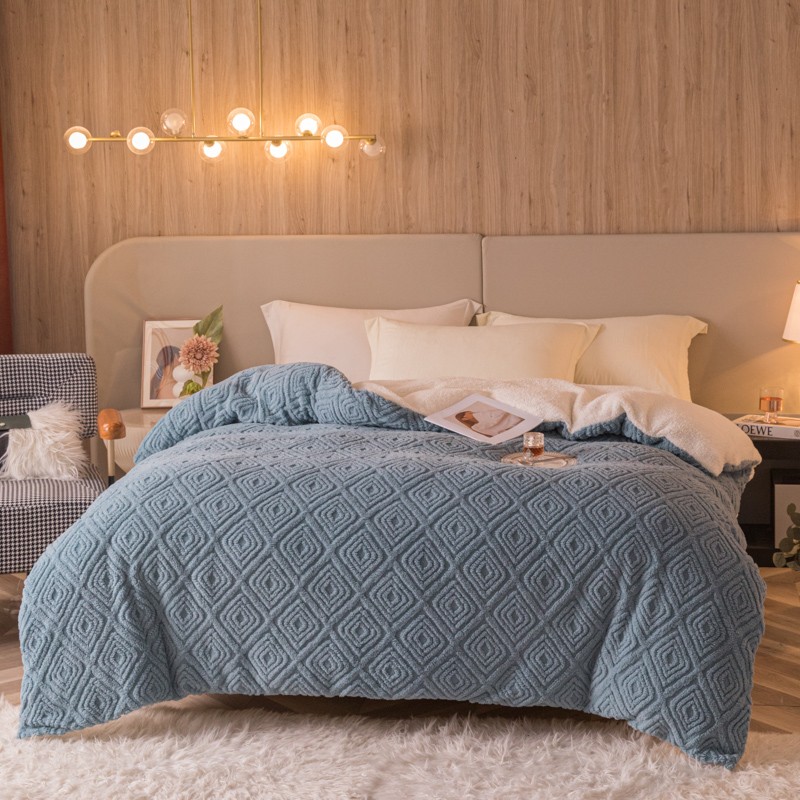 商品名称:简爱-2025舒棉绒羊羔绒单被套多功能毯 菱形苏格-暮色蓝