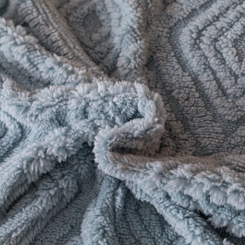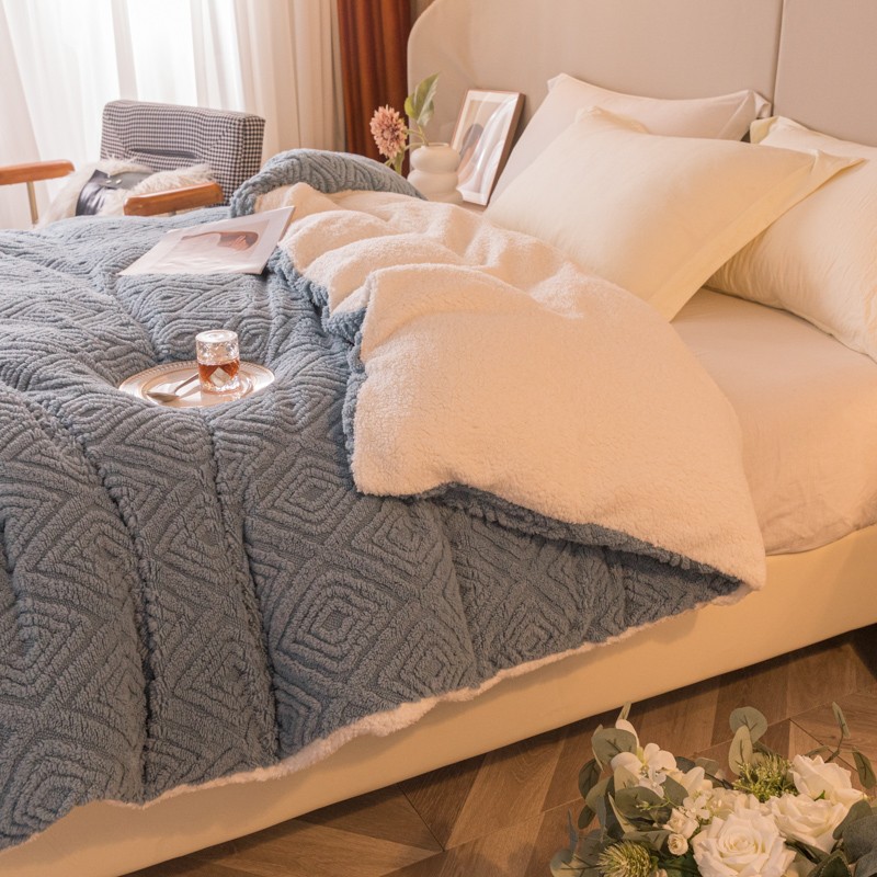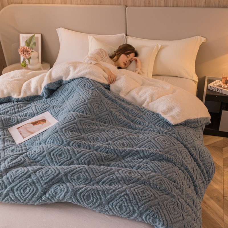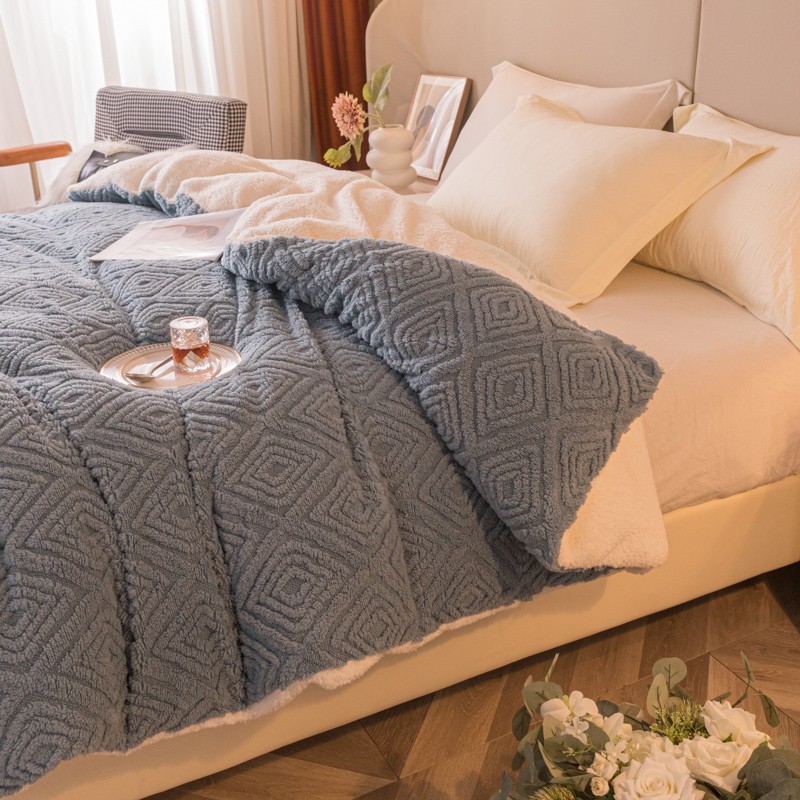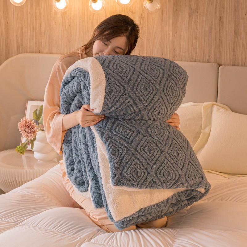 简爱-2025舒棉绒羊羔绒单被套多功能毯 菱形苏格-暮色蓝