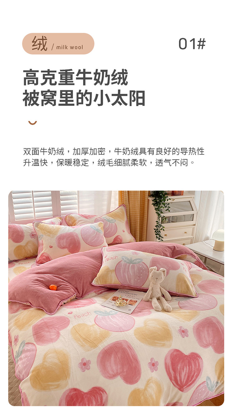 商品名称:金鑫汇 2022新款牛奶绒四件套系列-单床笠 粉波波