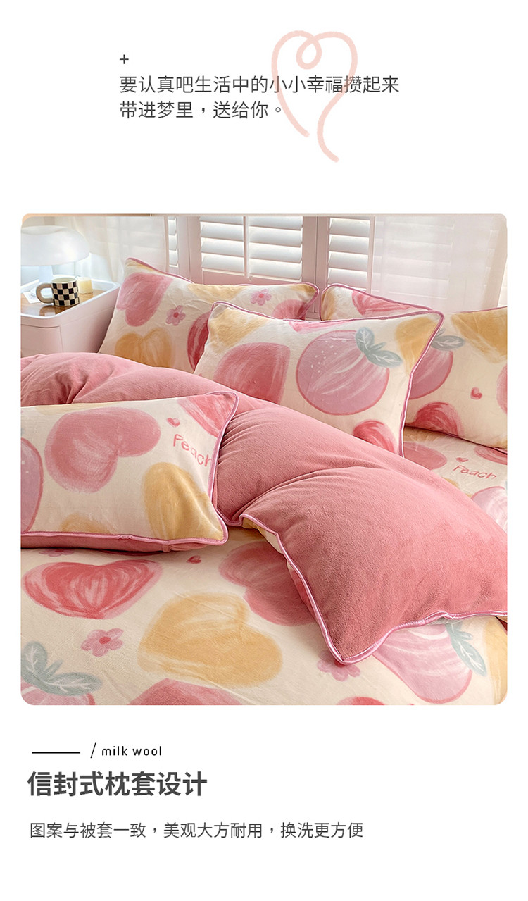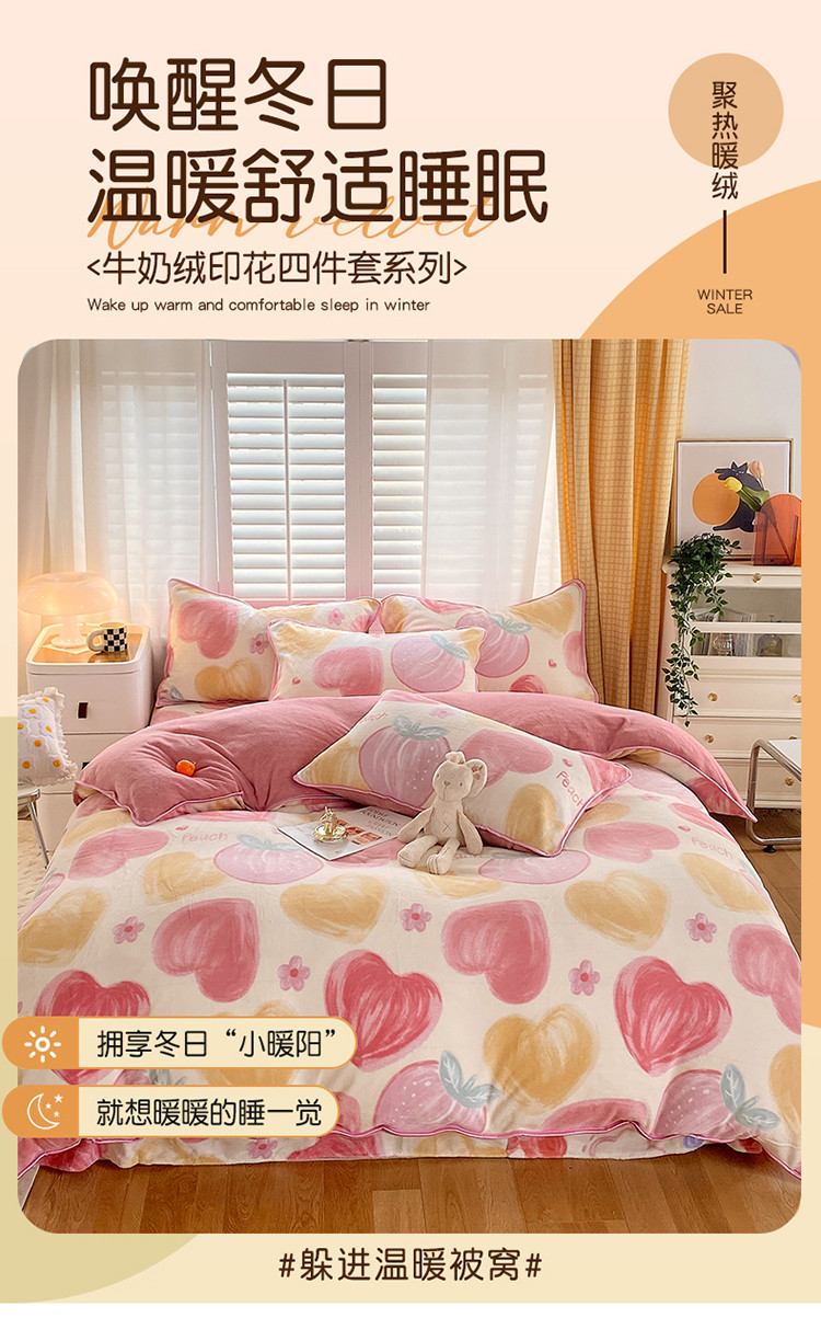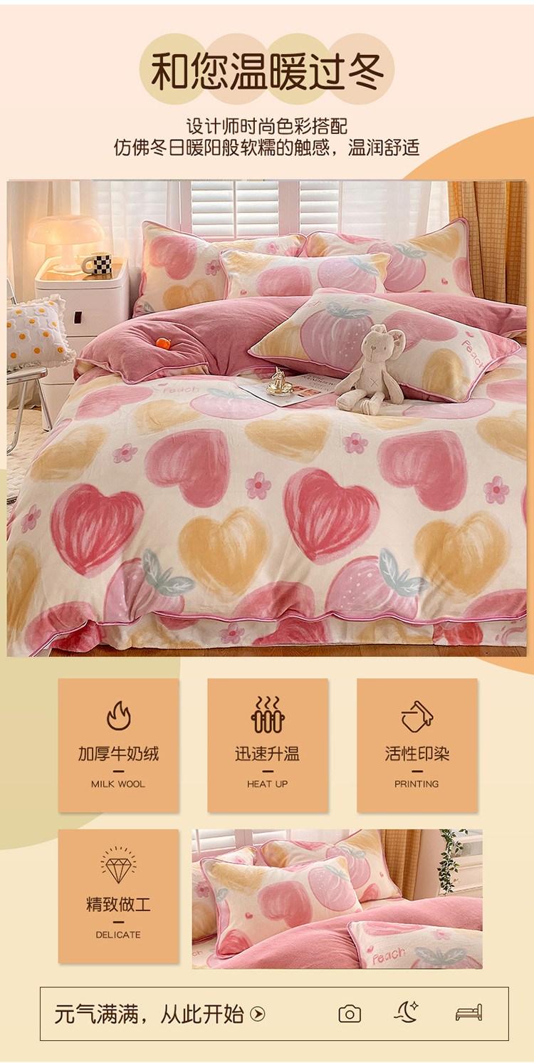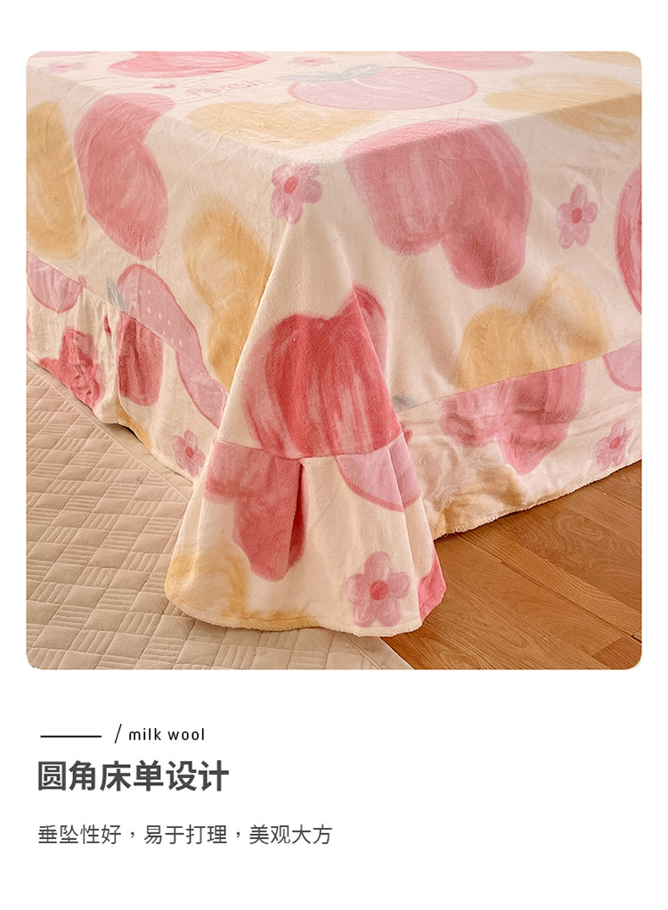金鑫汇 2022新款牛奶绒四件套系列-单床笠 粉波波