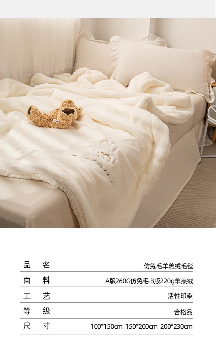 当前位置: 91家纺网 > 商品网购 > 毛毯休闲毯绒毯 > 毛毯 > 潮邦2025新款仿兔毛羊羔绒毛球毯含买家秀 绣花款白