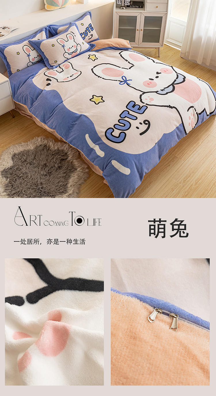 (总)宅部落 2022大版卡通牛奶绒四件套法莱绒三件套