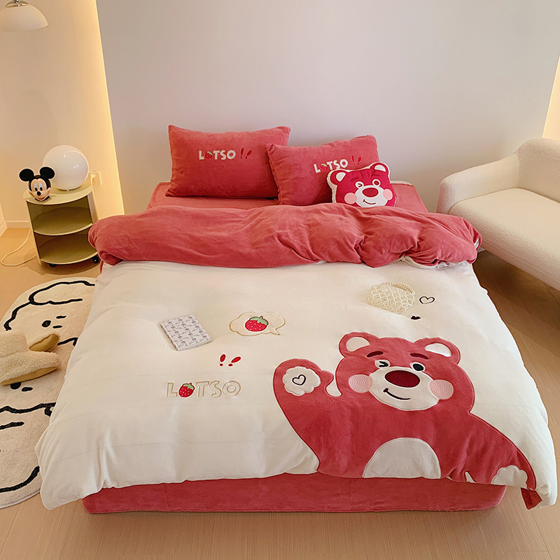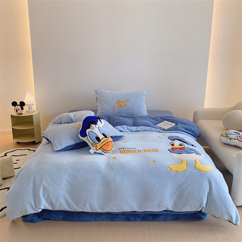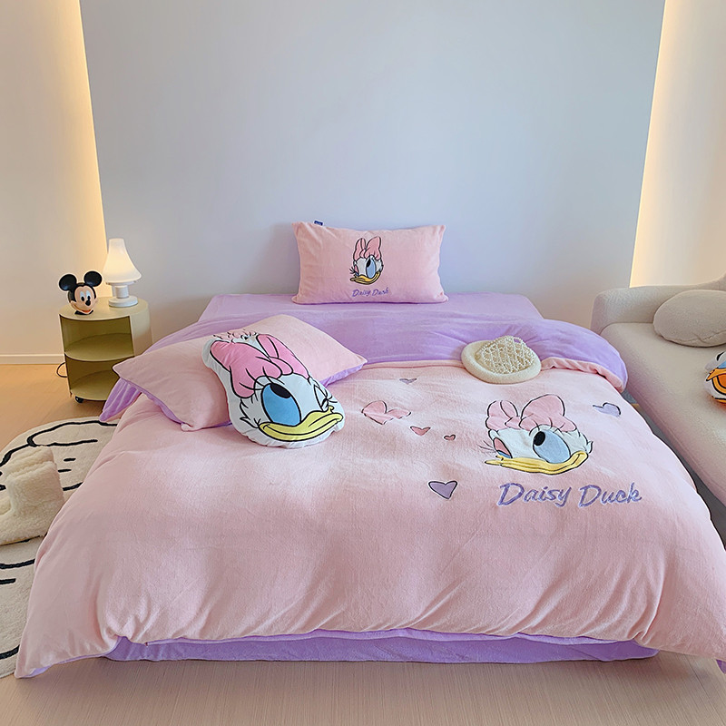 (总)星期八 2022新款230g双面牛奶绒迪士尼刺绣四件套
