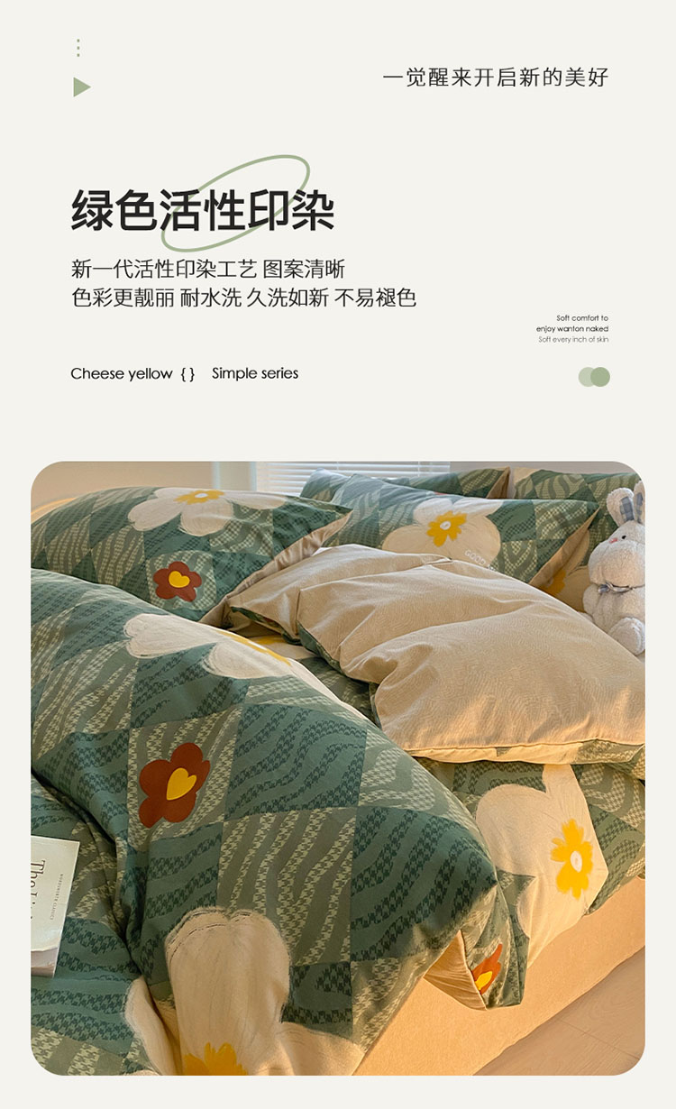 (总)雅居纺家纺 2022新款13070全棉印花四件套,波纹,多彩,简笔画,莓关系,奶油绿豹纹,倾心,数字