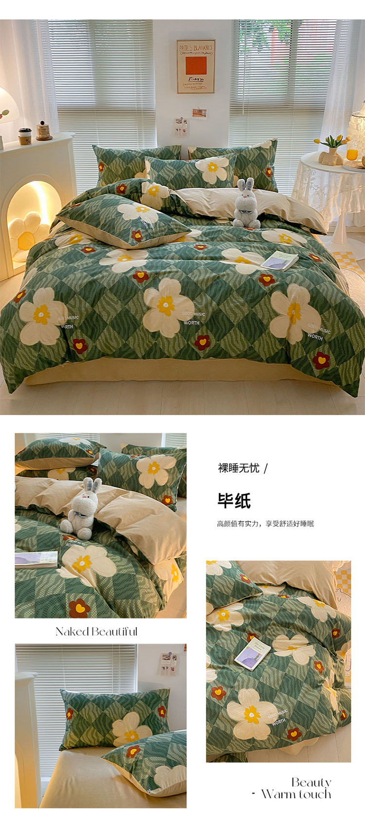雅居纺 2022新款生态磨毛四件套 毕纸