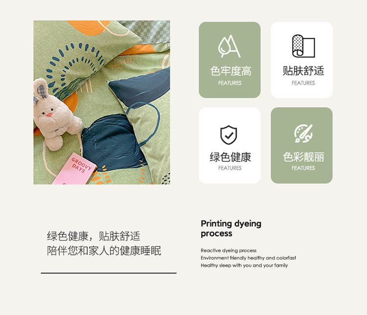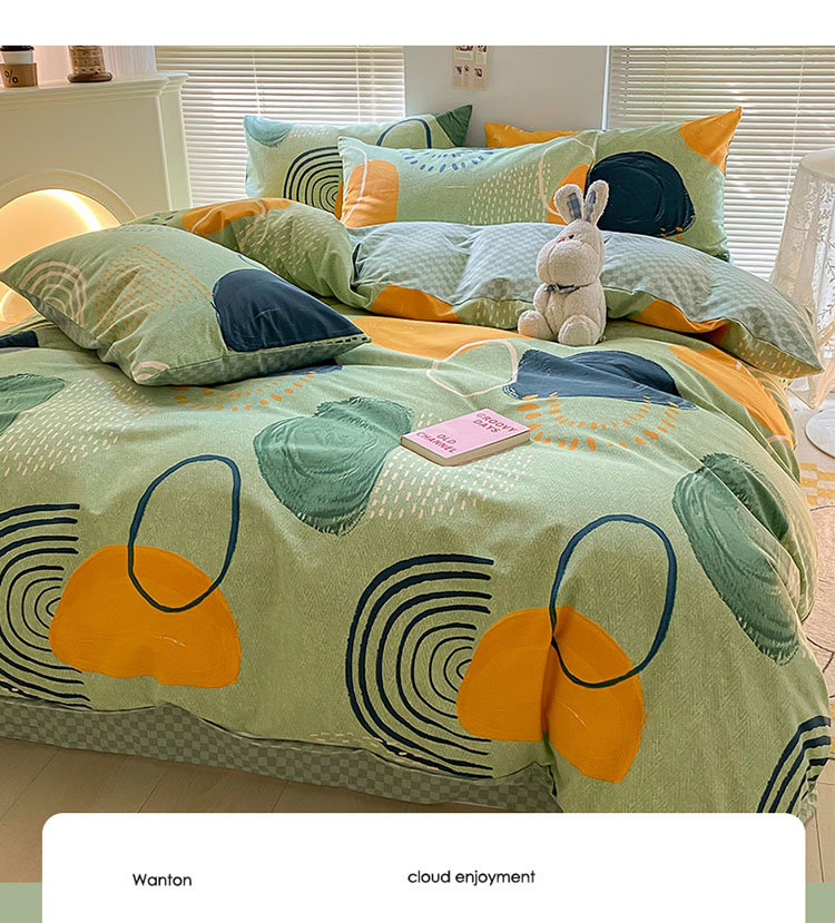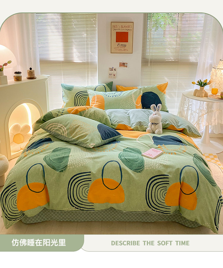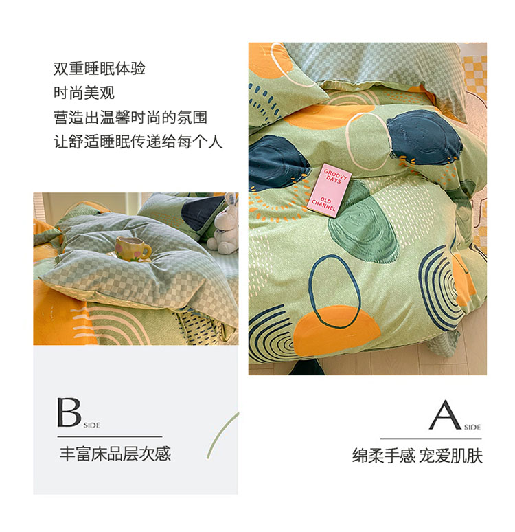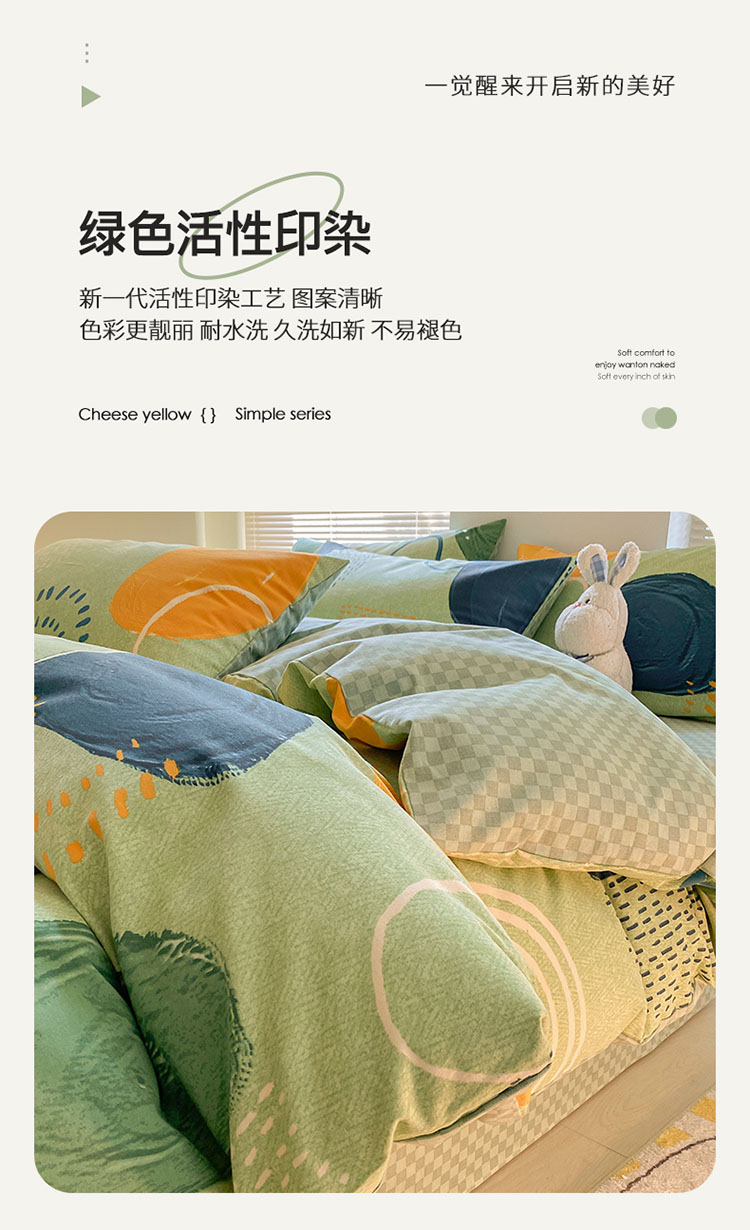 (总)雅居纺家纺 2022新款13070全棉印花四件套,波纹,多彩,简笔画,莓关系,奶油绿豹纹,倾心,数字