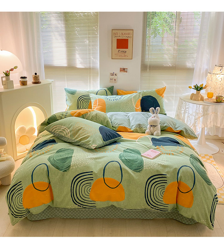 (总)雅居纺家纺 2025新款简约兔绒球球保暖舒适四件套-波点,波点-白咖,波点-粉黄,波点-咖,波点-蓝黄