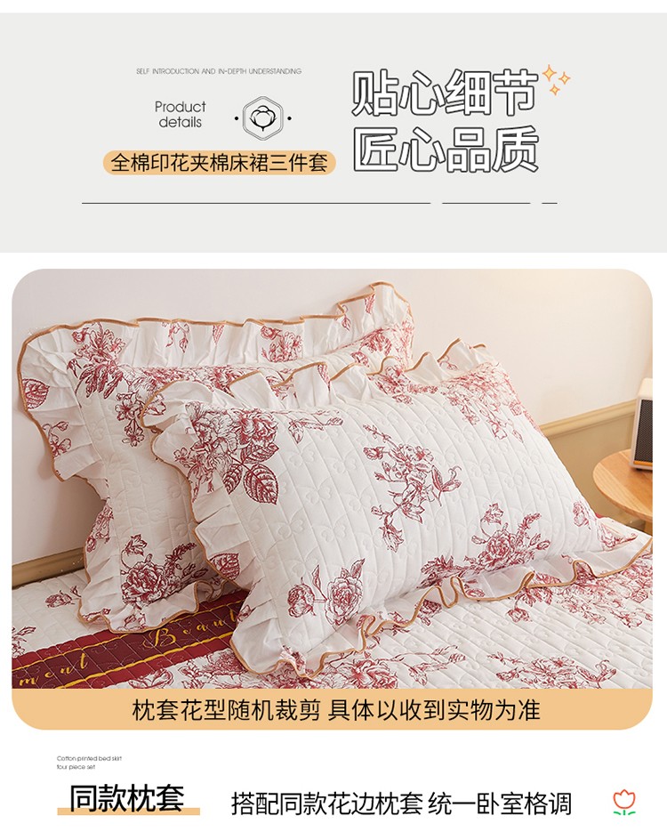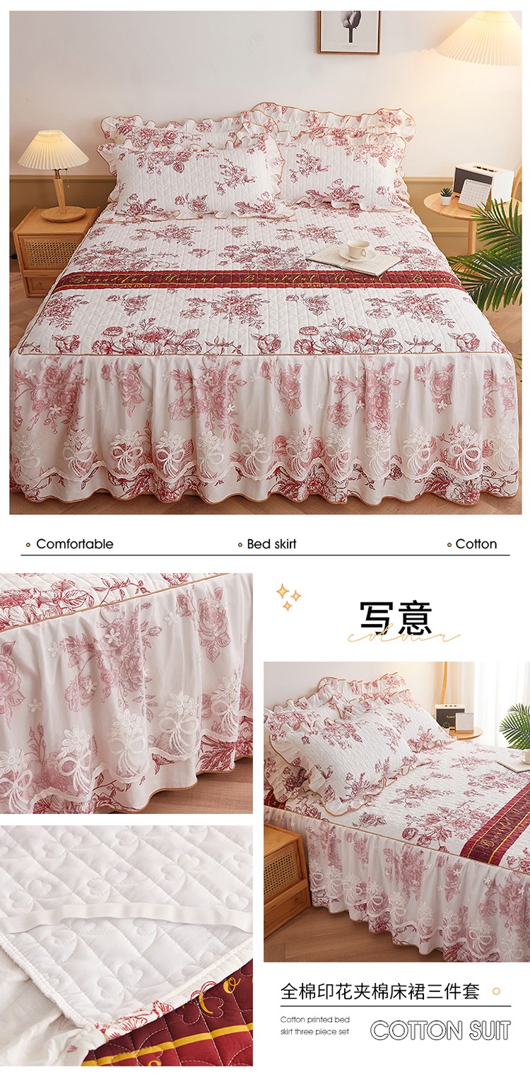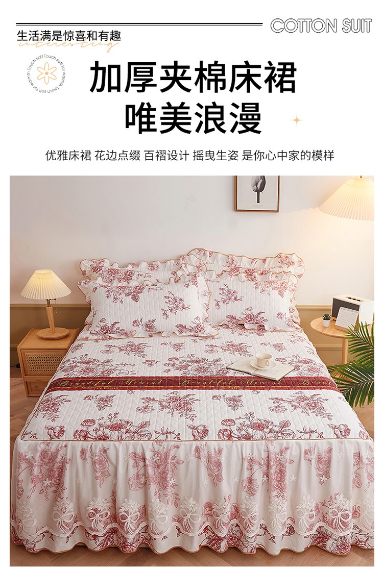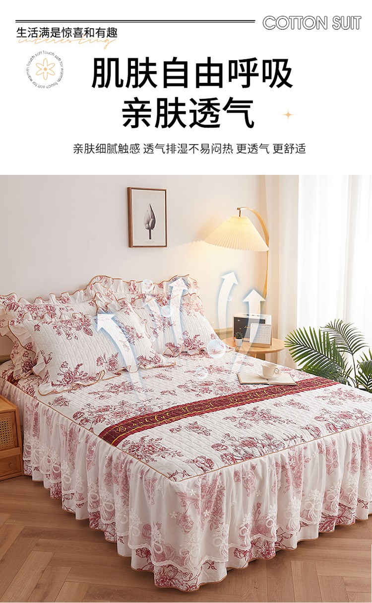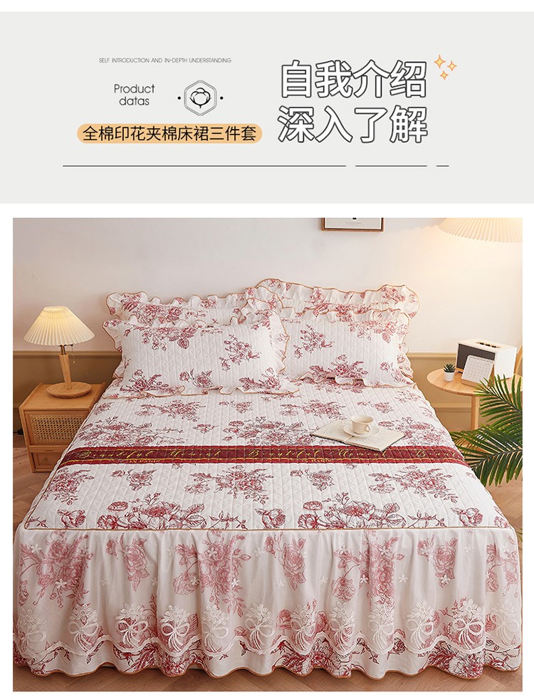 宜凡 2023新款四季款全棉夹棉床裙三件套 写意
