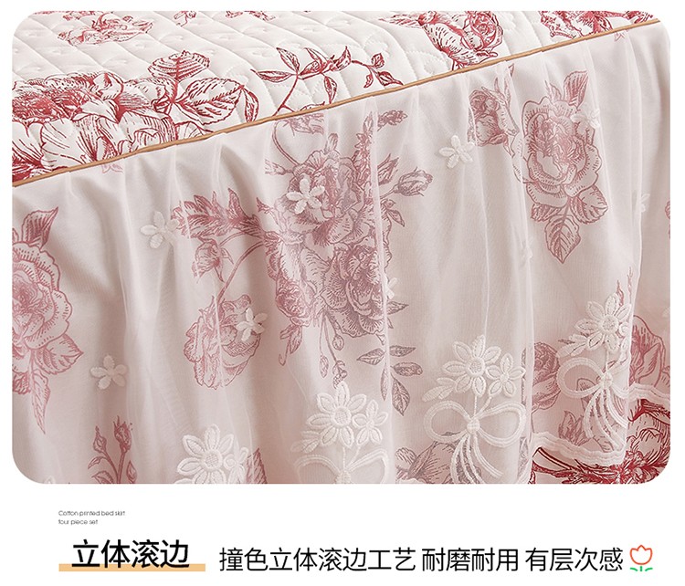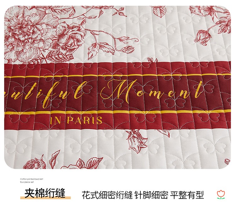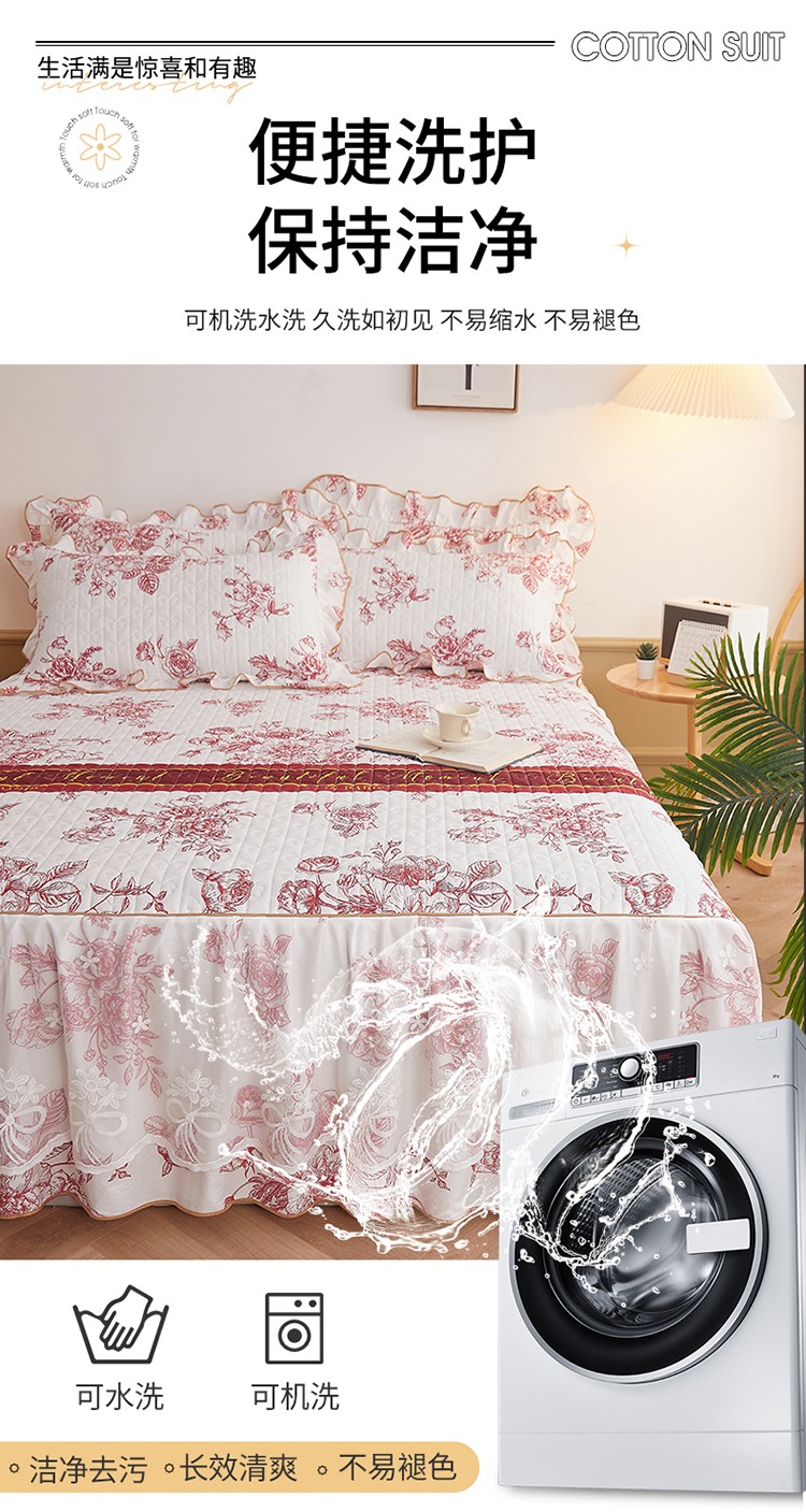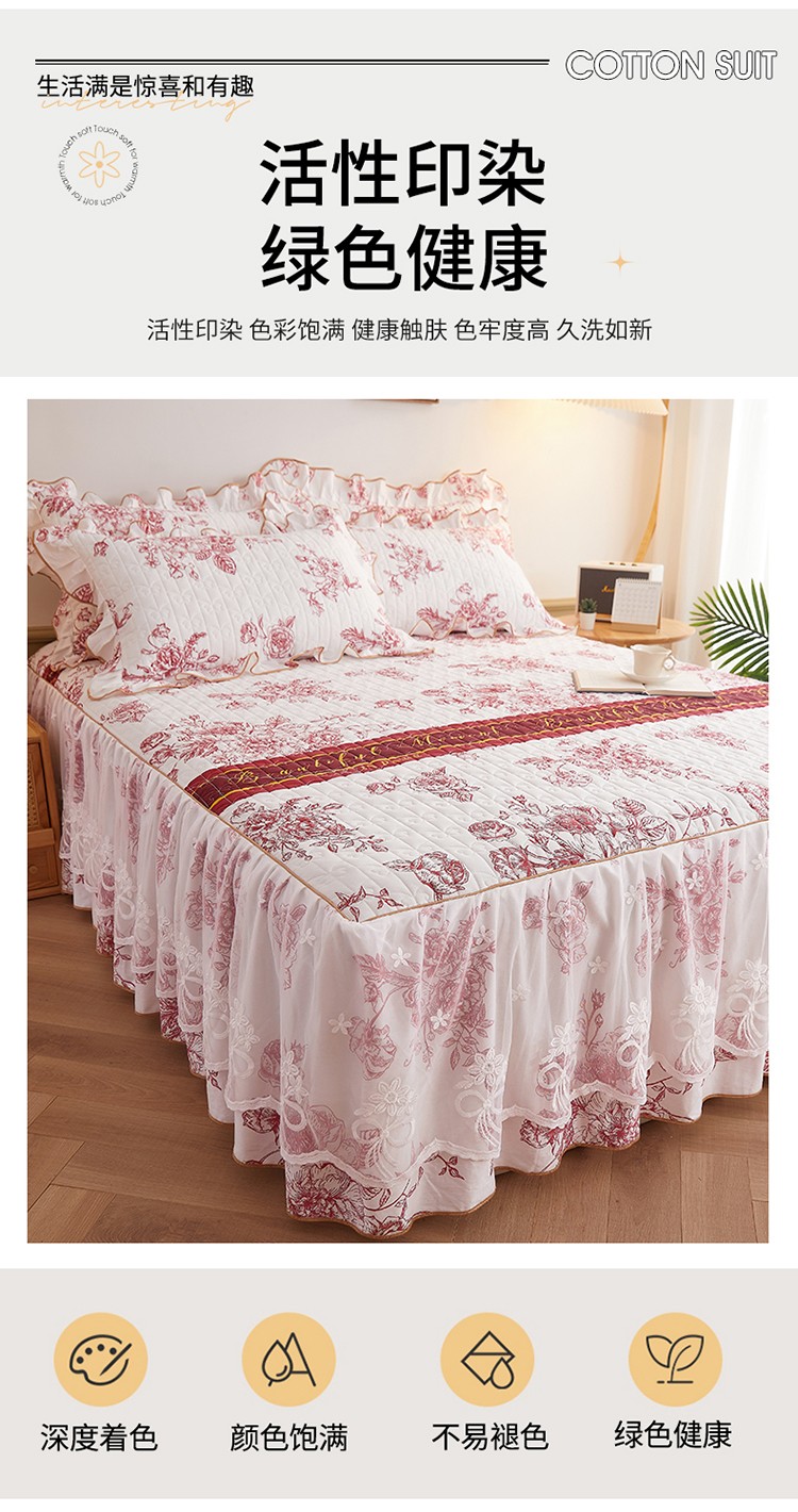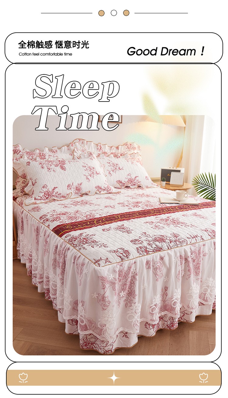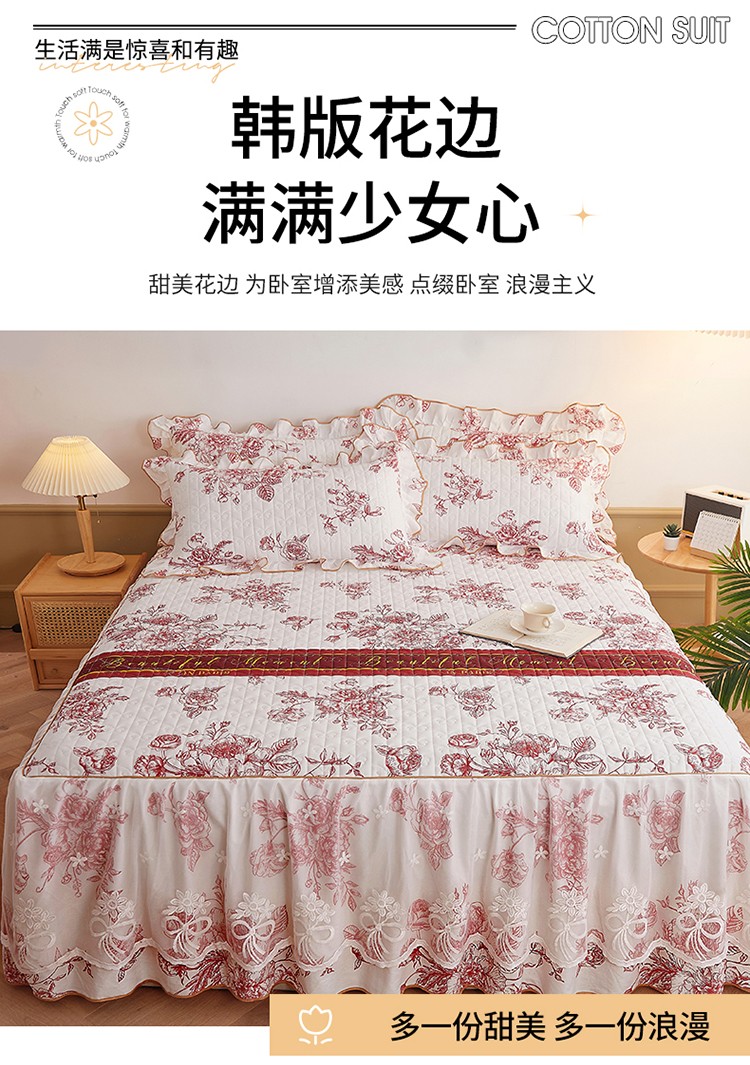 宜凡 2023新款四季款全棉夹棉床裙三件套 写意
