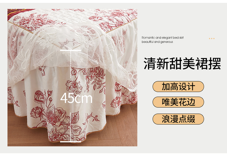 (总)宜凡家纺 2025新款婴儿绒压花全夹棉床裙四件套,韵雅-中国红,韵雅-黑天鹅
