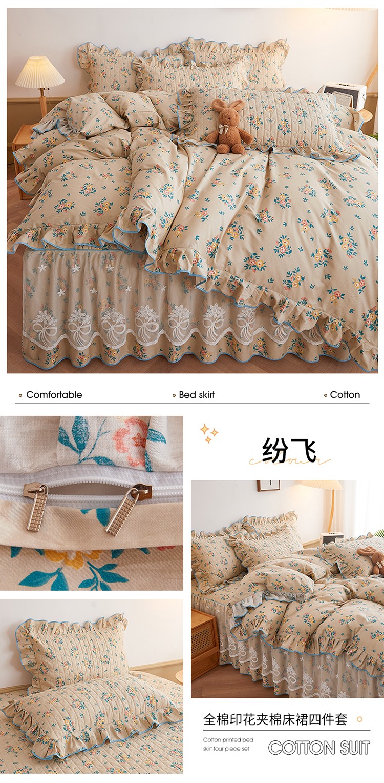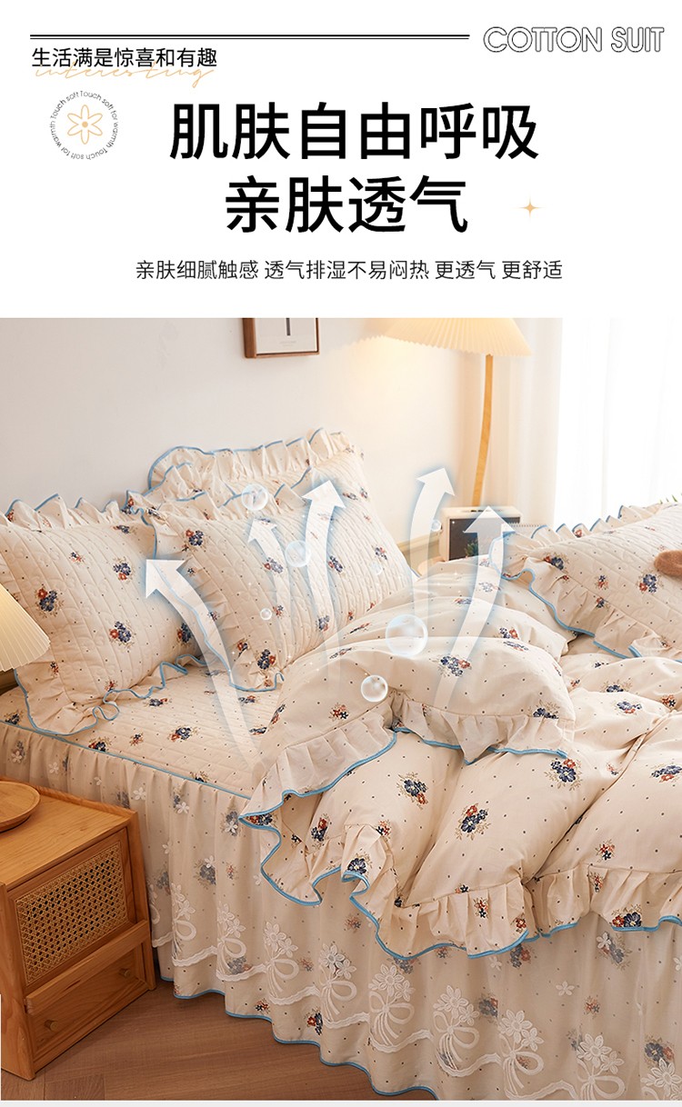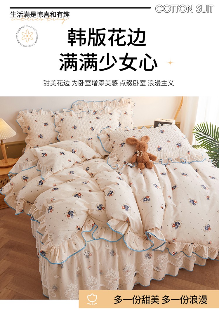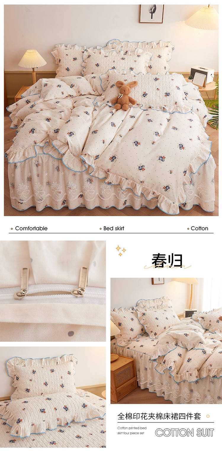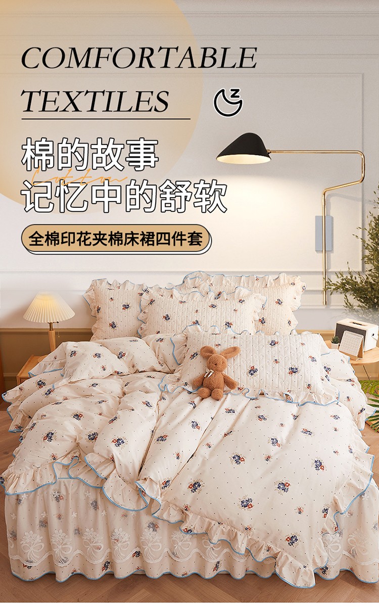 (总)宜凡 2023新款四季款全棉夹棉床裙四件套