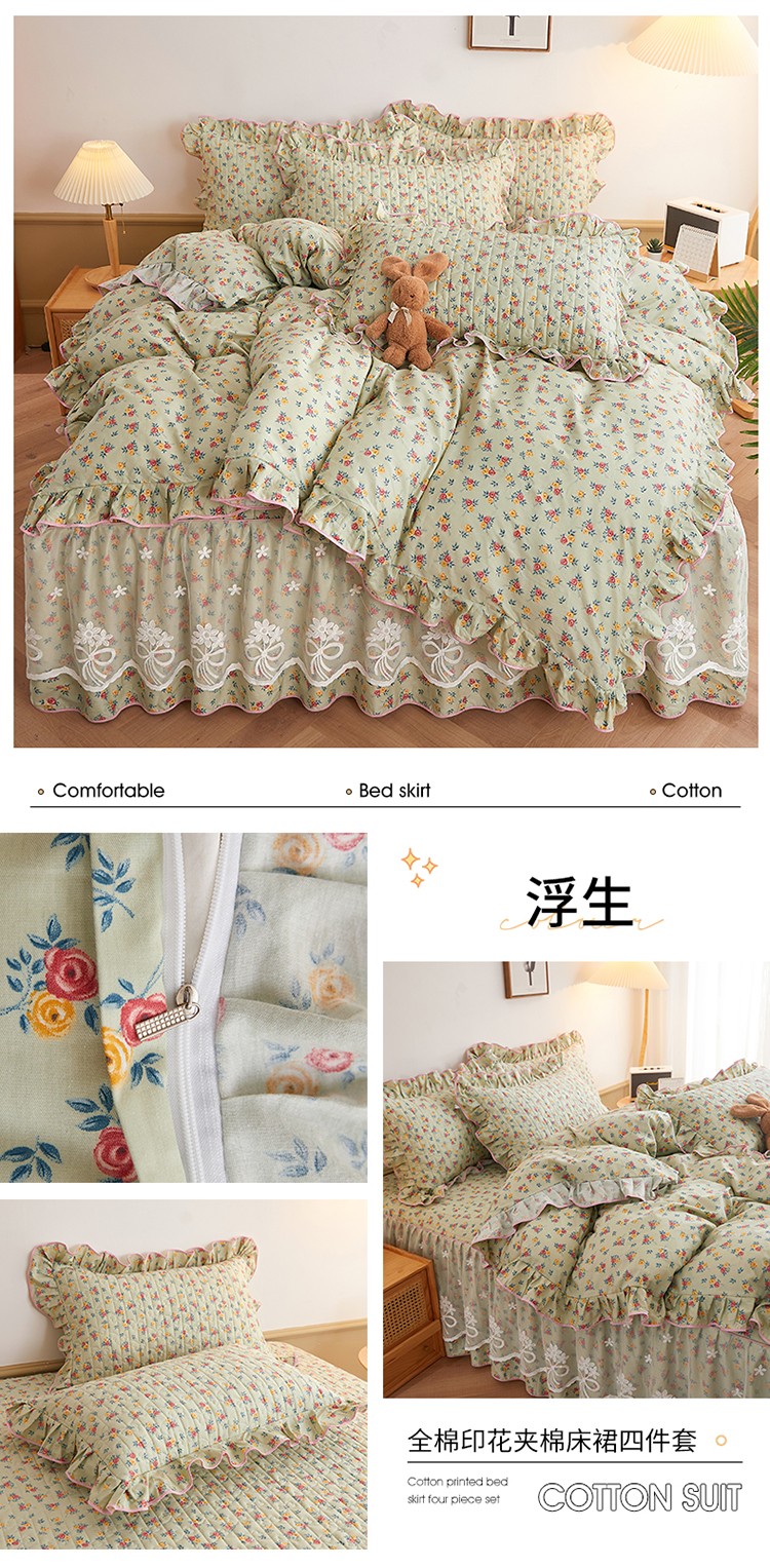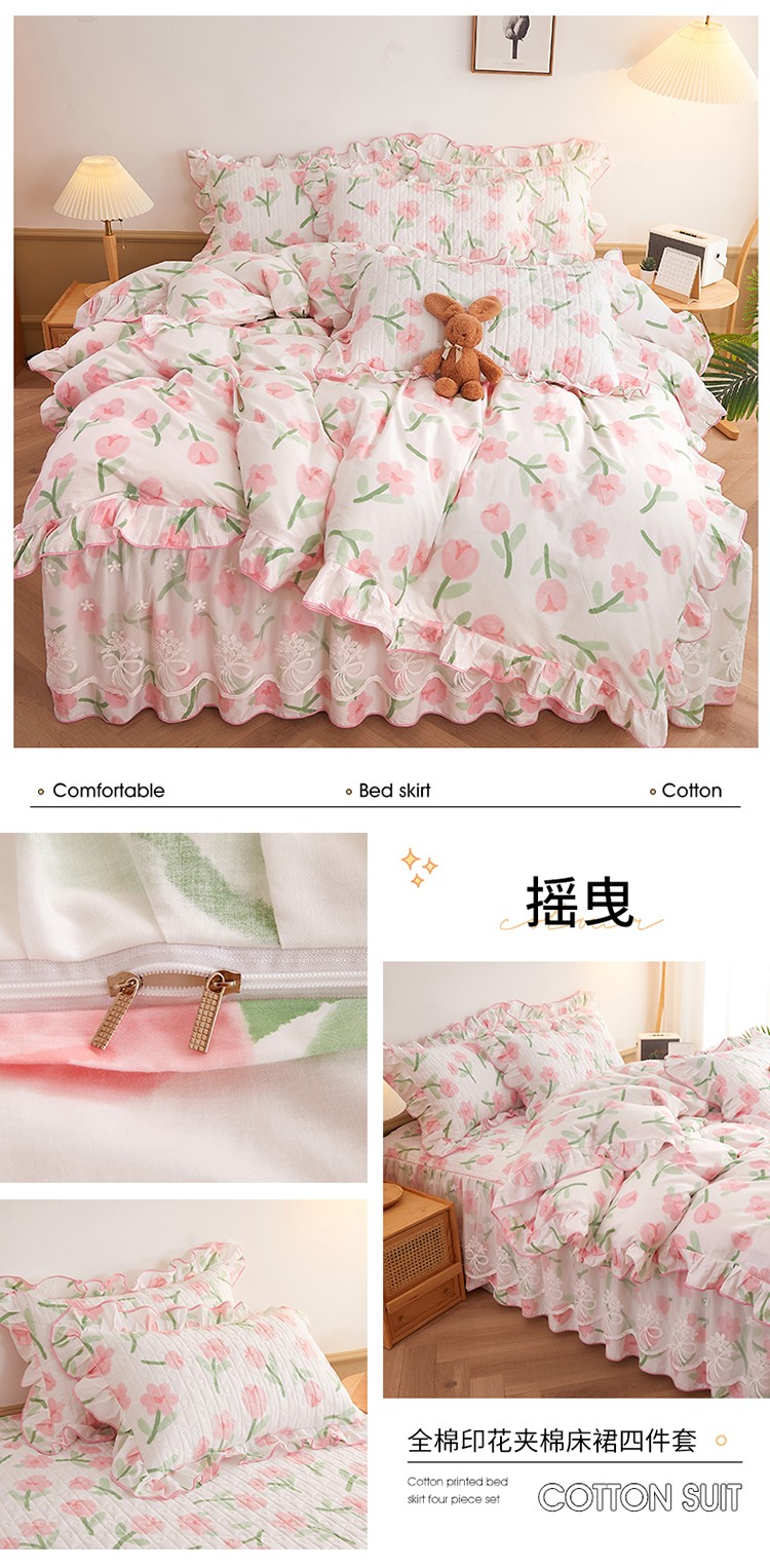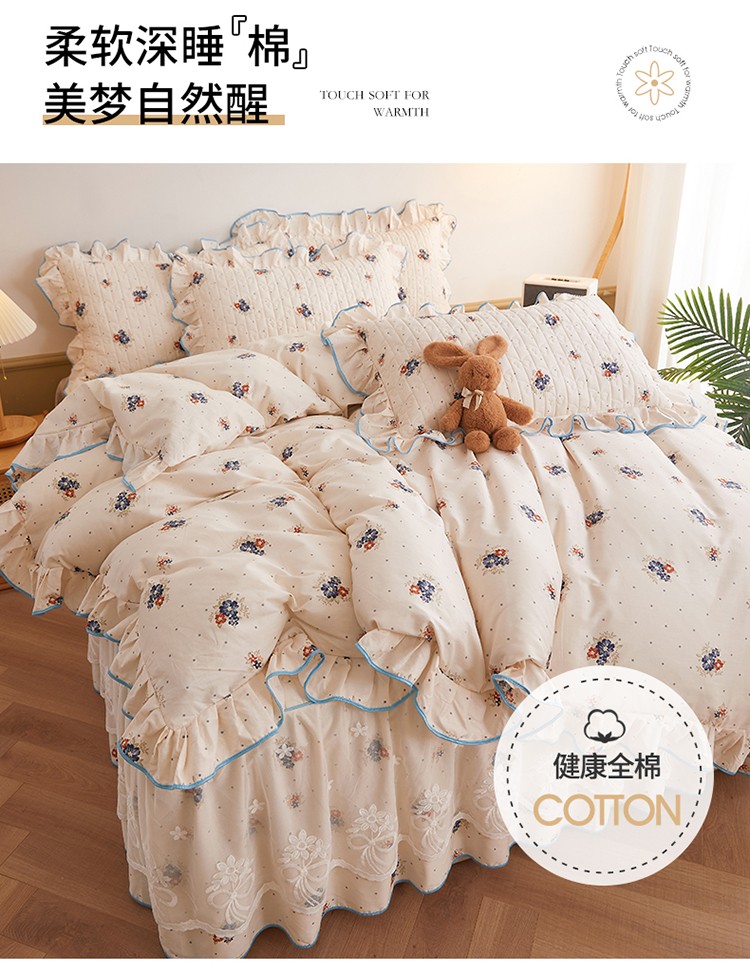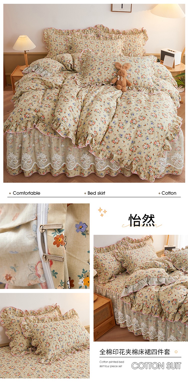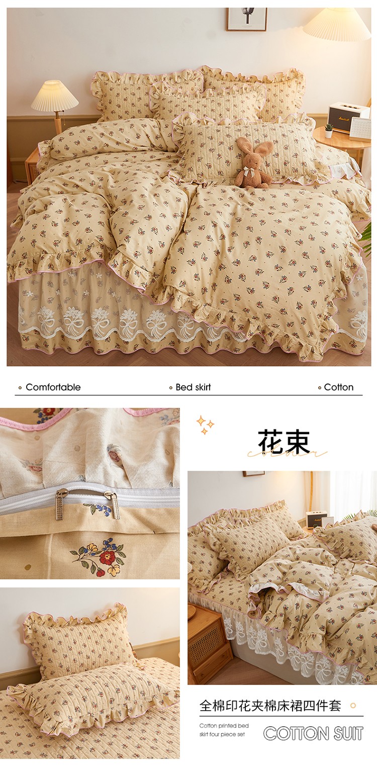 (总)宜凡 2023新款四季款全棉夹棉床裙四件套