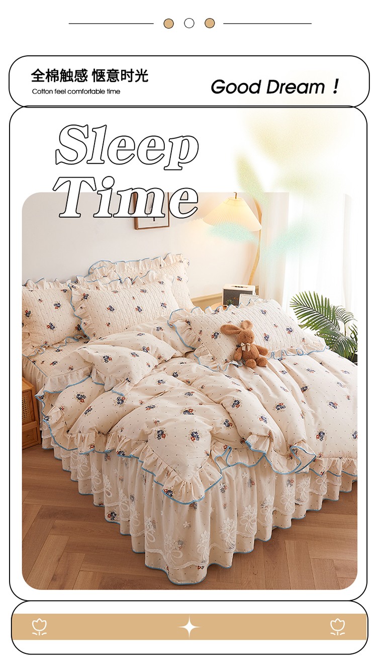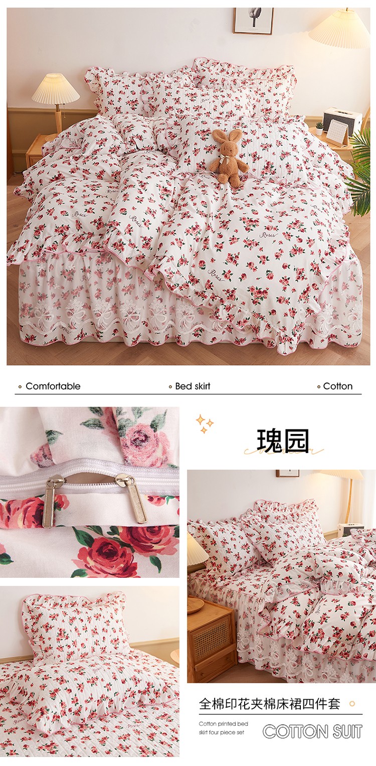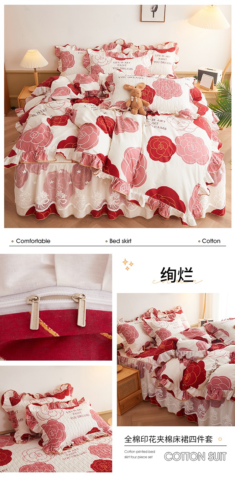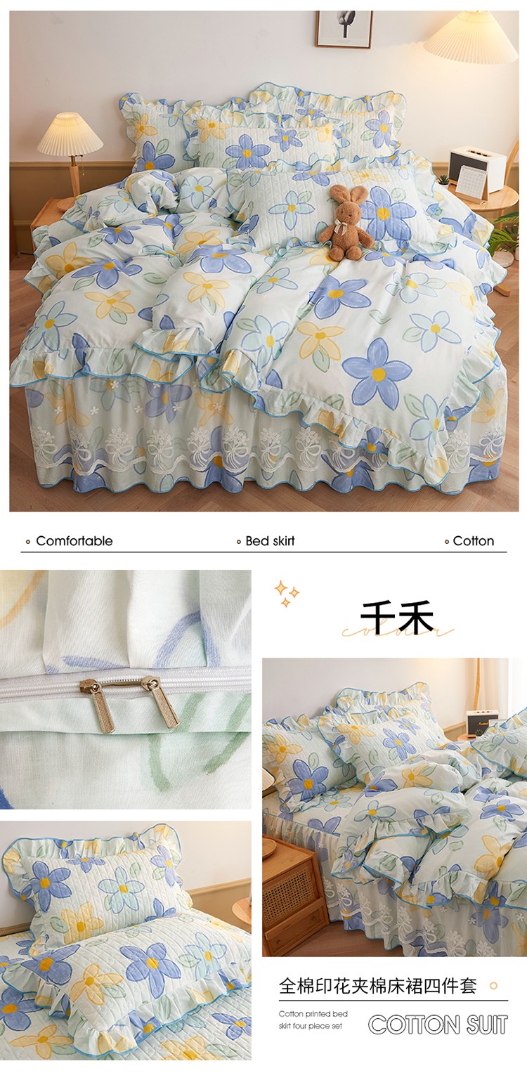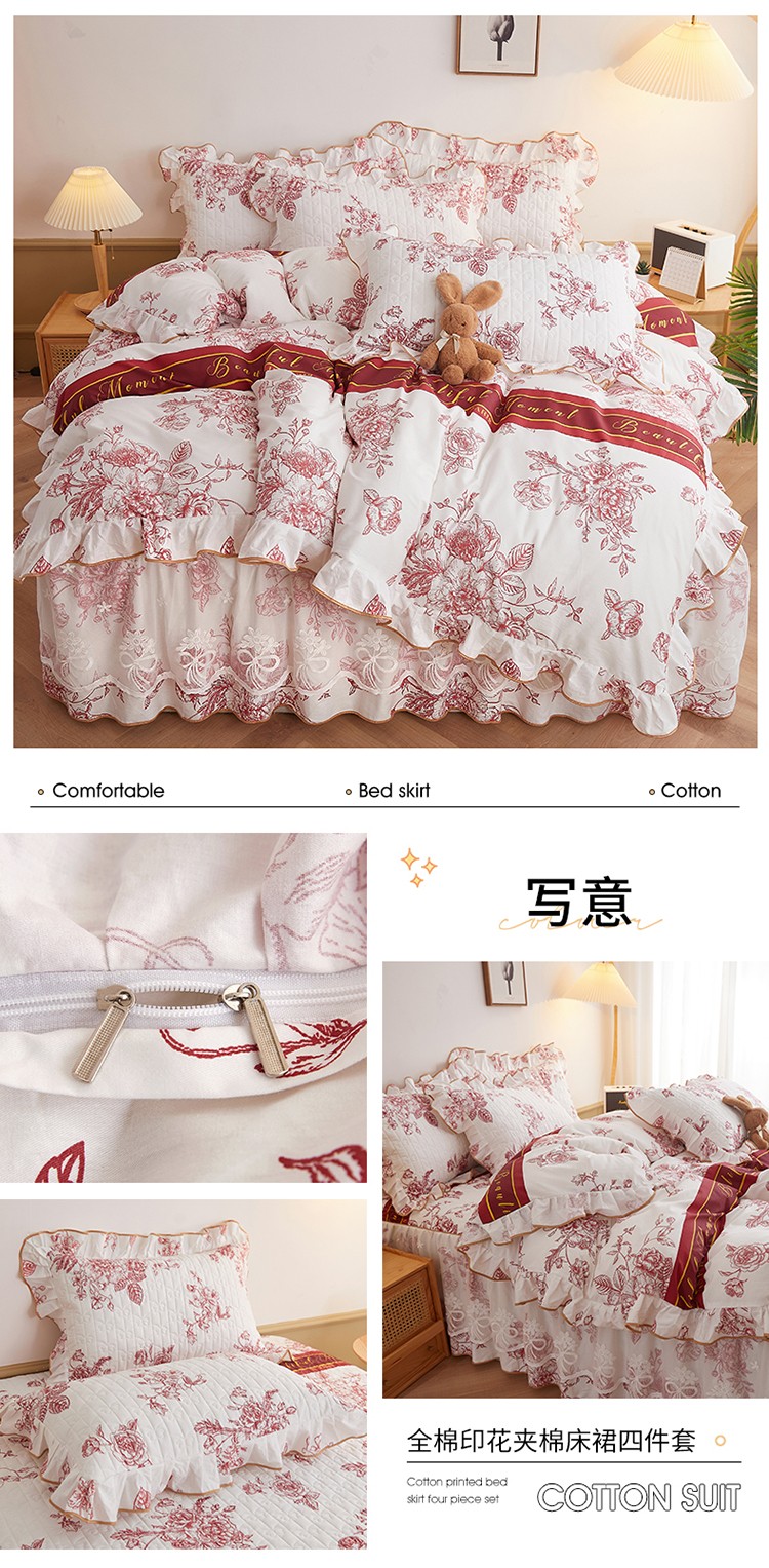 (总)宜凡 2023新款四季款全棉夹棉床裙四件套