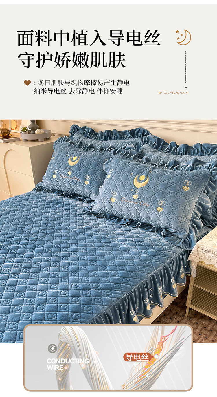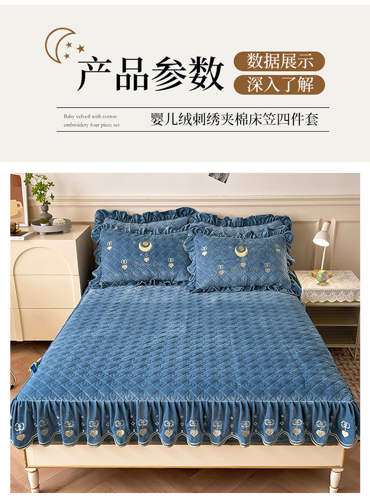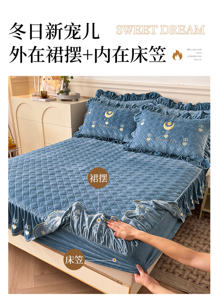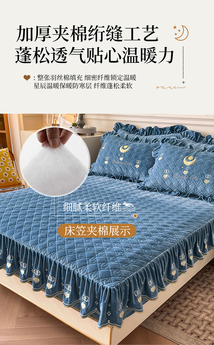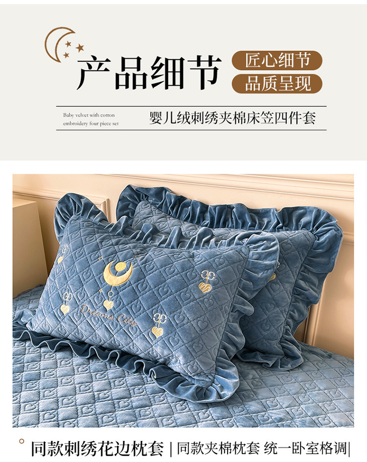 宜凡家纺 2022新款婴儿绒A类床笠三件套 星悅-藏蓝