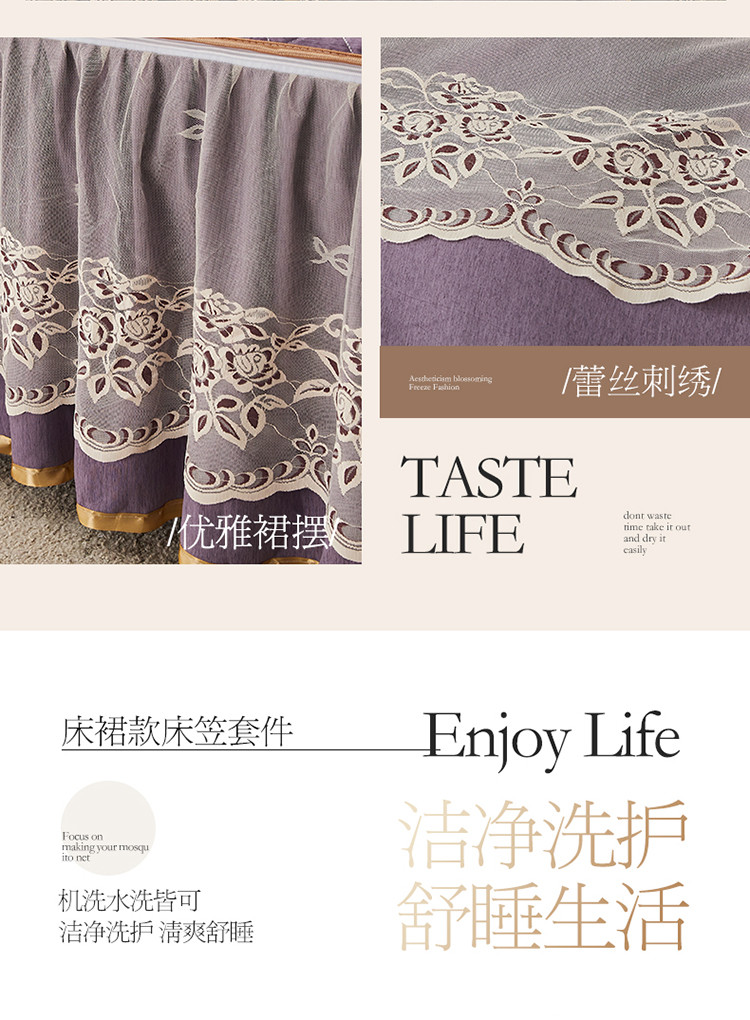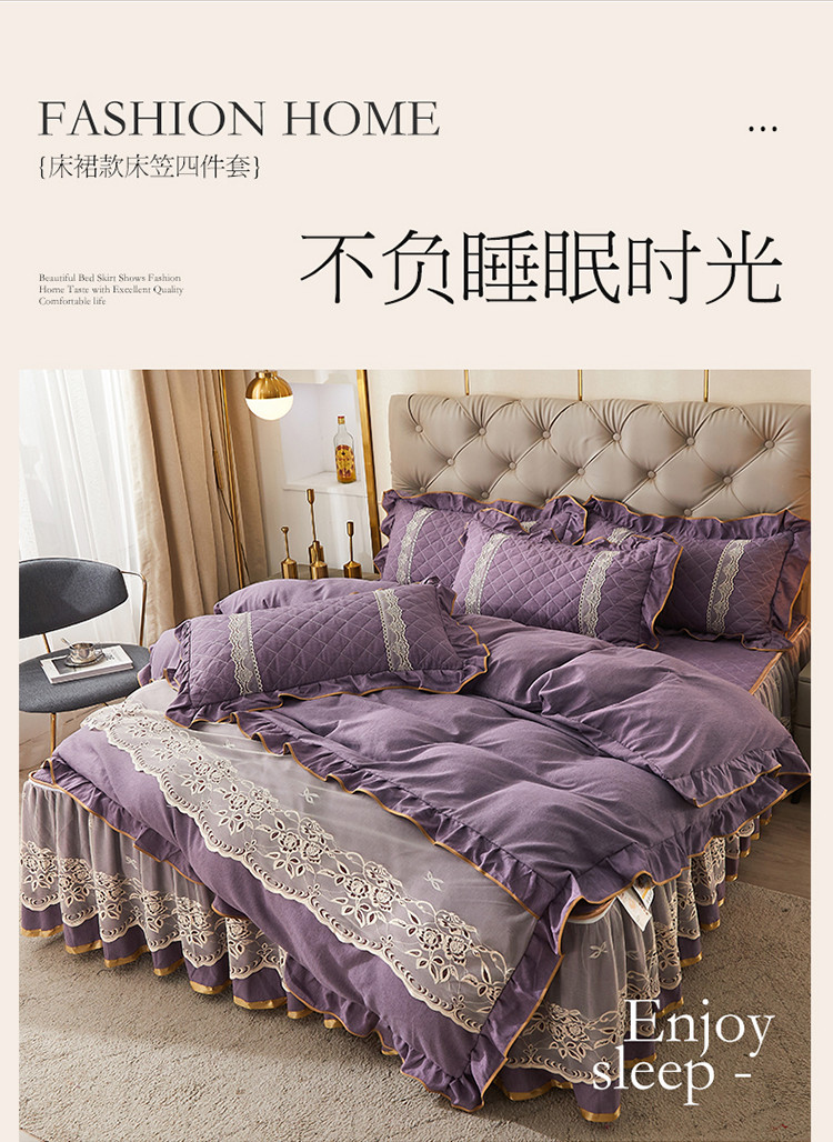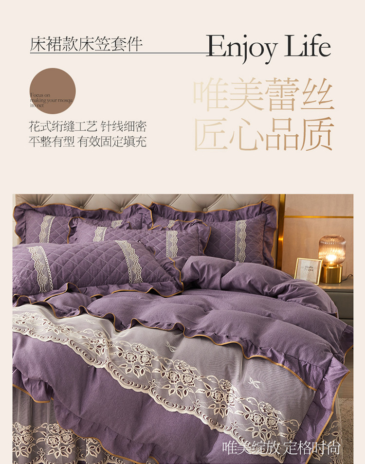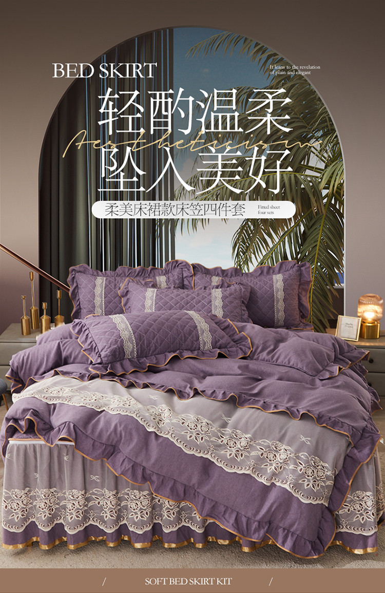当前位置: 91家纺网 > 商品网购 > 床品套件 > 四件套 > 普通磨毛四件套 > 网红馆 2025新款云影花梦脱卸床笠式床裙四件套 云影花梦-紫罗兰