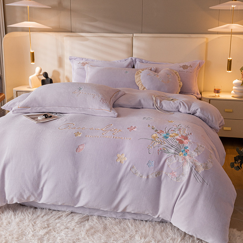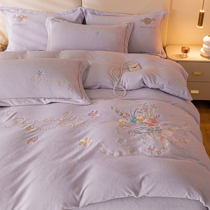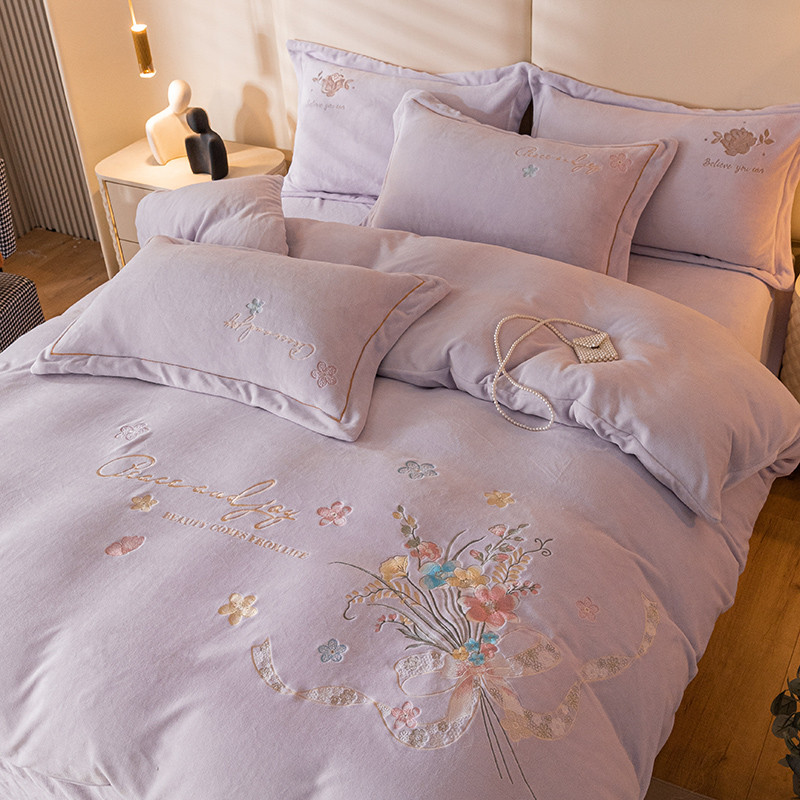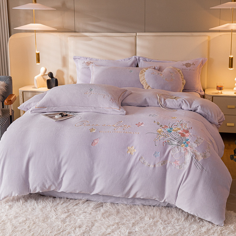 宅家居 2023新款蒂娜系列加厚牛奶绒刺绣四件套 蒂娜-浅紫
