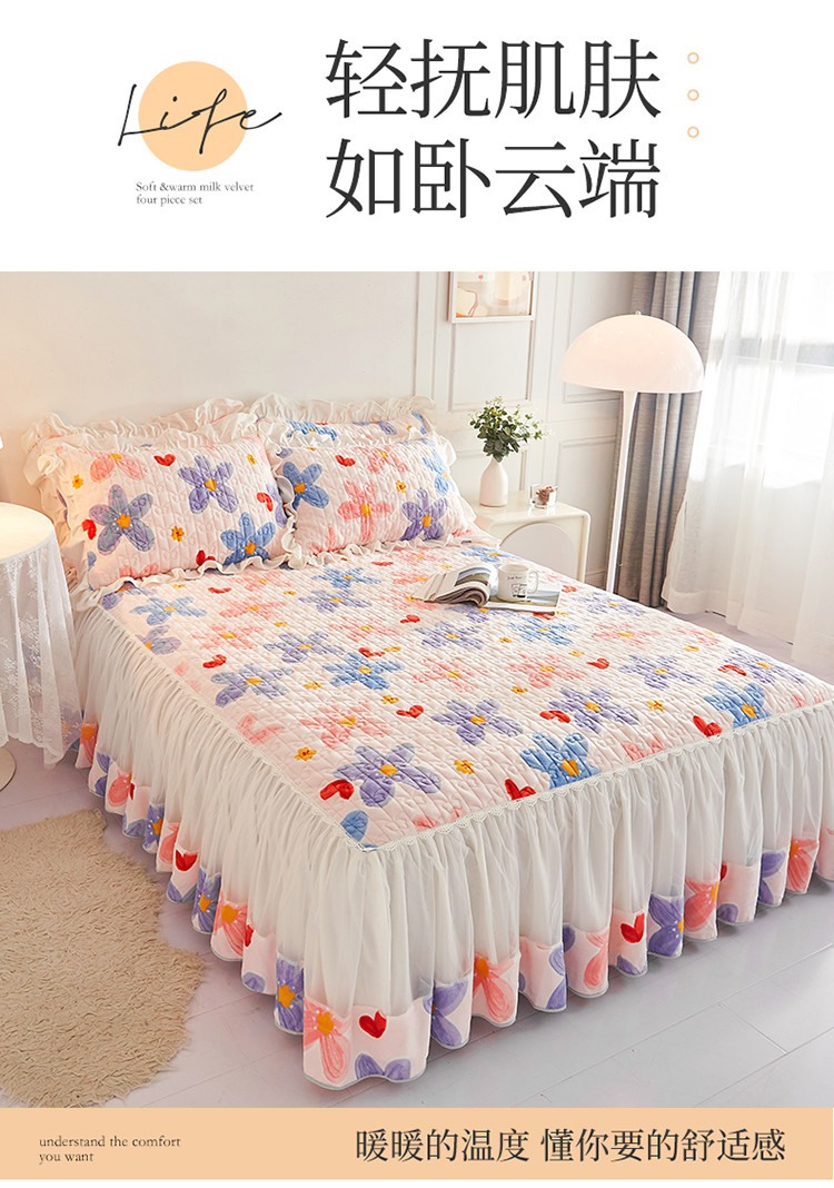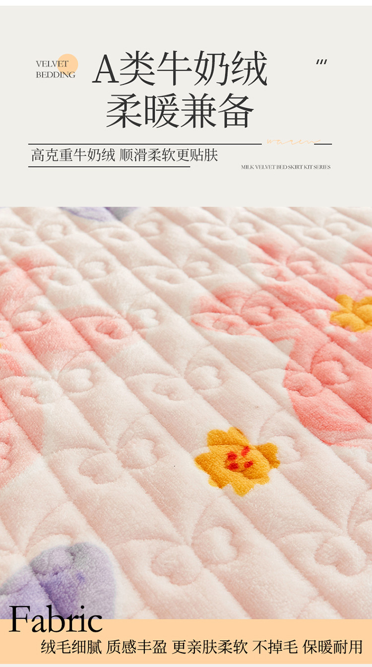 (总)宜凡家纺 2025新款兔绒提花牛奶绒夹棉床裙四件套,爱心 少女粉,爱心 粉紫,爱心 驼色,蝶舞 大红,蝶舞 米色,蝶舞 浅紫,蝶舞 玉色,简爱 苍青,简爱 豆沙紫,简爱 玉色,樱桃 苍青,樱桃 豆沙紫,樱桃 奶油白