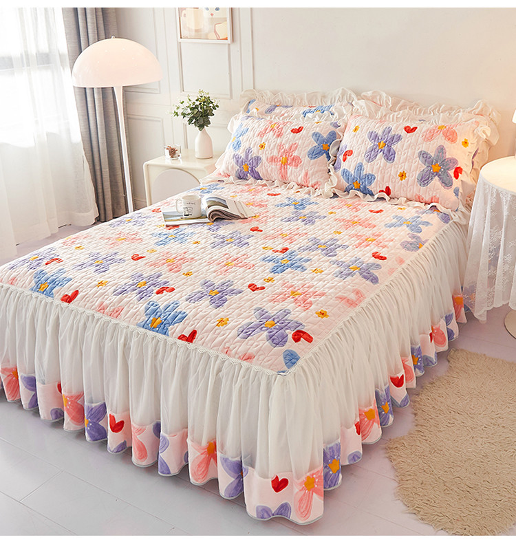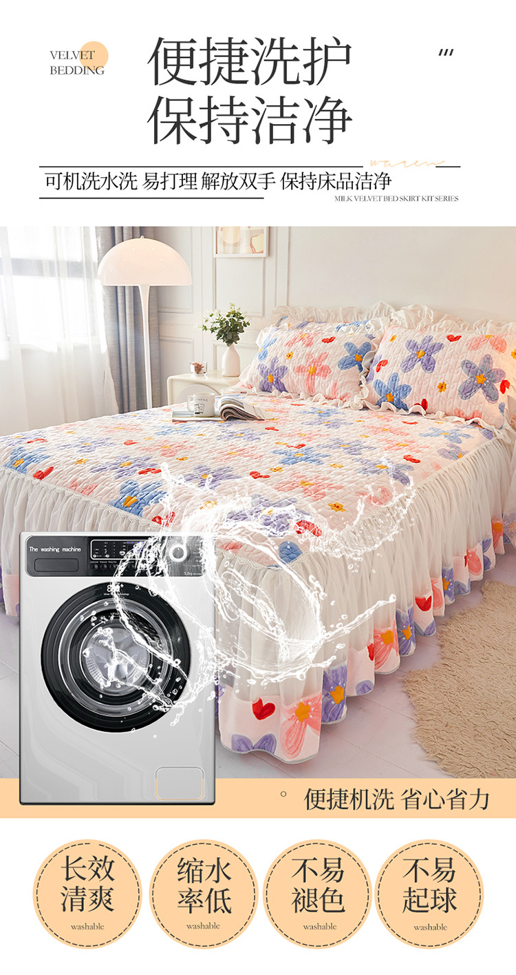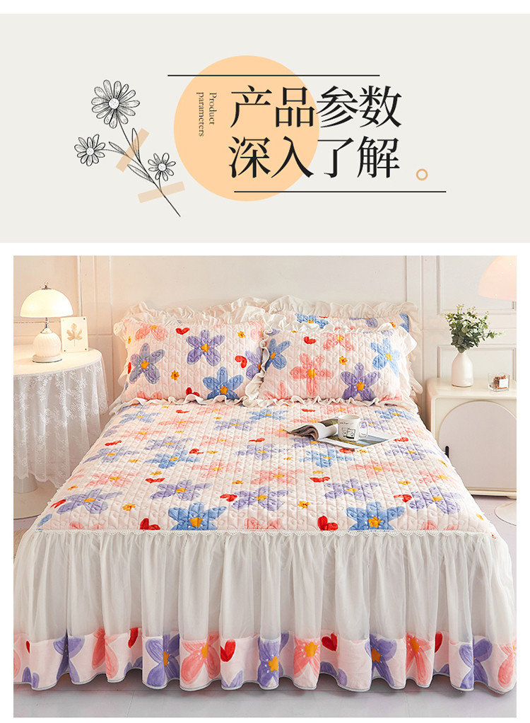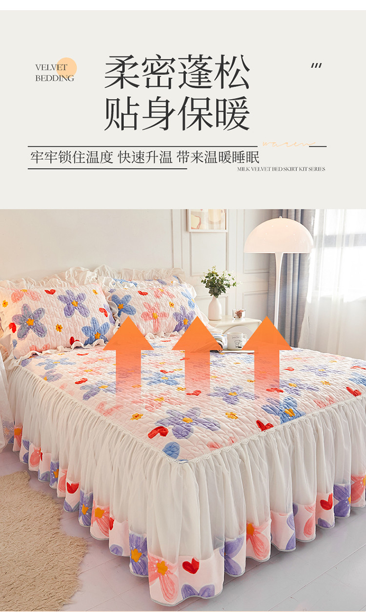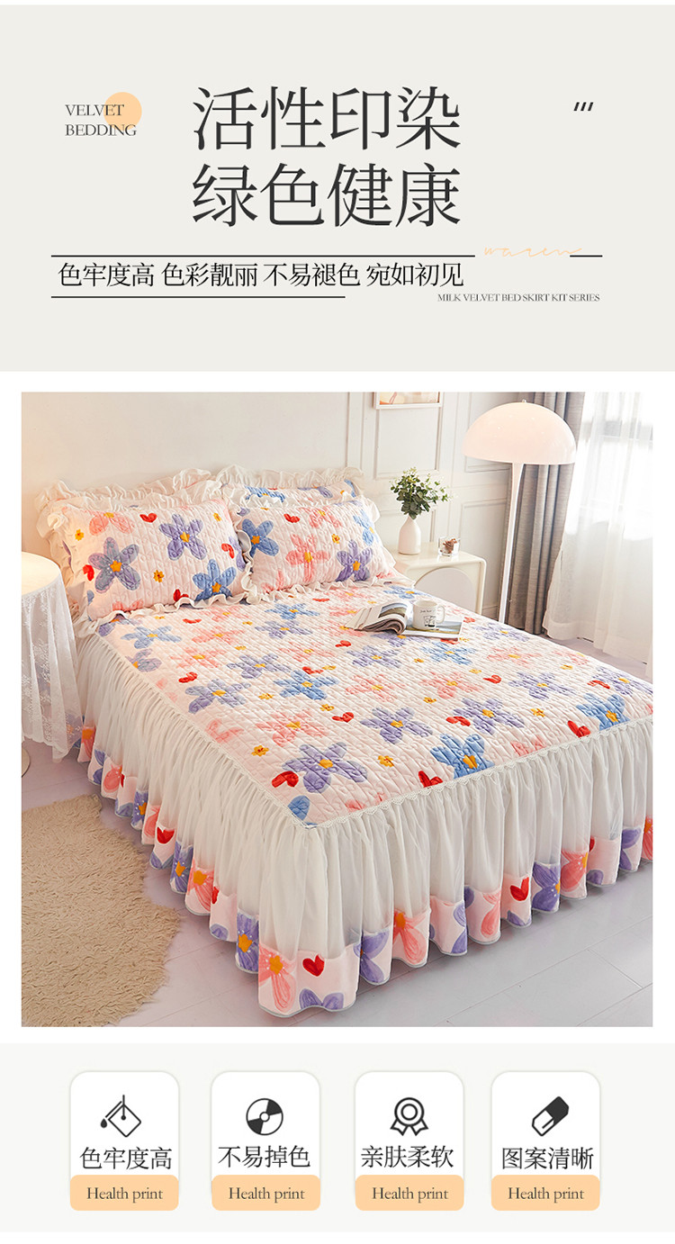 • 91家纺网 家纺一手货源 找家纺 宜凡 2022新款A类牛奶绒印花床裙三件套 丰硕年华
