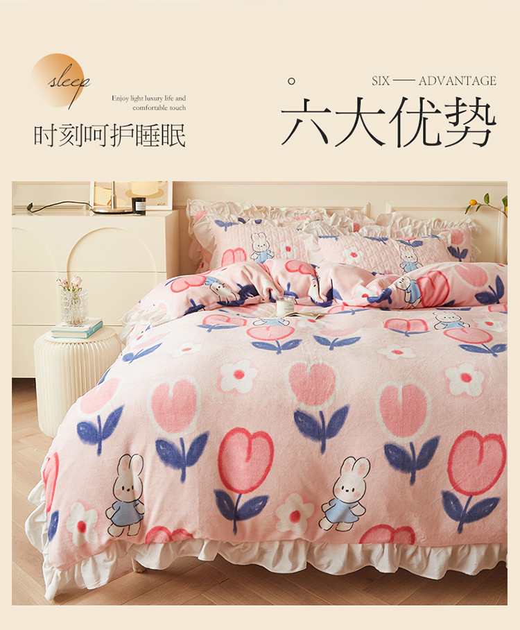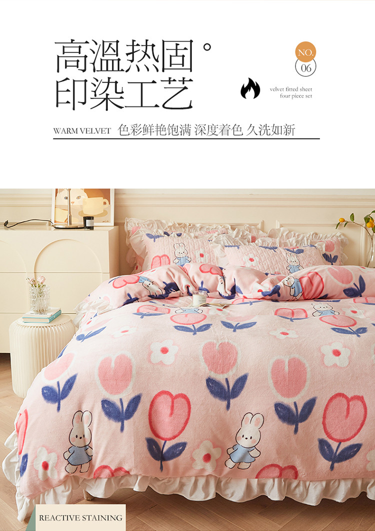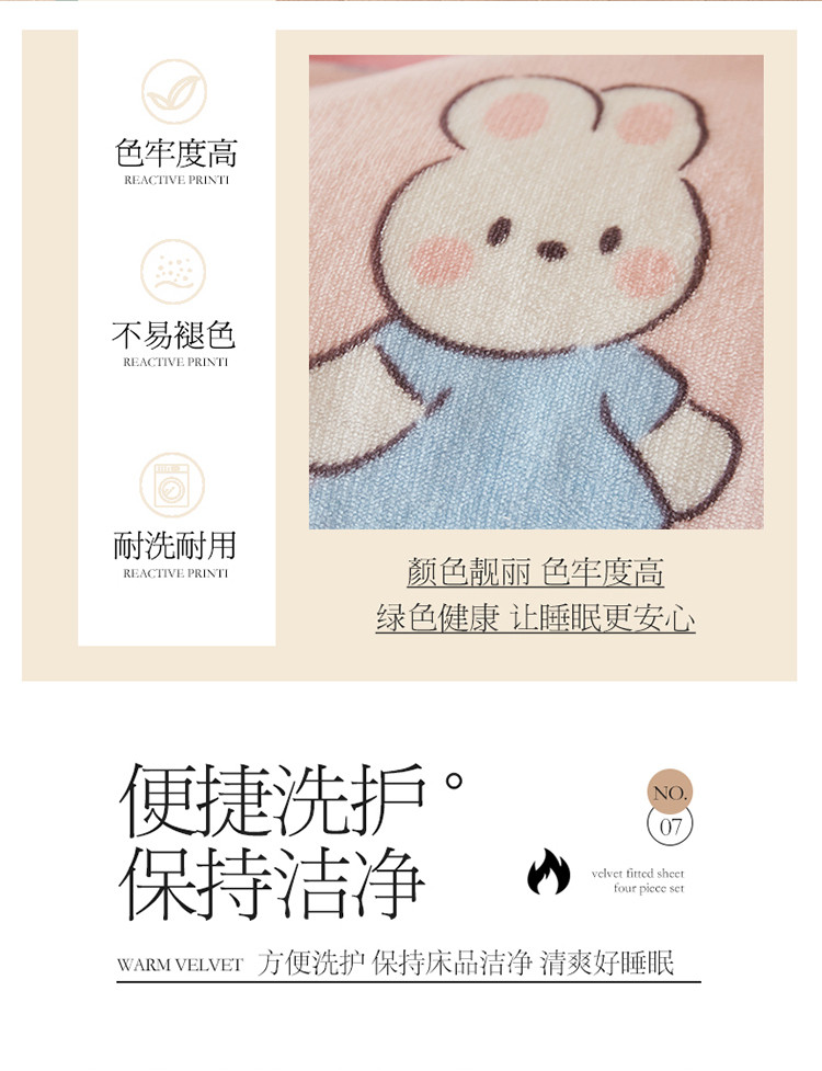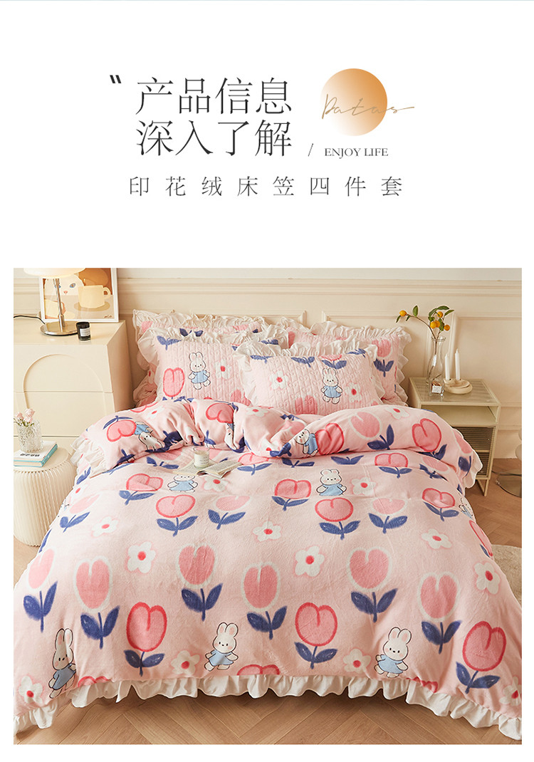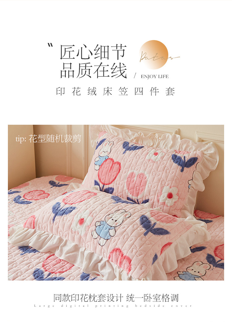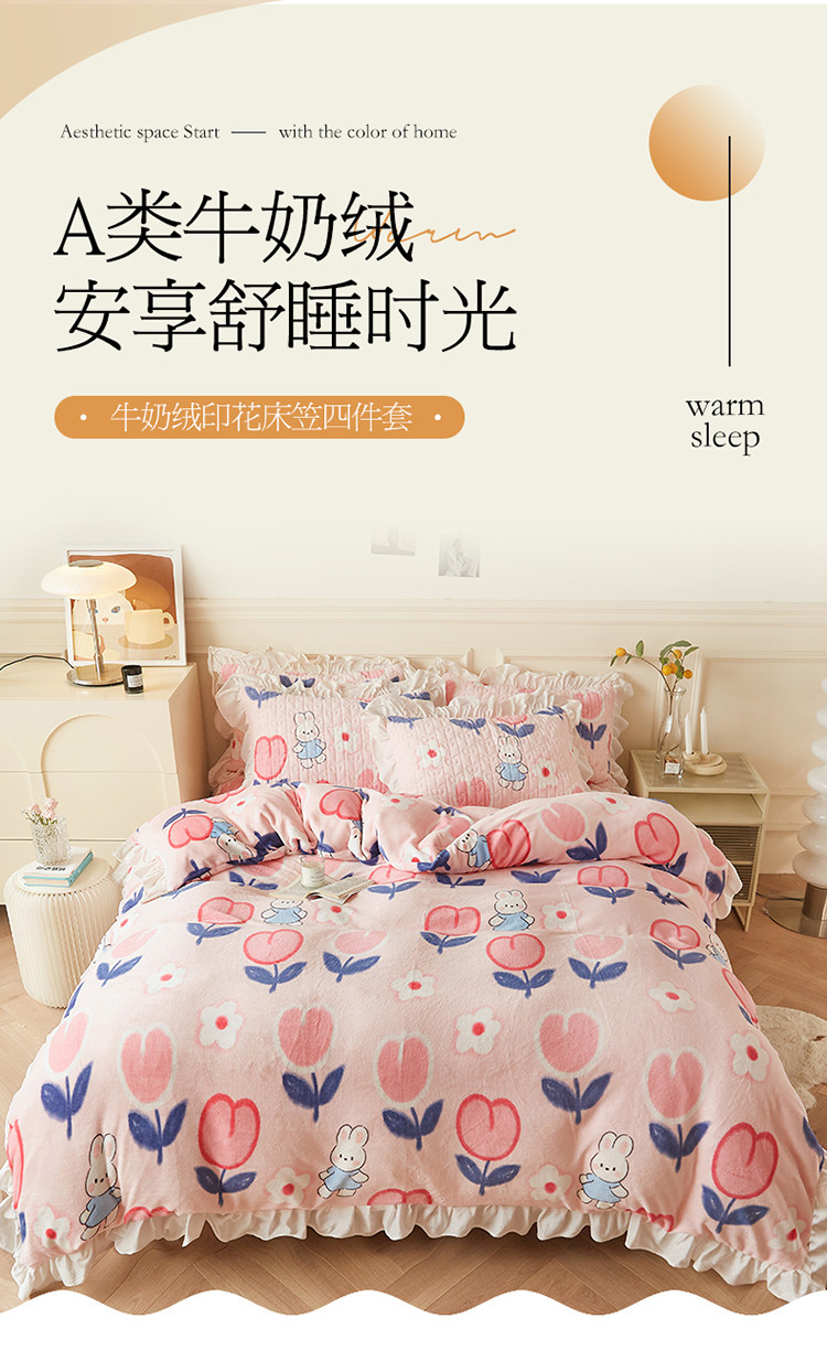 • 91家纺网 家纺一手货源 找家纺 宜凡  2022新款牛奶绒A类印花床笠四件套 米菲日记
