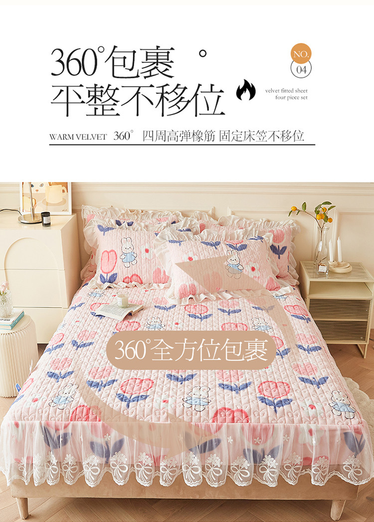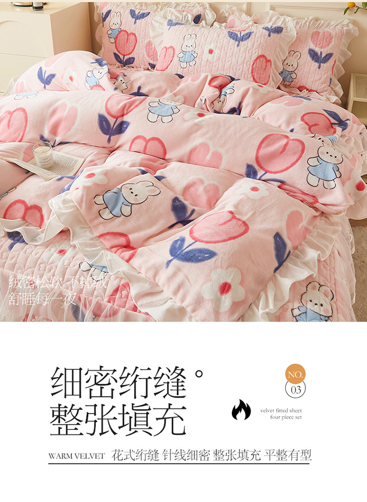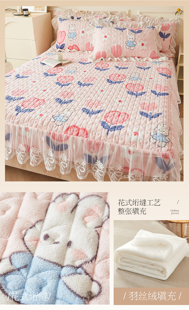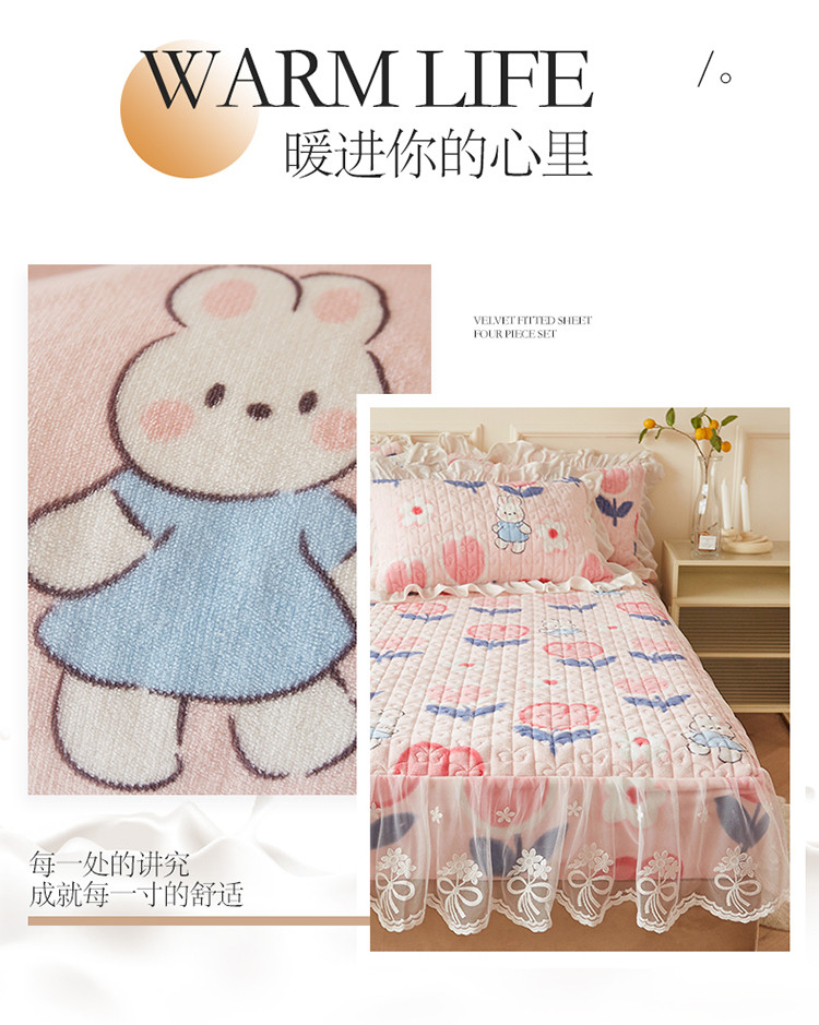 (总)宜凡家纺 2025新款兔绒提花牛奶绒夹棉床裙四件套,爱心 少女粉,爱心 粉紫,爱心 驼色,蝶舞 大红,蝶舞 米色,蝶舞 浅紫,蝶舞 玉色,简爱 苍青,简爱 豆沙紫,简爱 玉色,樱桃 苍青,樱桃 豆沙紫,樱桃 奶油白
