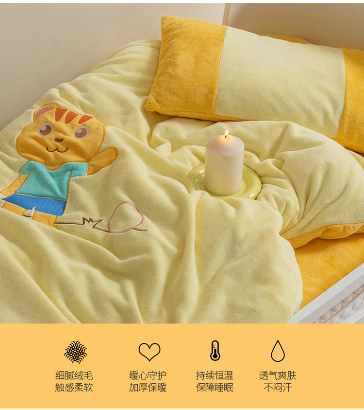 商品名称:喜多兔 2022新款全消光牛奶绒幼儿园三件套-小伙伴 黄色哈喽小猫咪