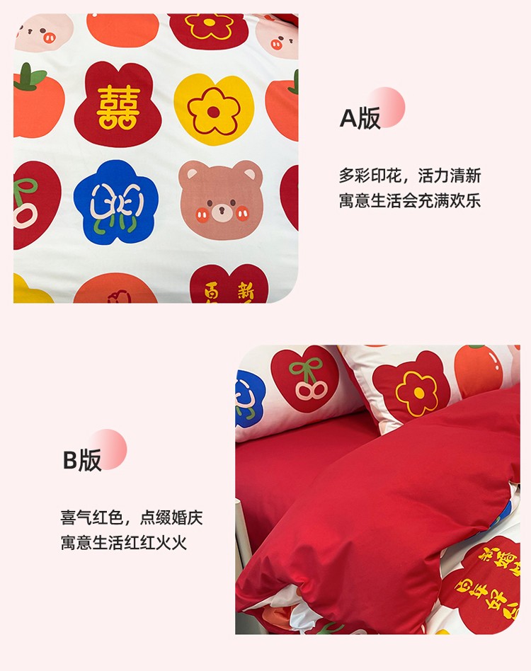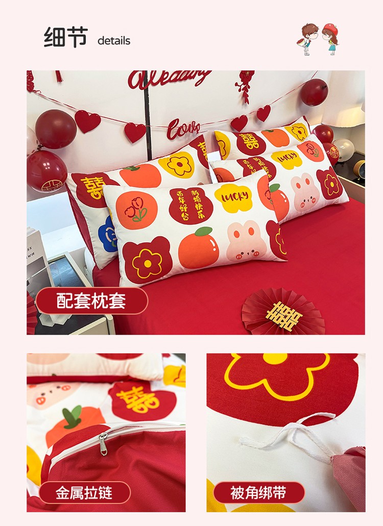 商品名称:宏源 2022年新款大红时尚磨毛婚庆四件套 百年好合