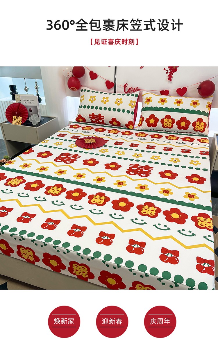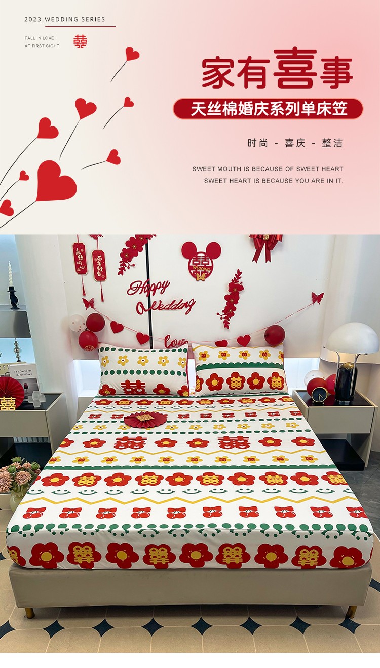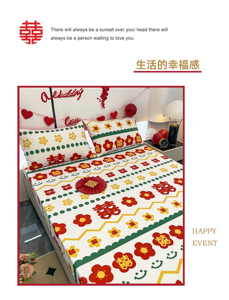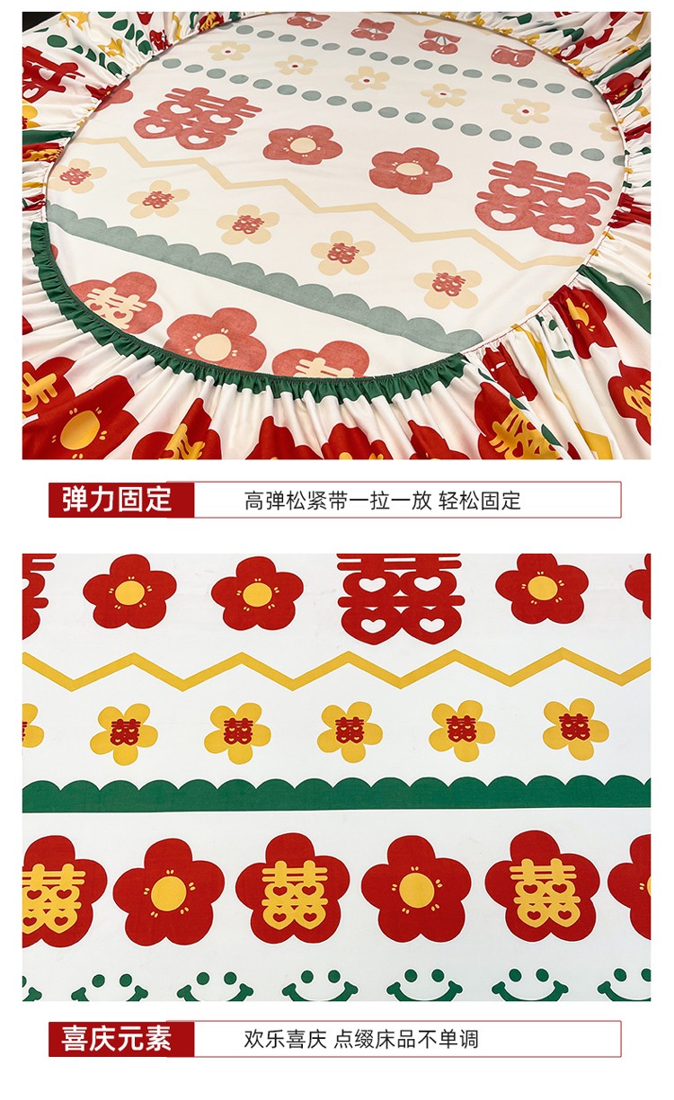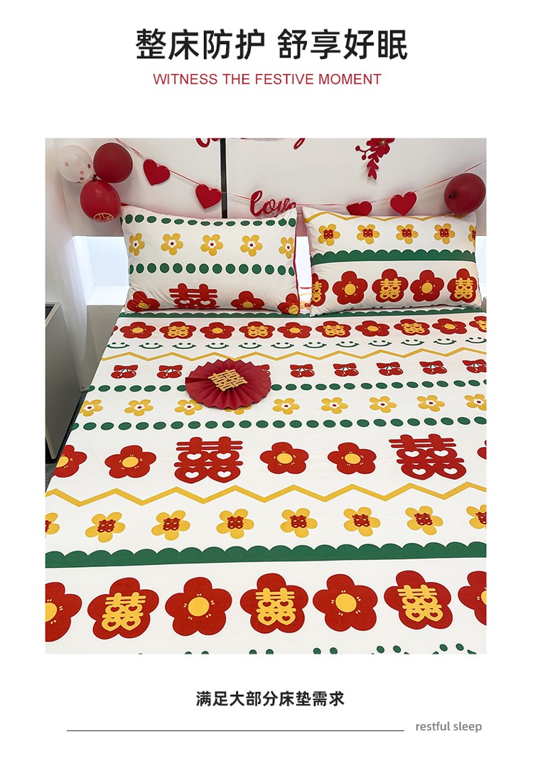 商品名称:宏源 2023年新款大红时尚磨毛婚庆单床笠 挚爱