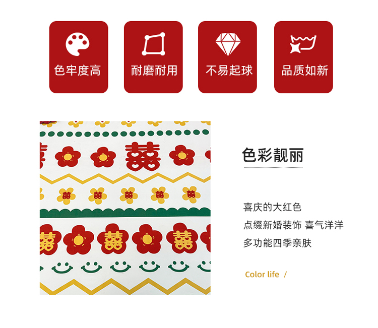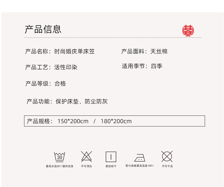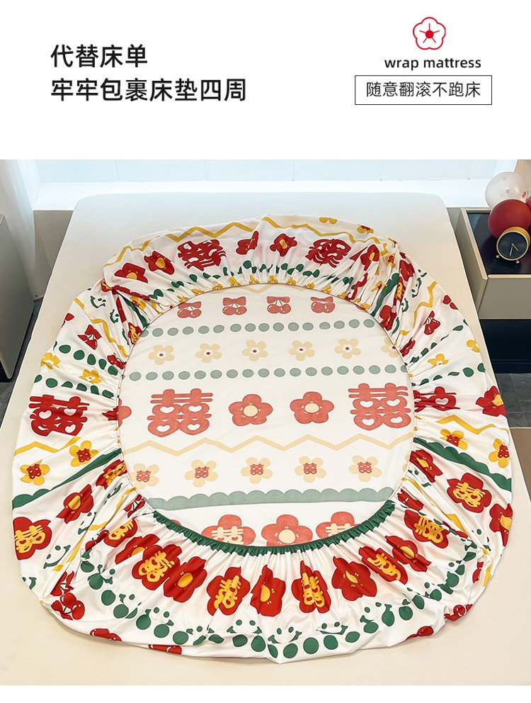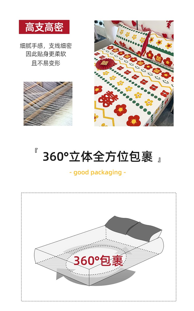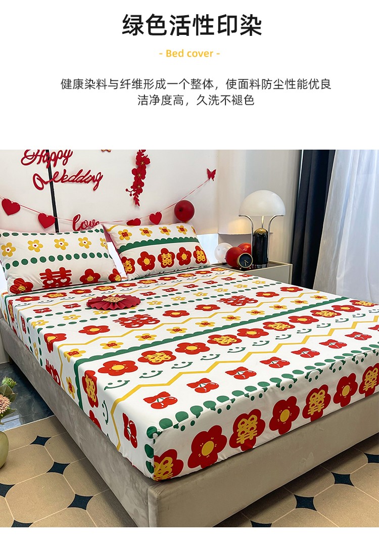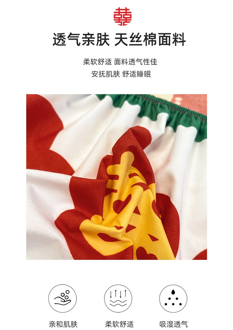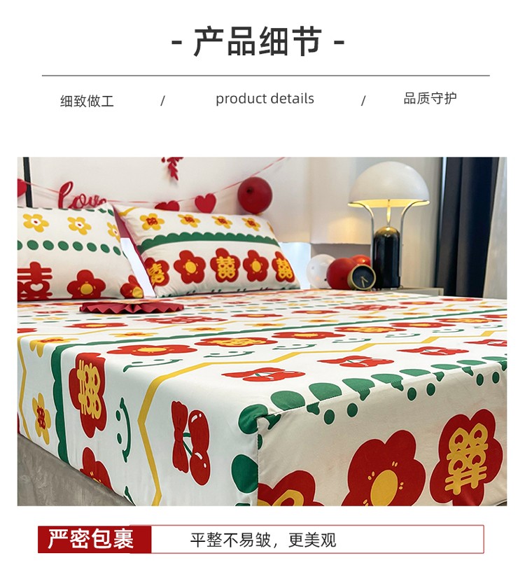 商品名称:宏源 2023年新款大红时尚磨毛婚庆单床笠 挚爱