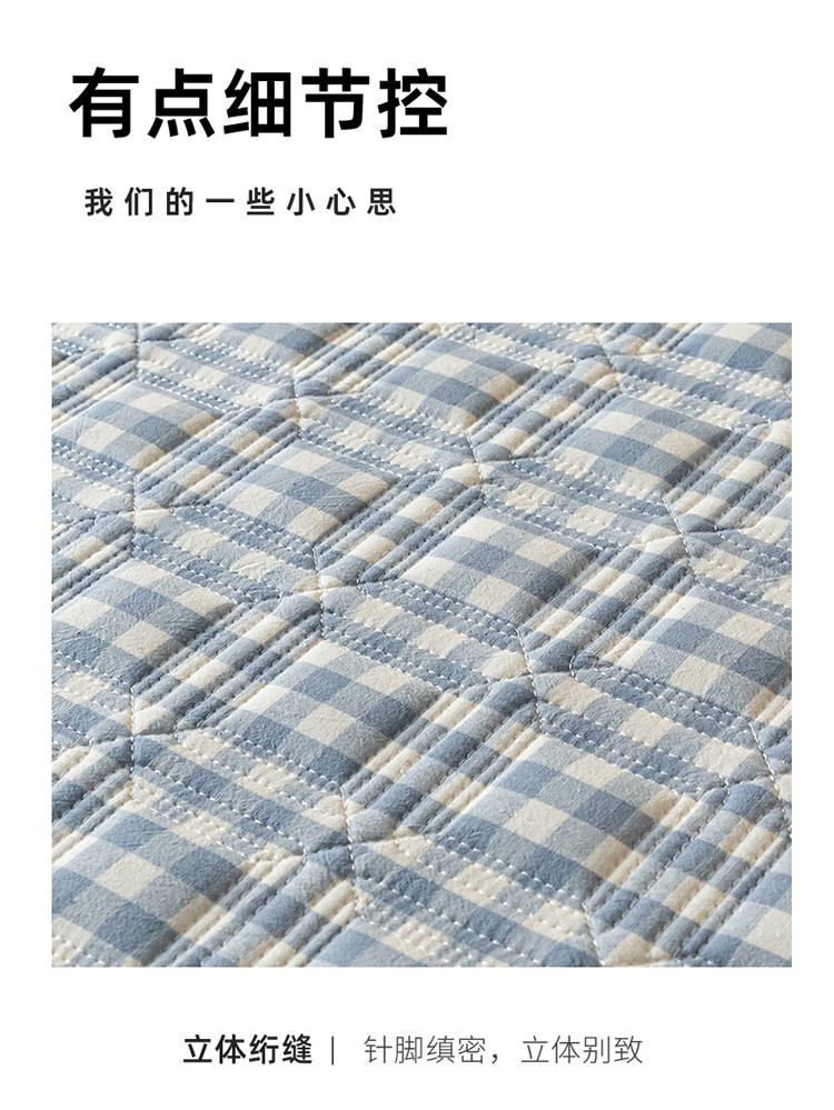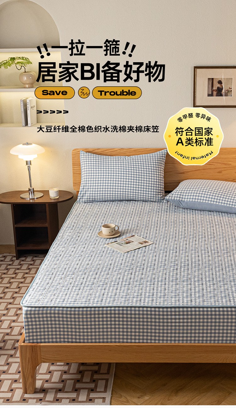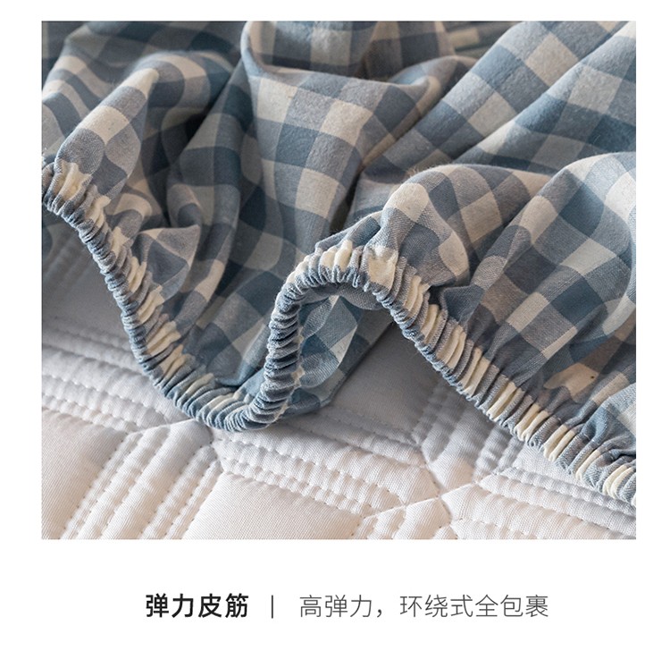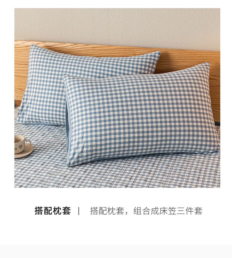 商品名称:蓝巢 2023新款全棉水洗棉大豆夹棉床笠 摩卡蓝小格