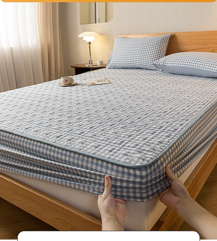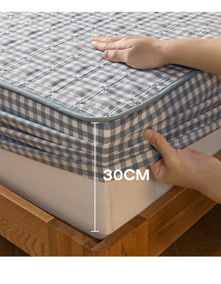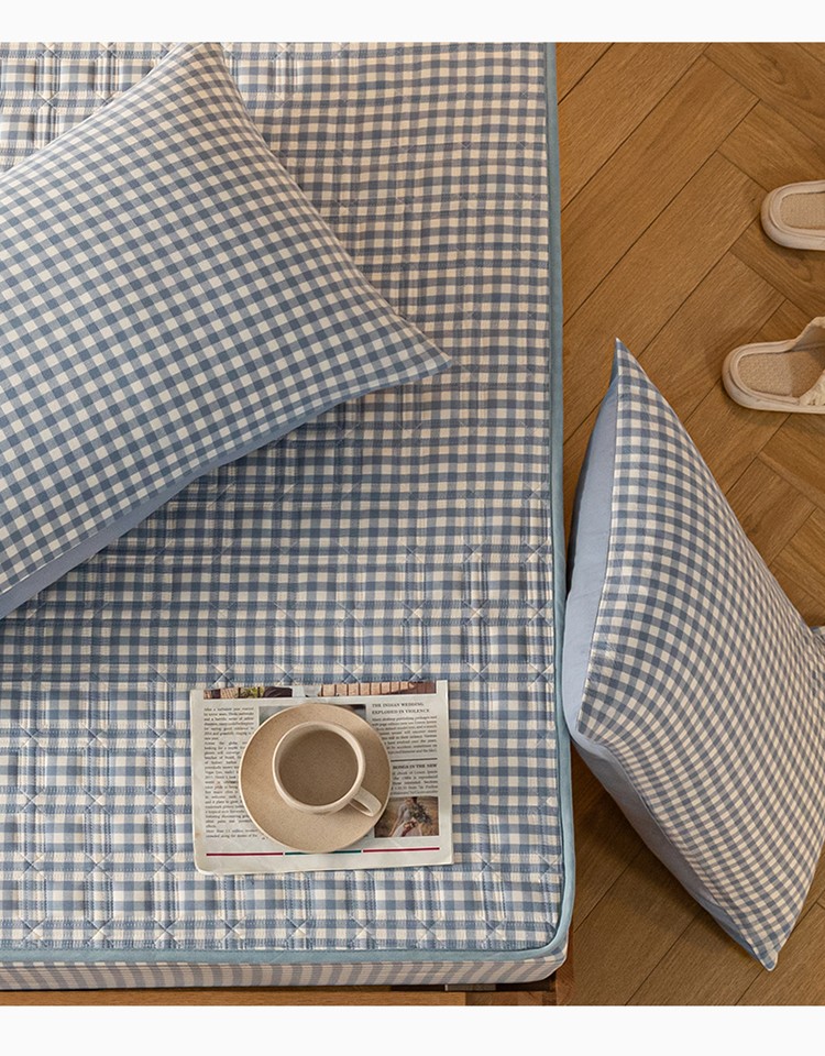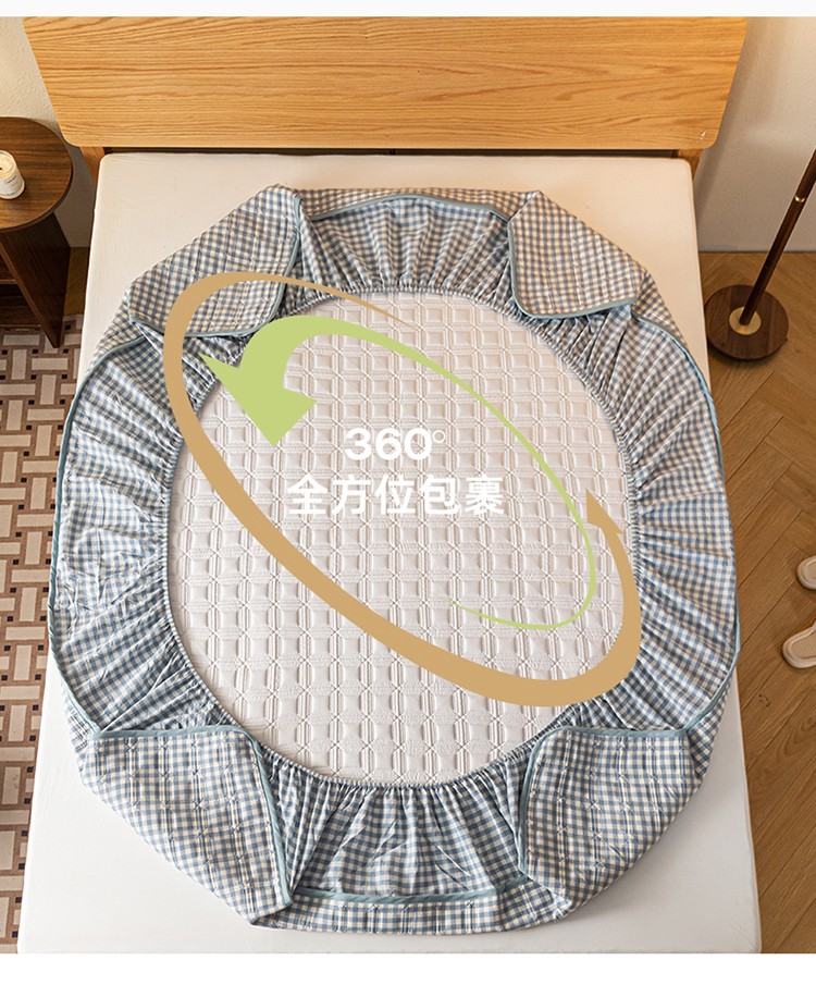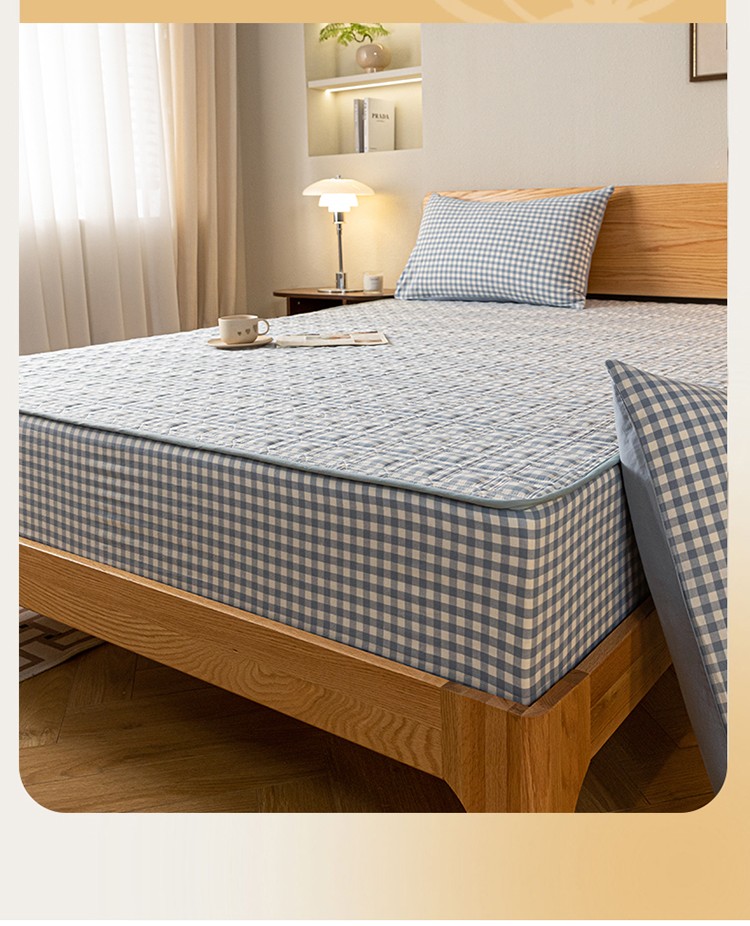 商品名称:蓝巢 2023新款全棉水洗棉大豆夹棉床笠 摩卡蓝小格