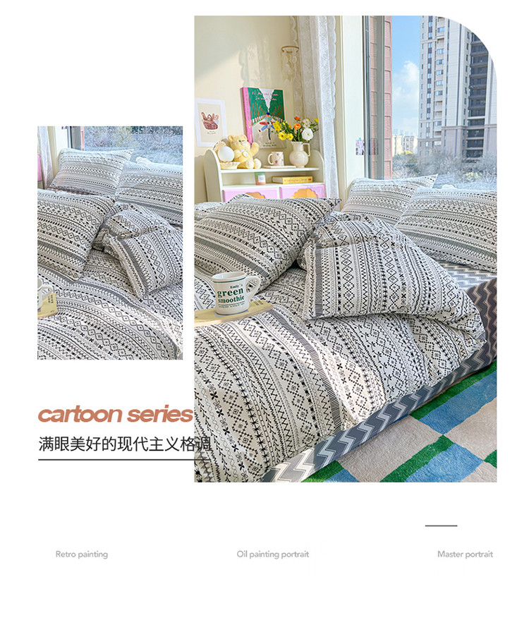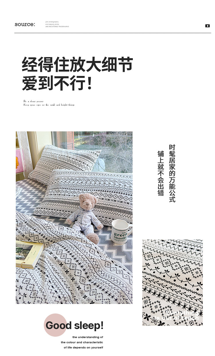 当前位置: 91家纺网 > 商品网购 > 床品套件 > 四件套 > 全棉普通四件套 > (总)名兮 2023新款极简风全棉印花四件套