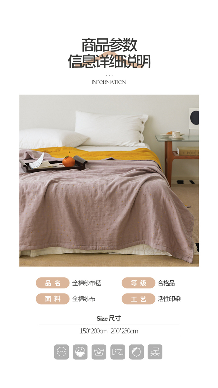 商品名称:(总)雯雨家纺 2023新款全棉拼色纱布毛巾被