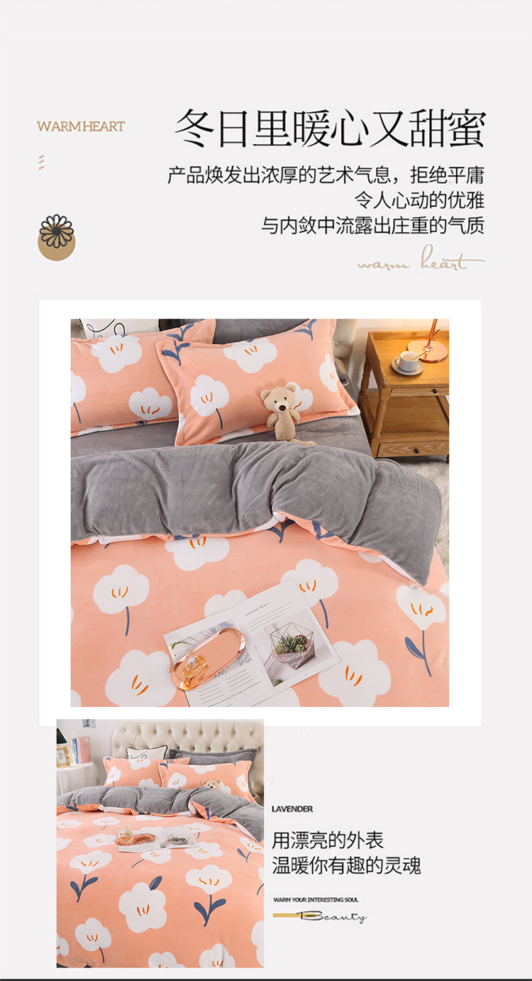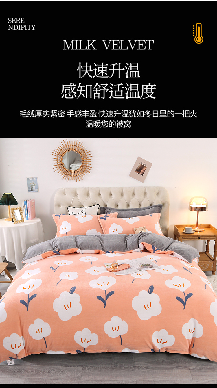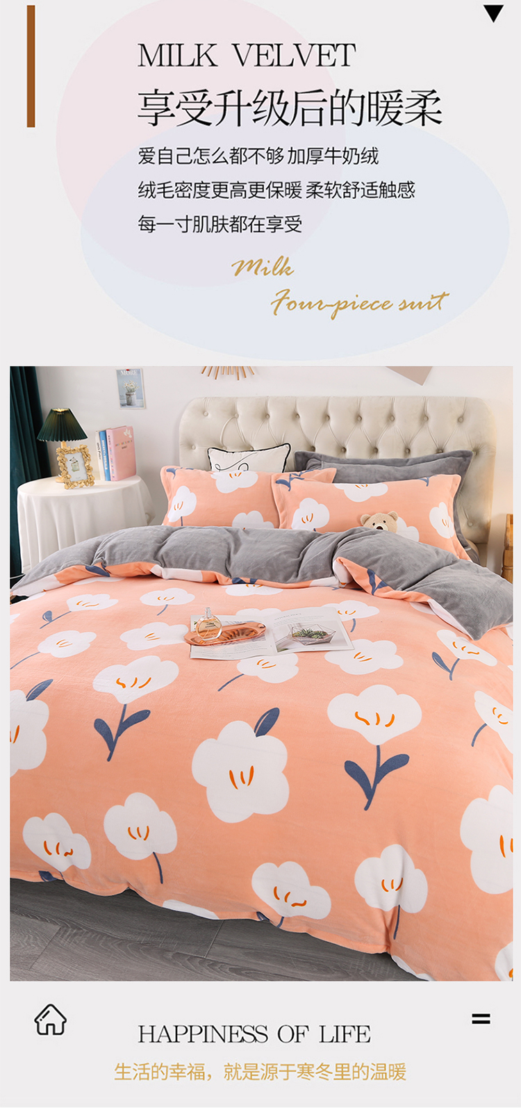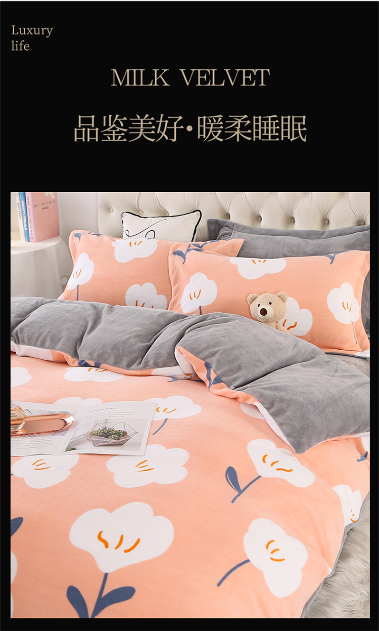 商品名称:爱上家居 2023新款温暖亲肤加厚牛奶绒四件套 花语-玉
