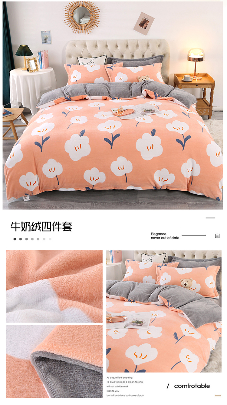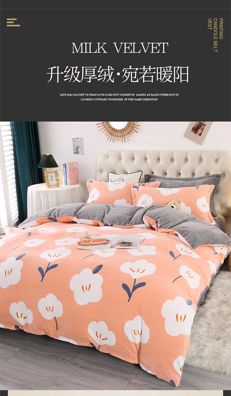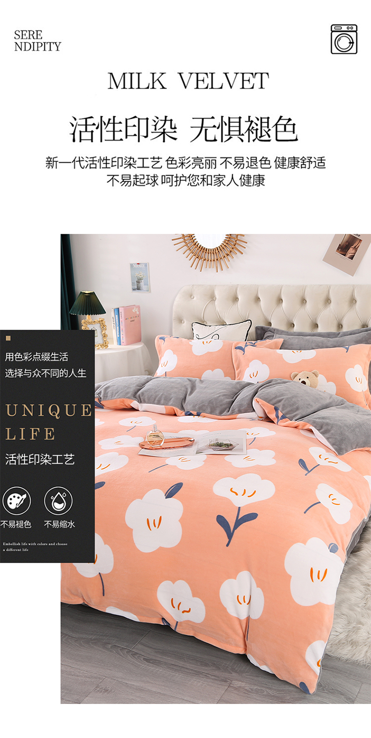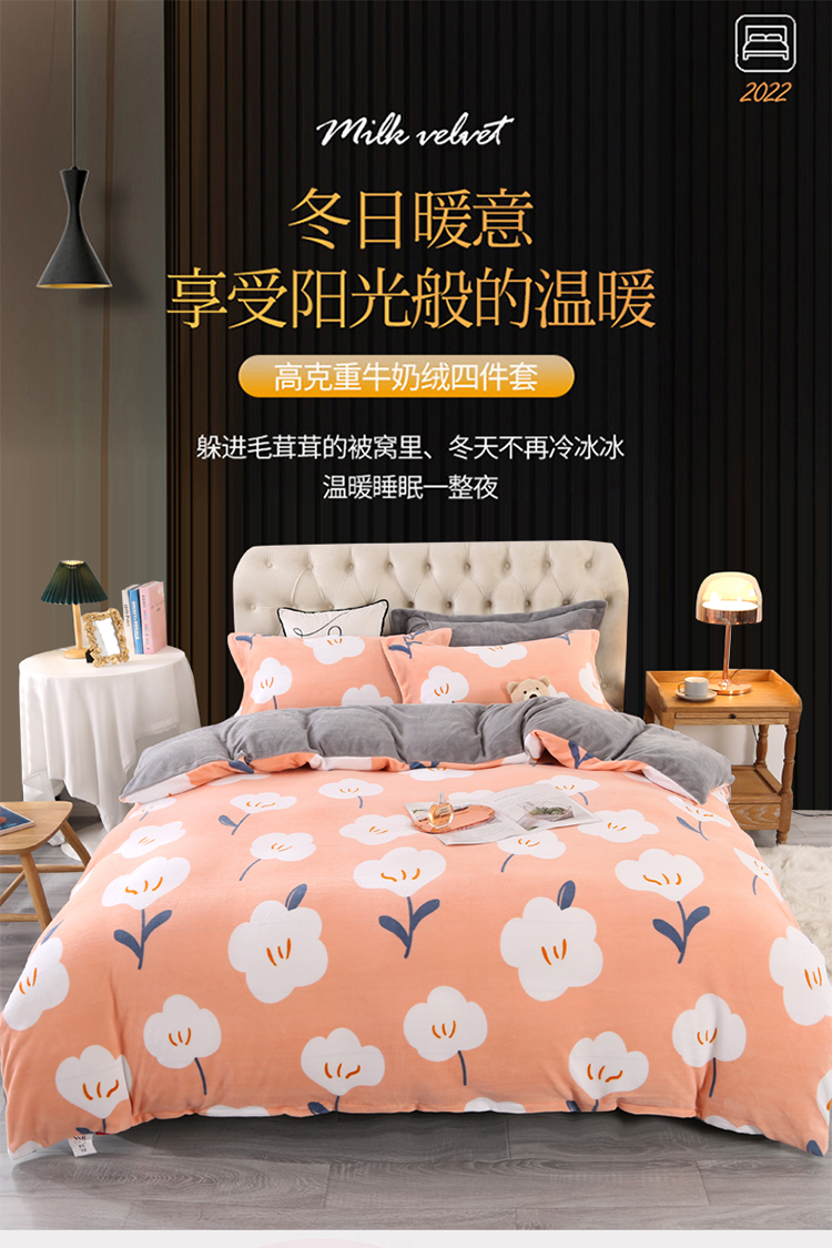商品名称:爱上家居 2023新款温暖亲肤加厚牛奶绒四件套 花语-玉