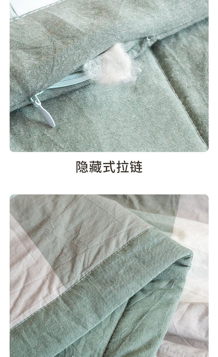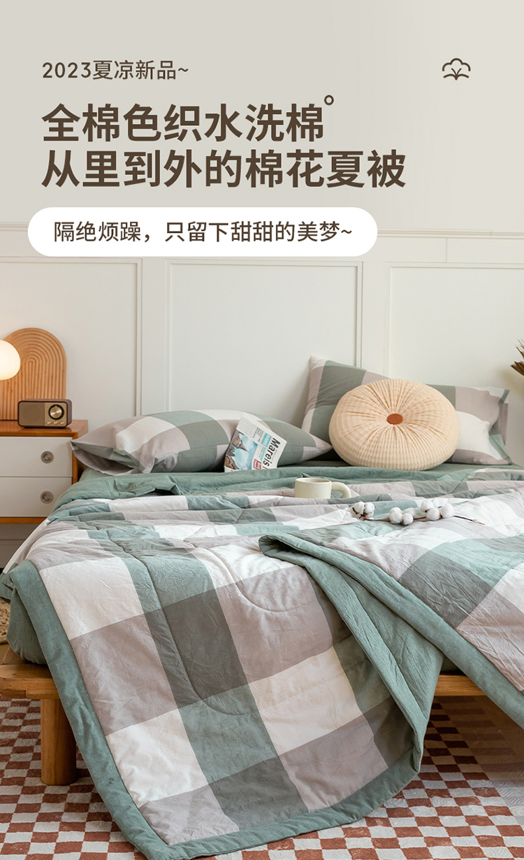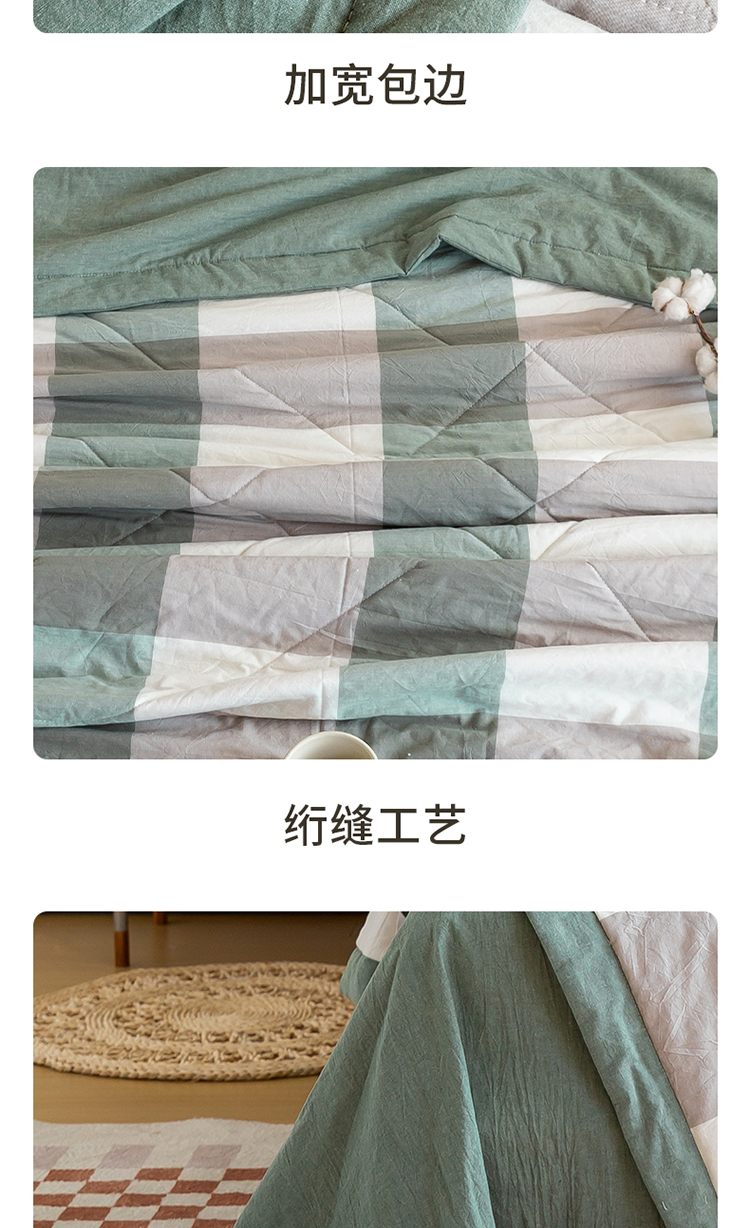 • 91家纺网 家纺一手货源 找家纺 鸣升新疆长绒棉全棉花色织水洗棉夏被四件套 绿大格