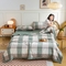 鸣升新疆长绒棉全棉花色织水洗棉夏被四件套 绿大格