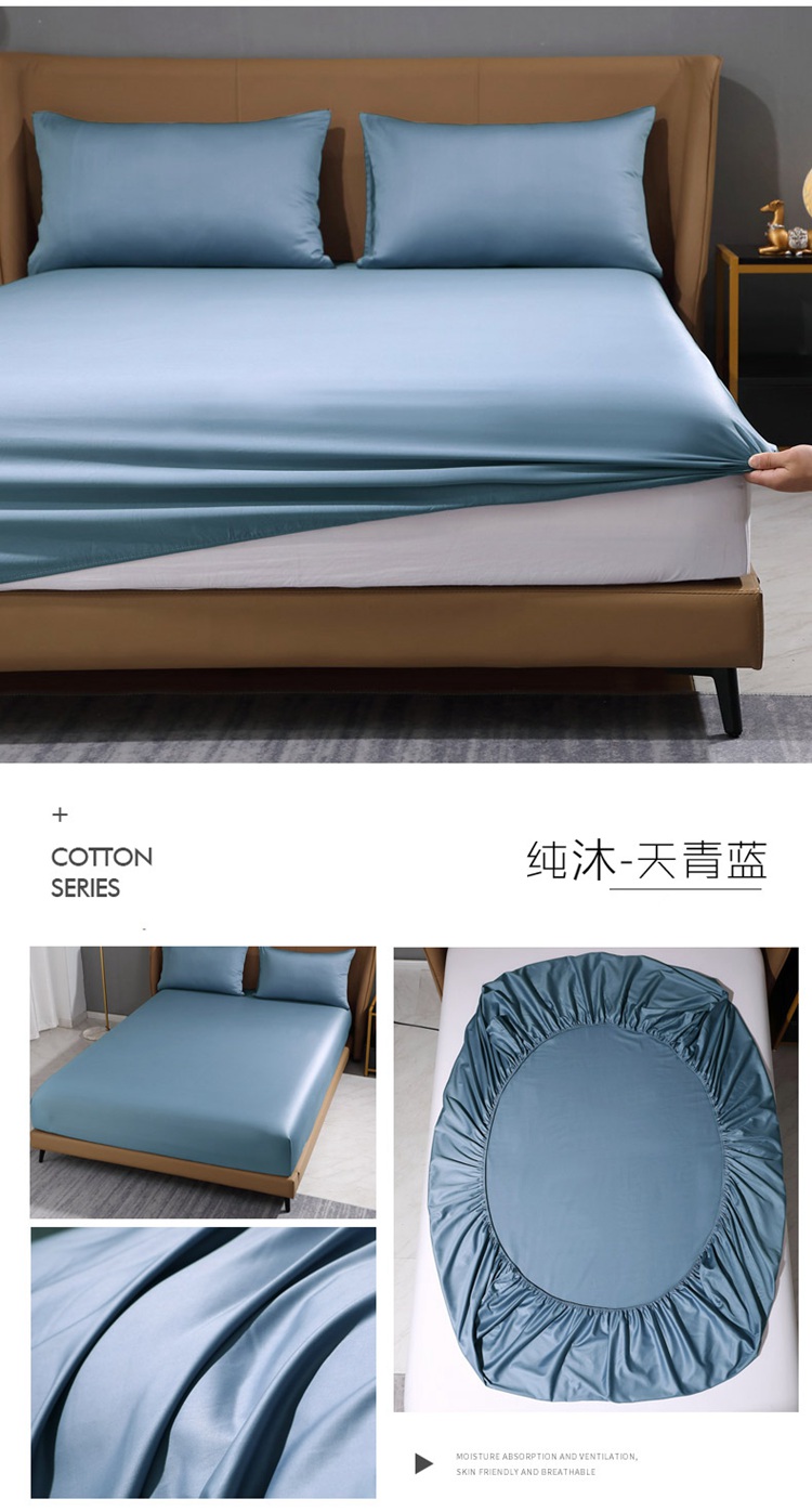 商品名称:晶缦家纺 2023新款纯棉50支双股全棉贡缎长绒棉纯色单床笠单件单品 纯沐-天青蓝