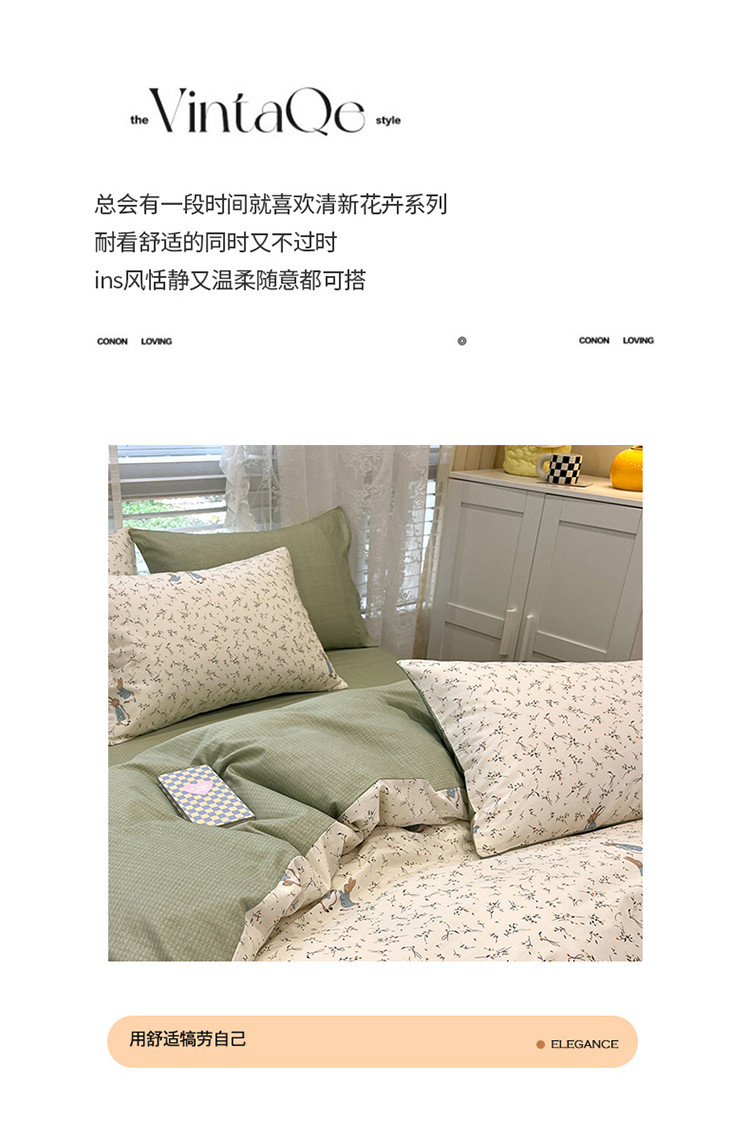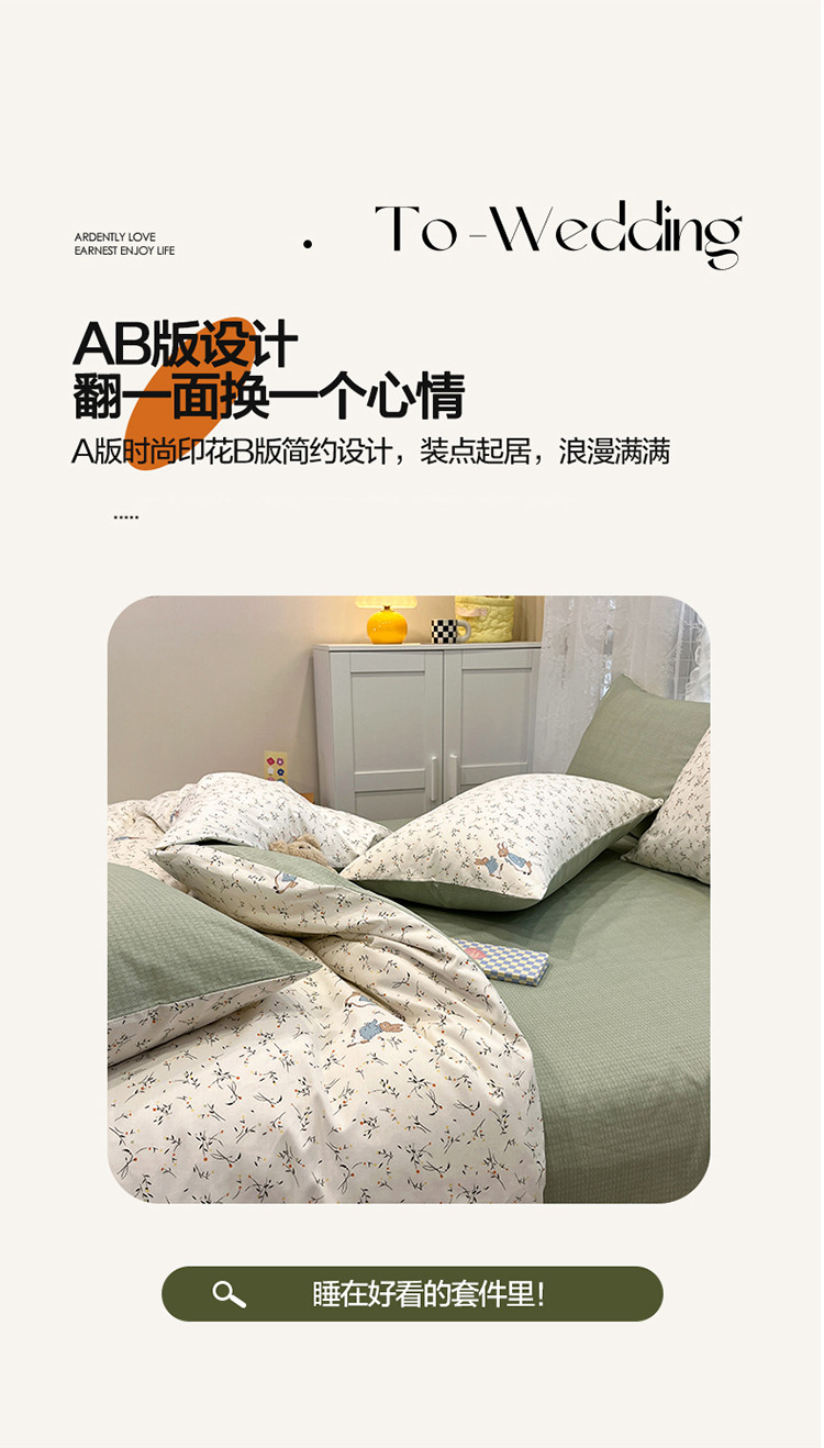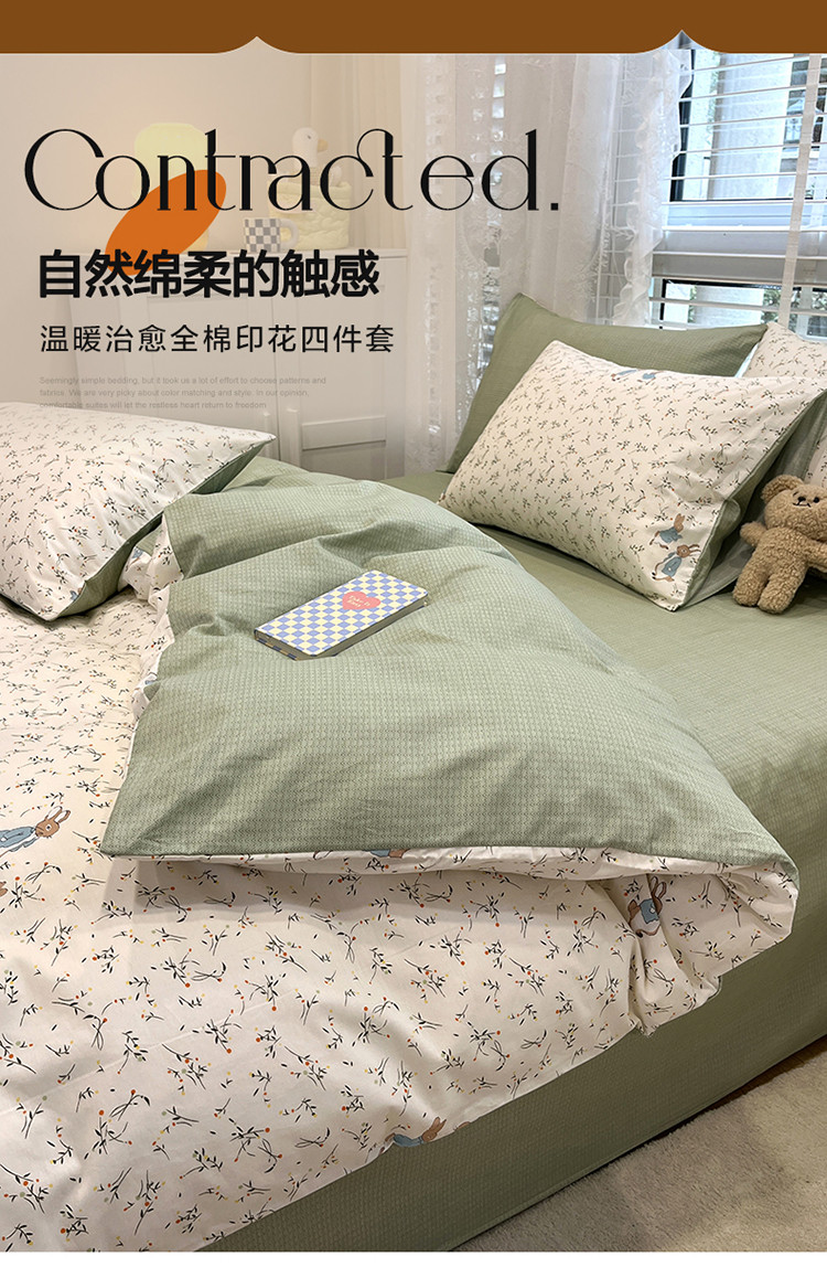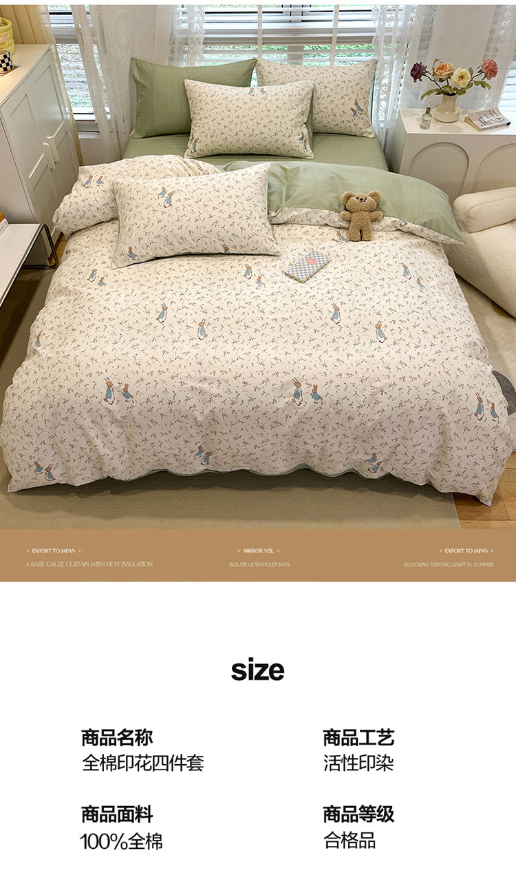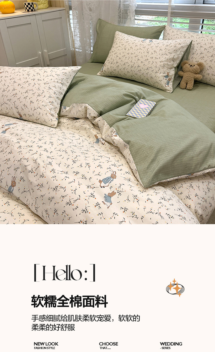 晨希2023年新款全棉花卉印花简约款多规格四件套 彼得兔