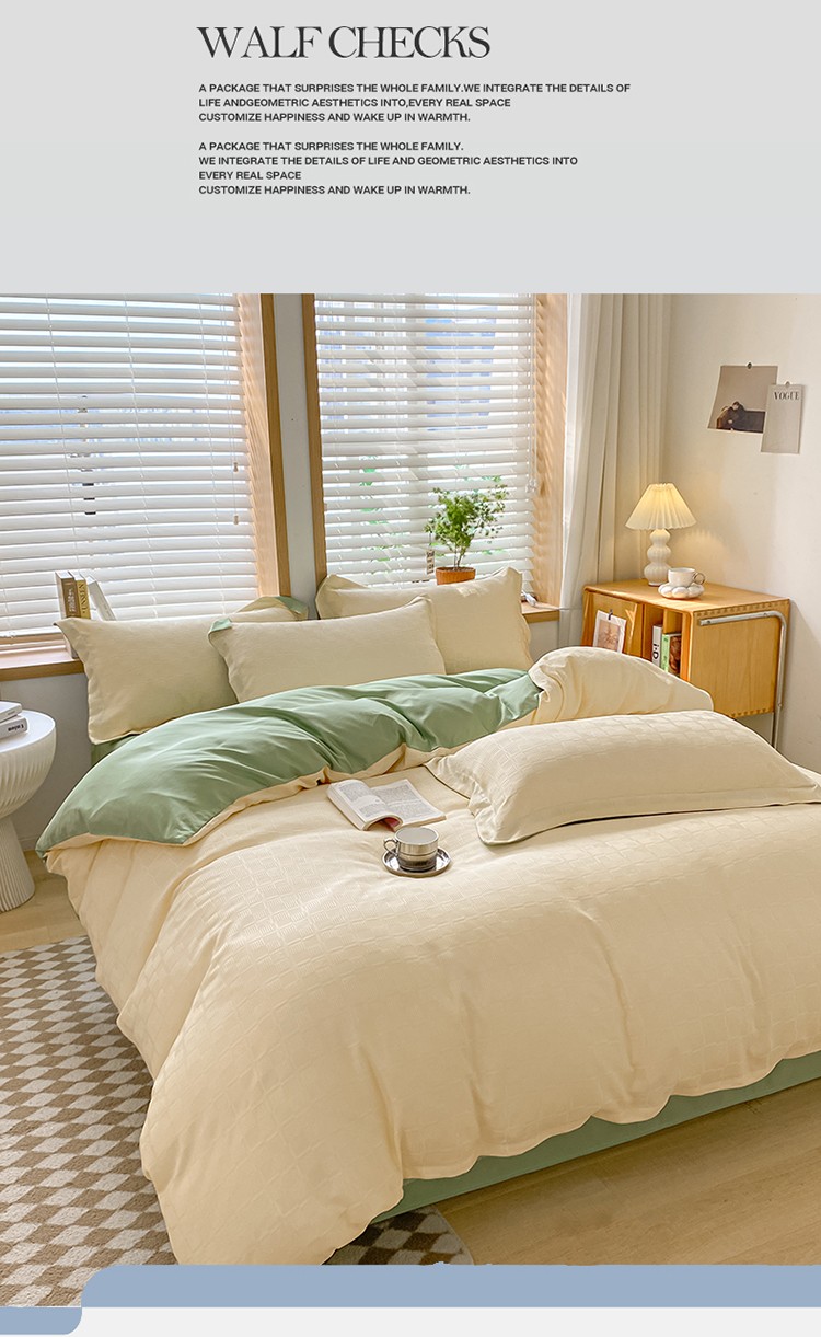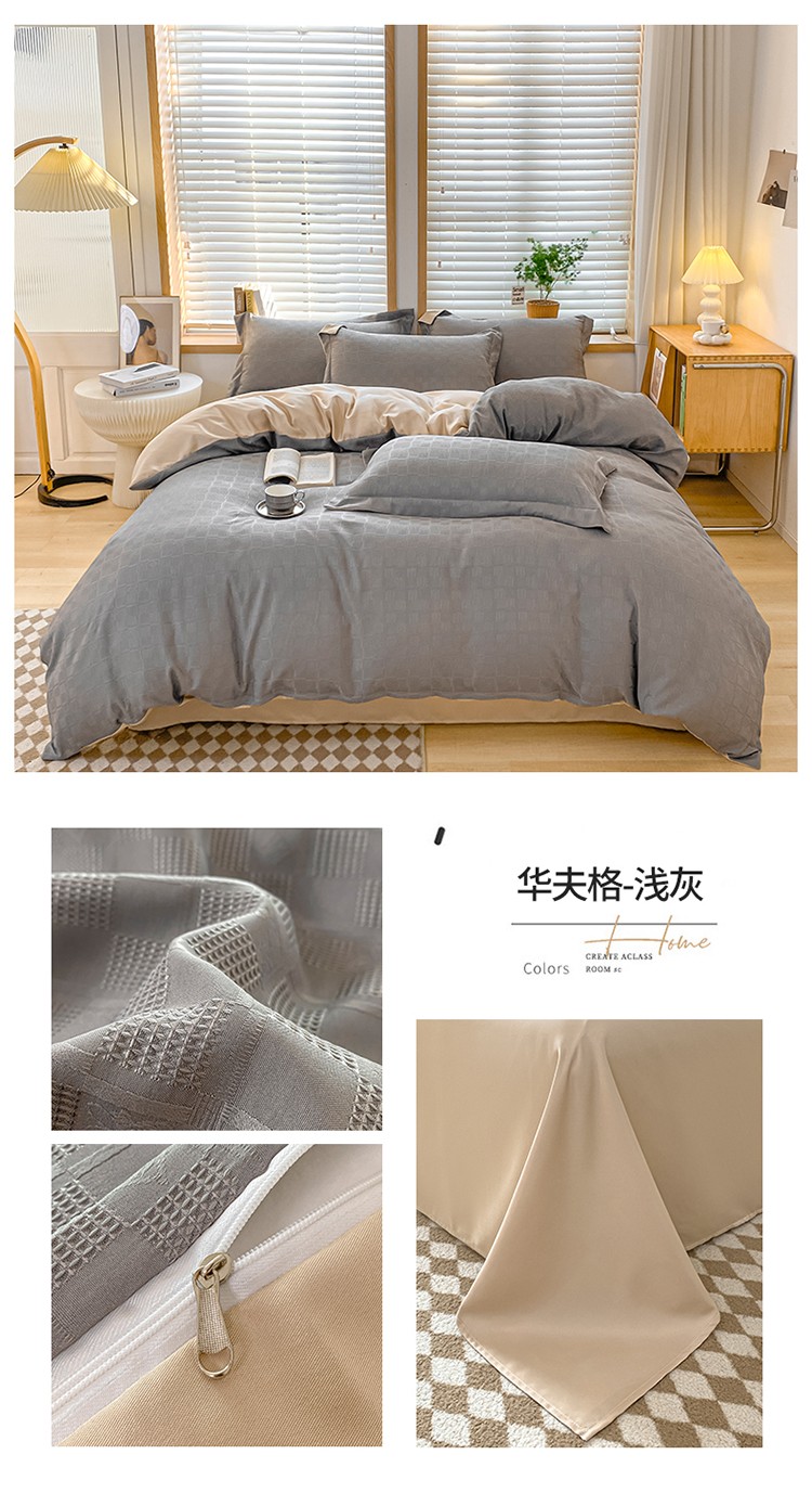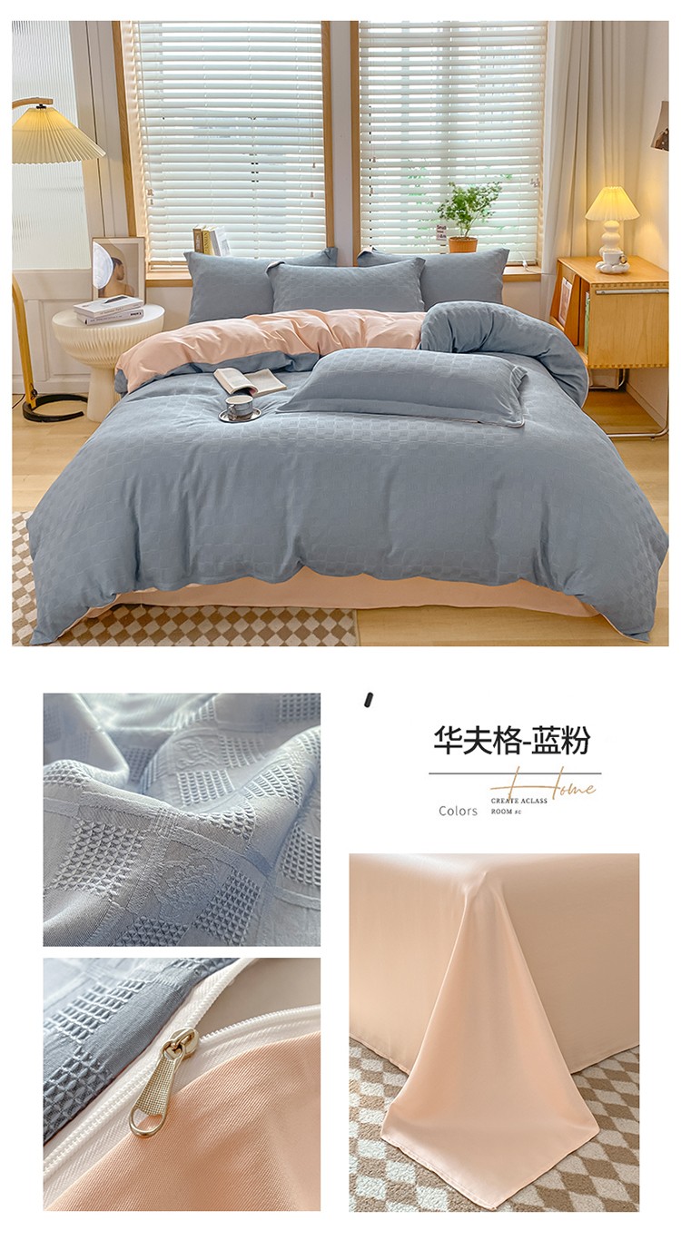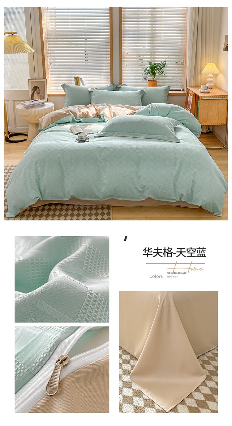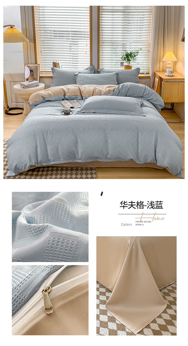 (总)骏腾家纺 2023新款华夫格冰丝四件套,华夫格-白绿,华夫格-粉玉,华夫格-蓝粉,华夫格-奶白,华夫格-浅灰,华夫格-浅蓝,华夫格-天空蓝
