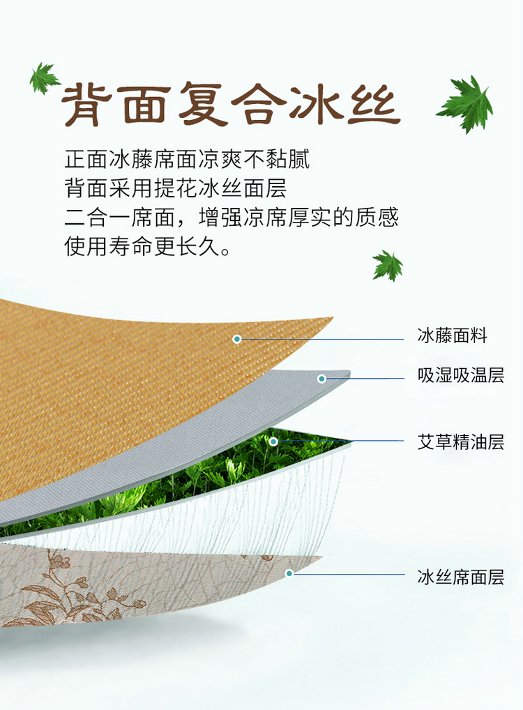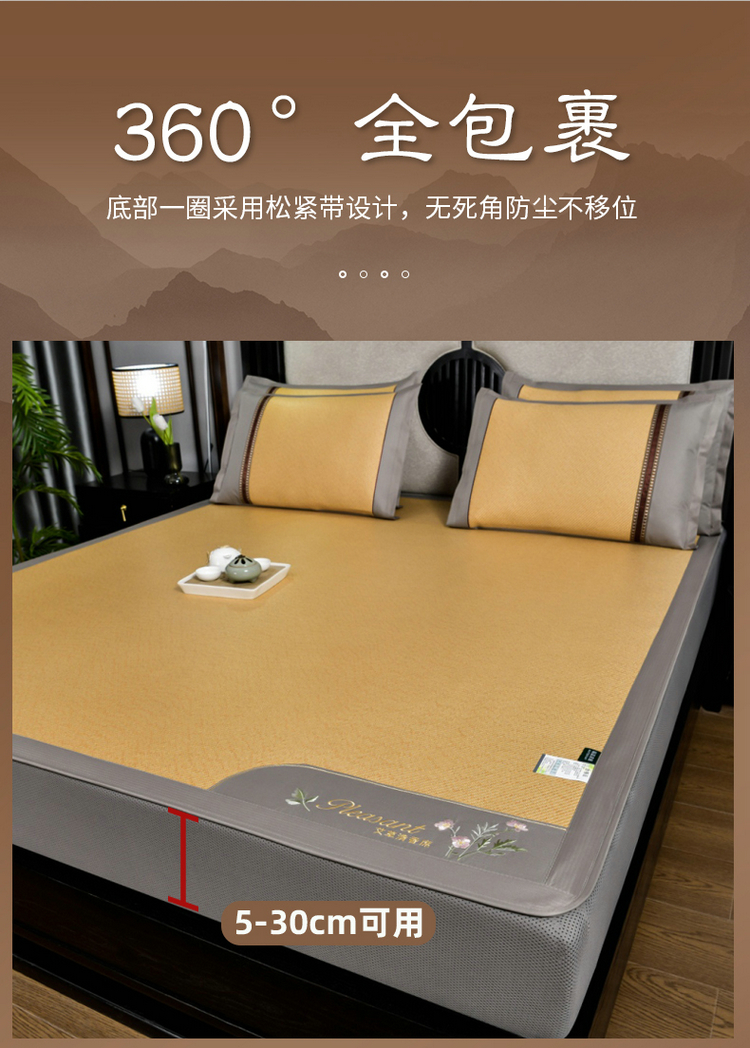 商品名称:小牛席业2023新款艾草清香冰藤席系列(床笠款) 浅咖
