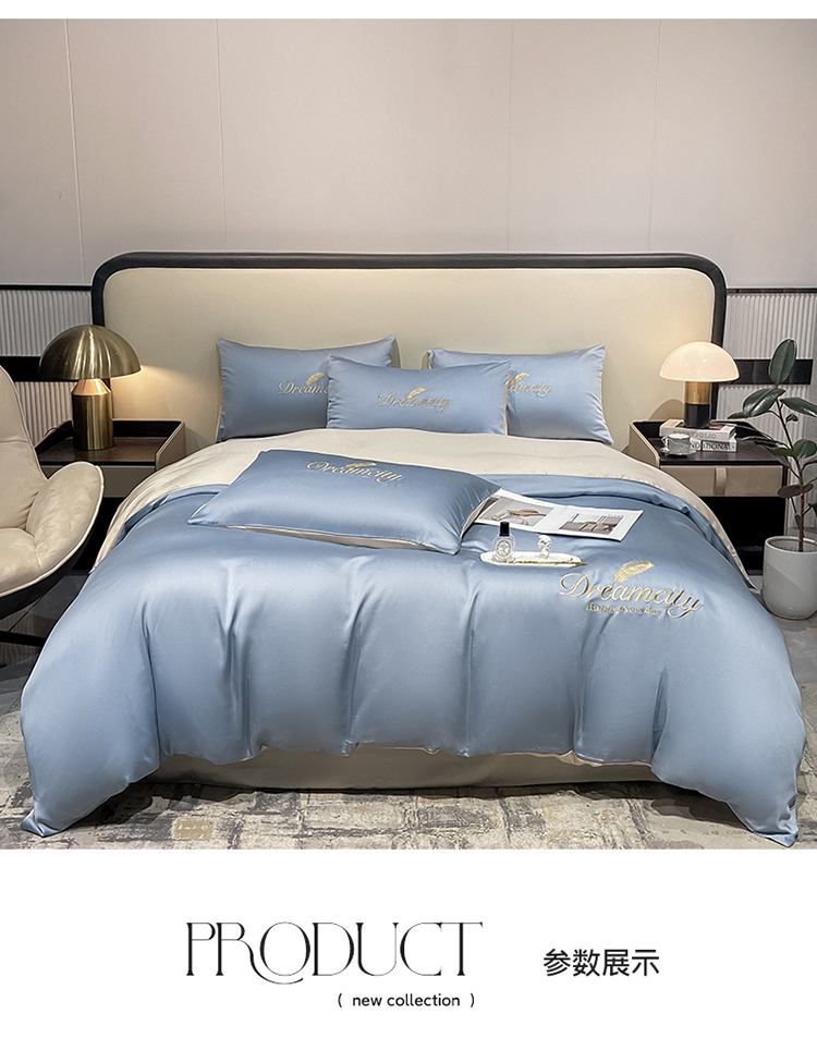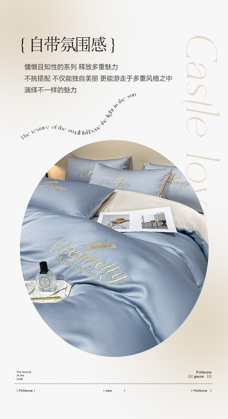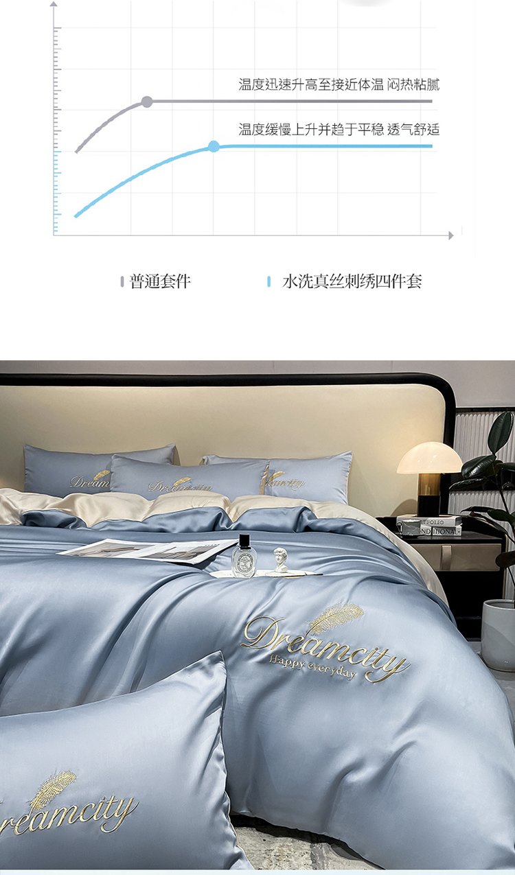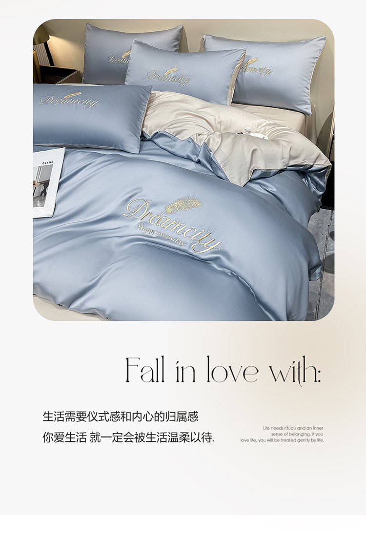 商品名称:花愿 2025新款水洗真丝刺绣四件套-羽梦系列 海青+奶茶