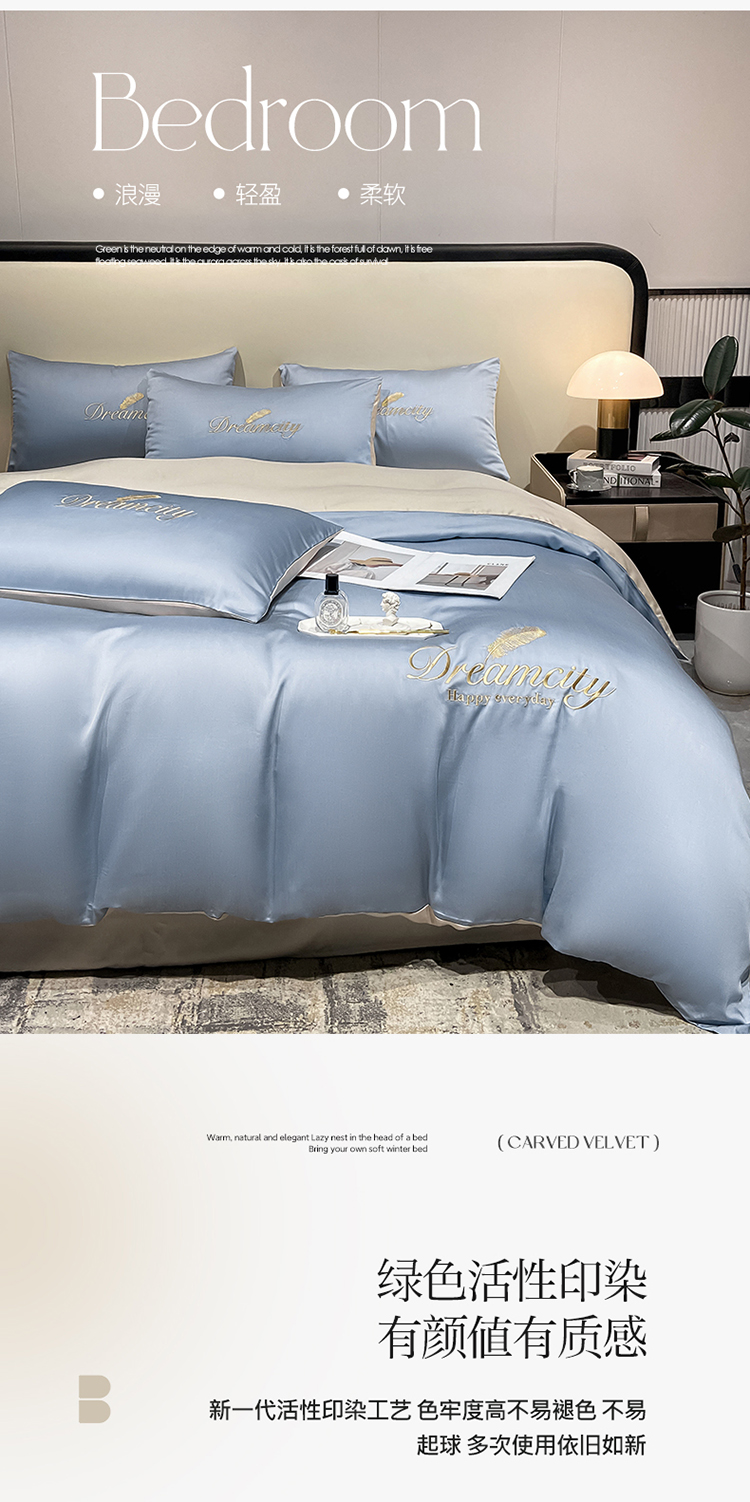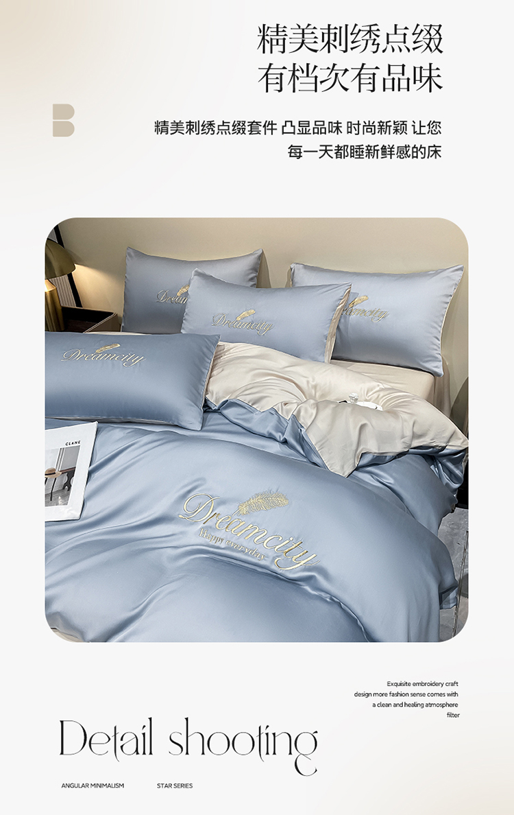 (总)花愿(原花纪) 2025新款加密水洗棉刺绣四件套-蓝羽,奶昔白,蔷薇紫,天空蓝,樱花粉