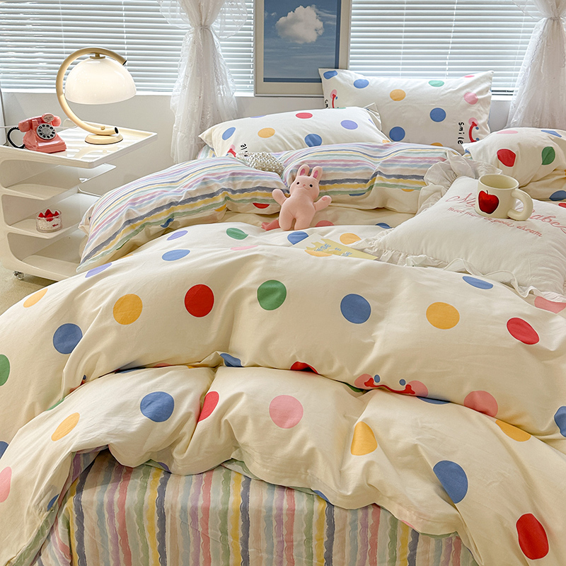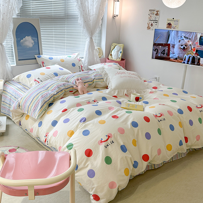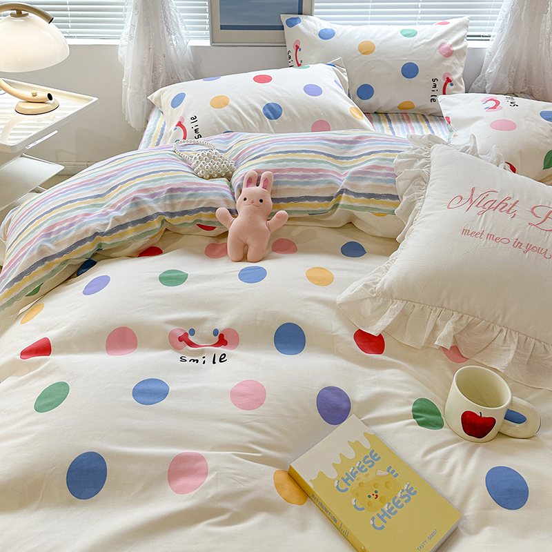 商品名称:昔可 2023新款全棉春日氛围系列四件套 微笑彩波点