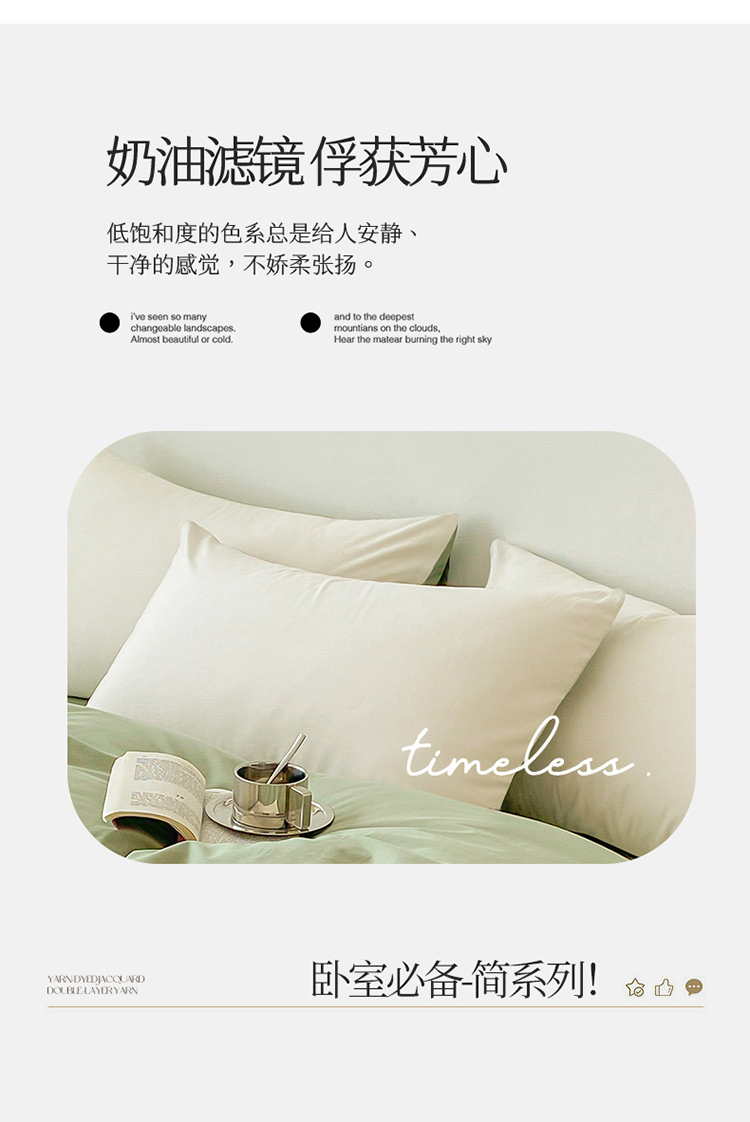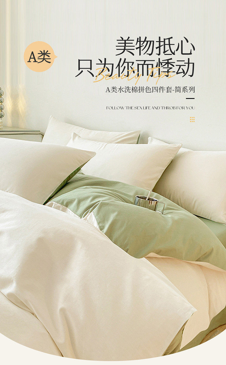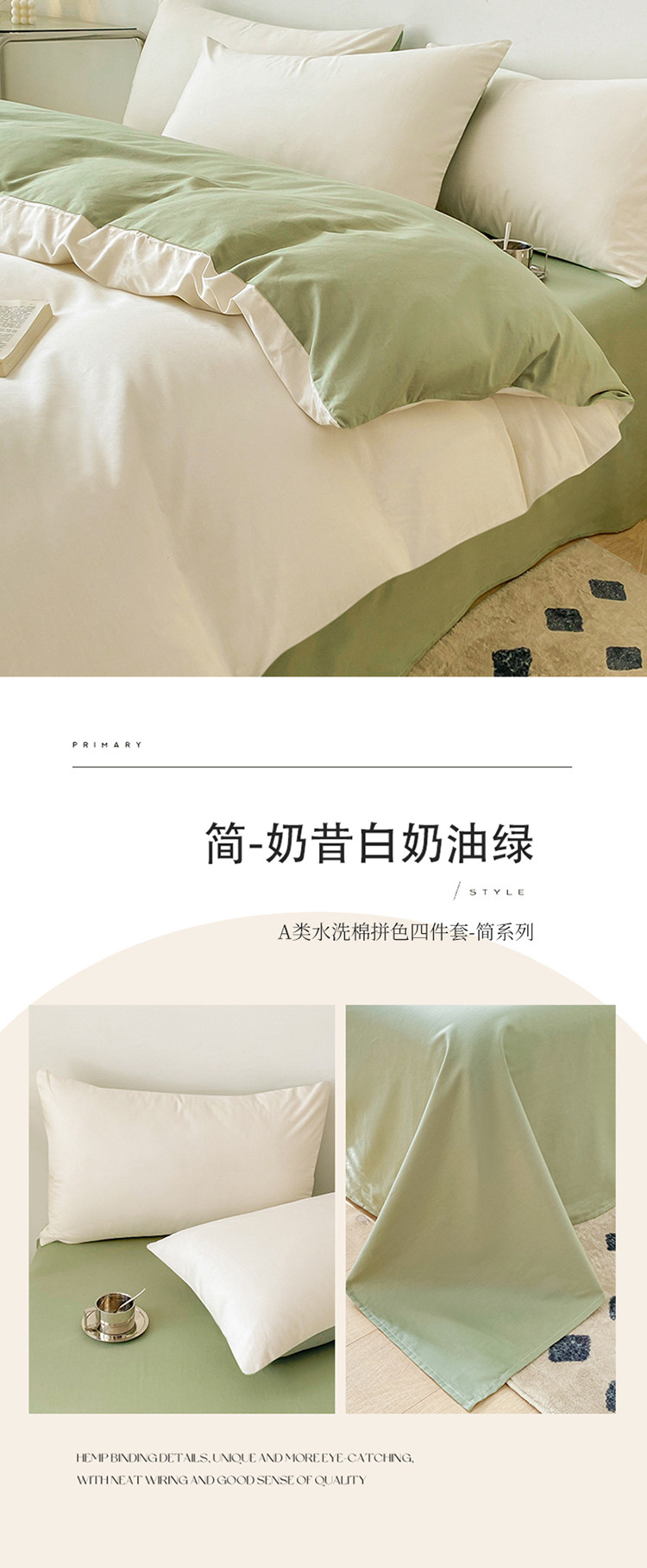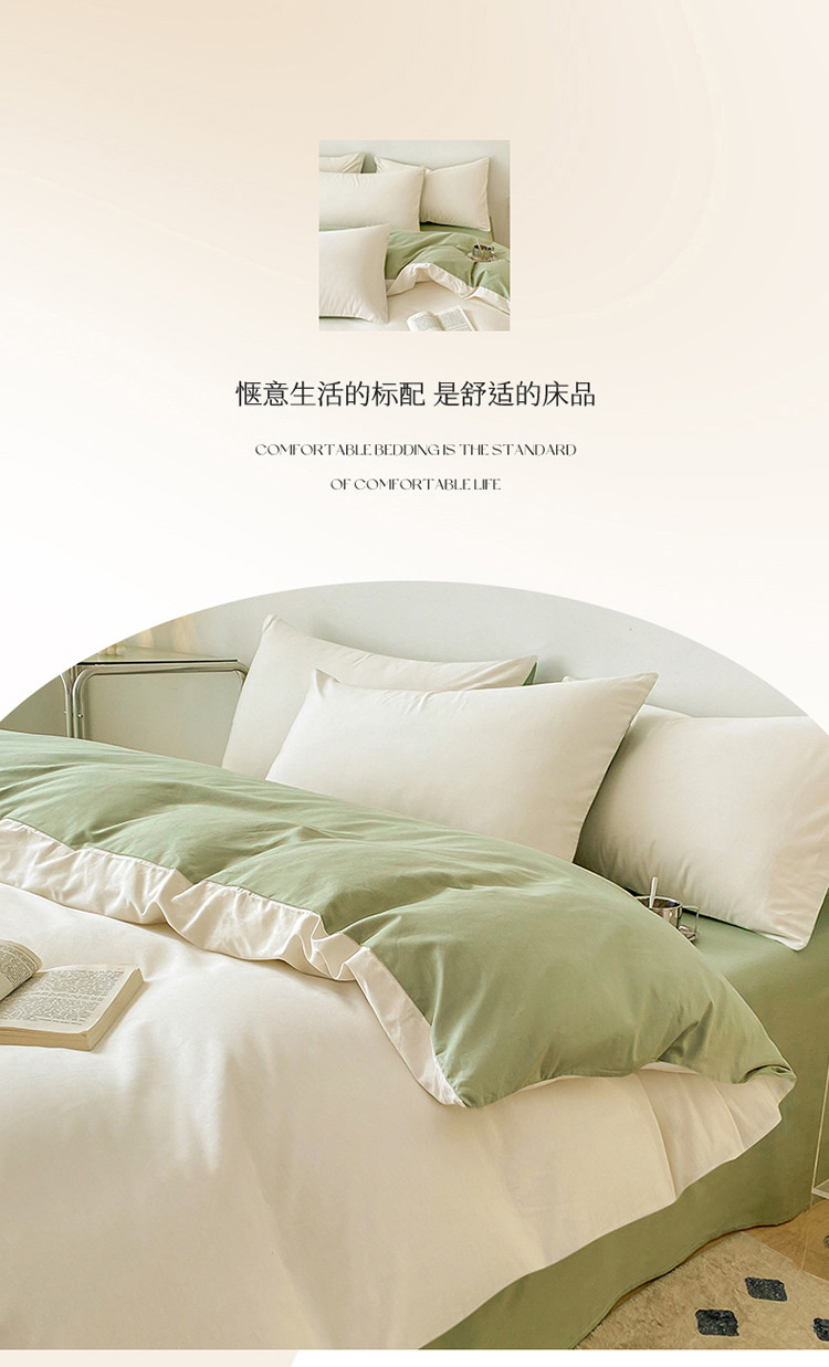 当前位置: 91家纺网 > 商品网购 > 床品套件 > 四件套 > 水洗棉四件套 > 眠帛 2023新款A类水洗棉拼色四件套—简系列 简--奶昔白奶油绿