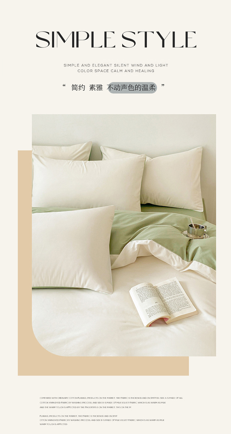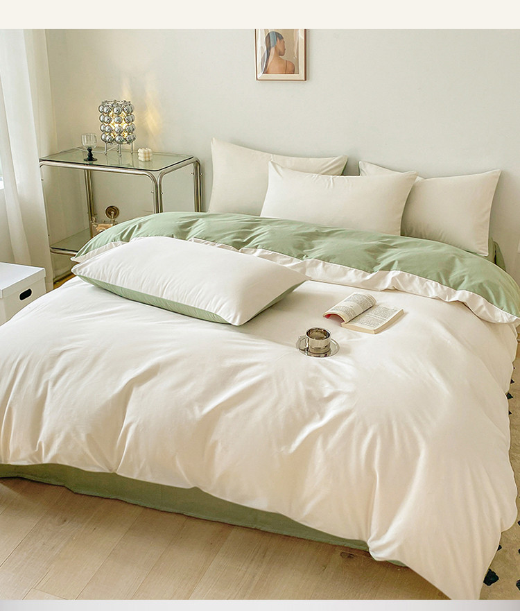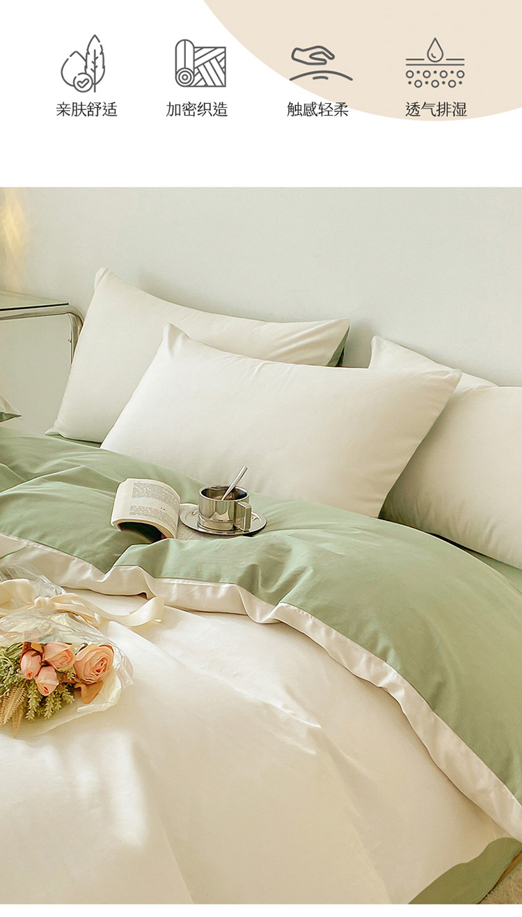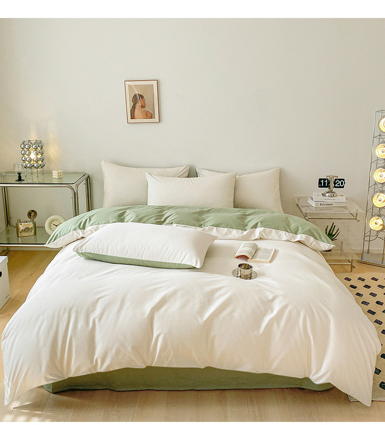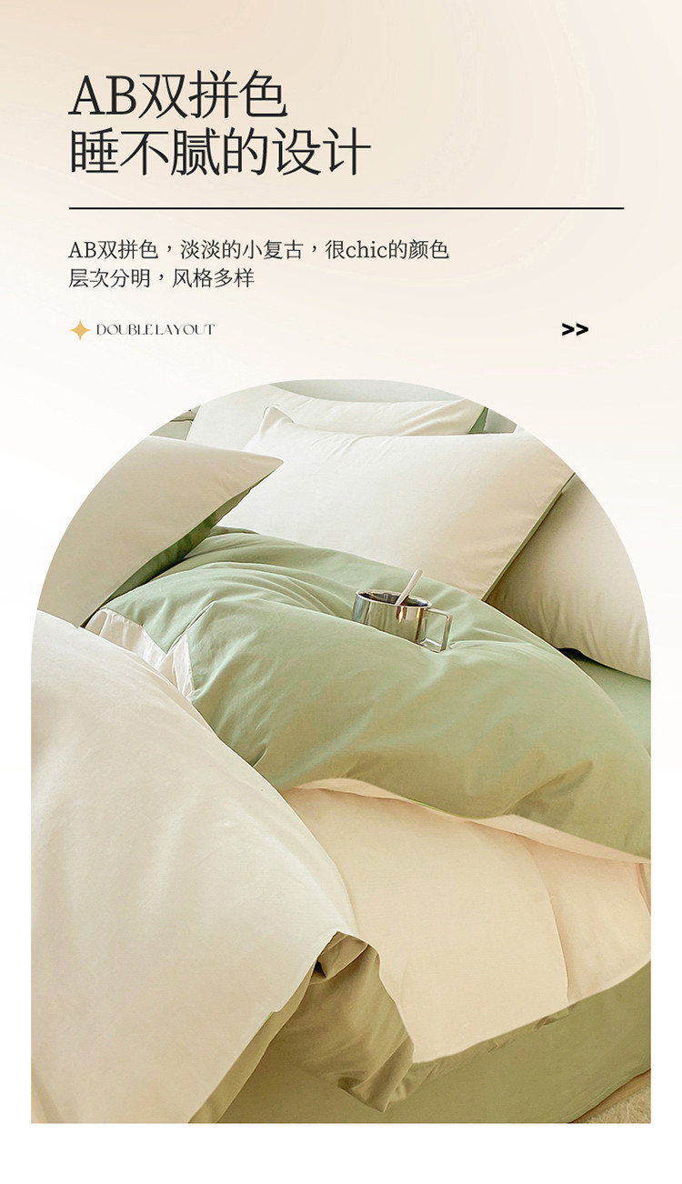 当前位置: 91家纺网 > 商品网购 > 床品套件 > 四件套 > 水洗棉四件套 > 眠帛 2023新款A类水洗棉拼色四件套—简系列 简--奶昔白奶油绿