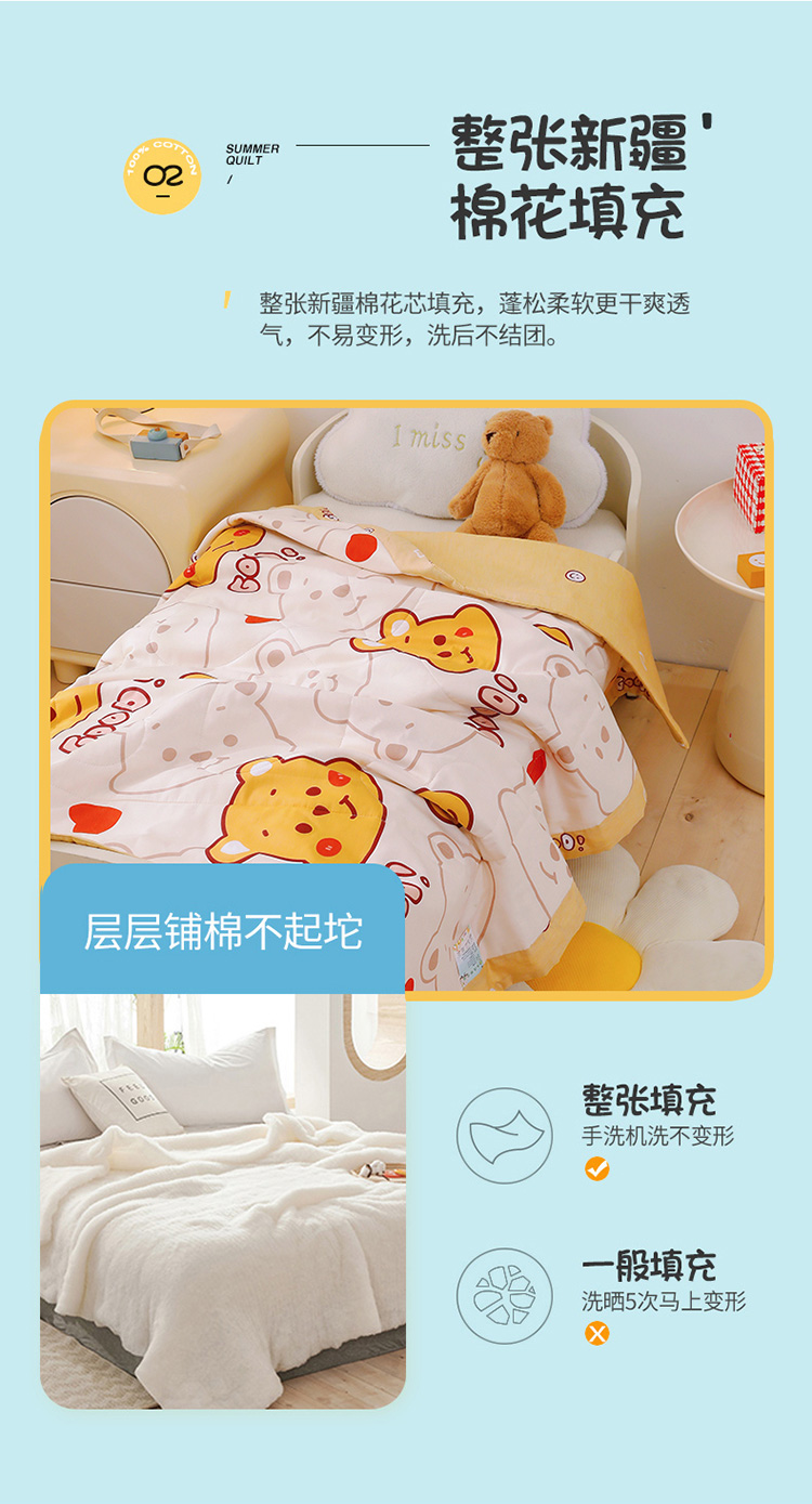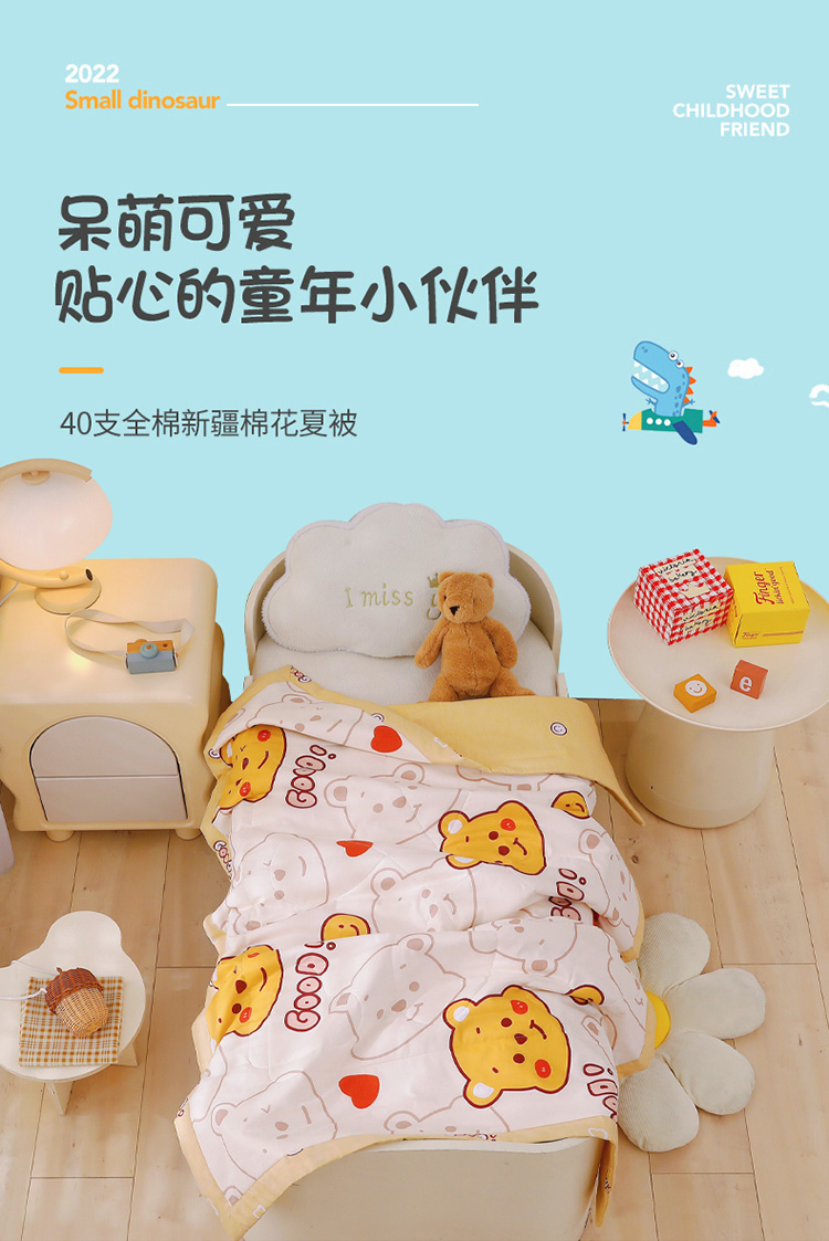 商品名称:芭伯妮 2025新款40支全棉新疆棉花幼儿园儿童夏被 欢乐萌熊