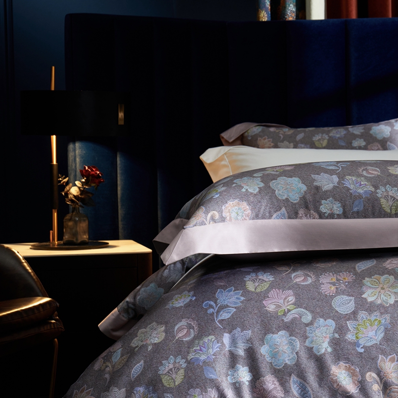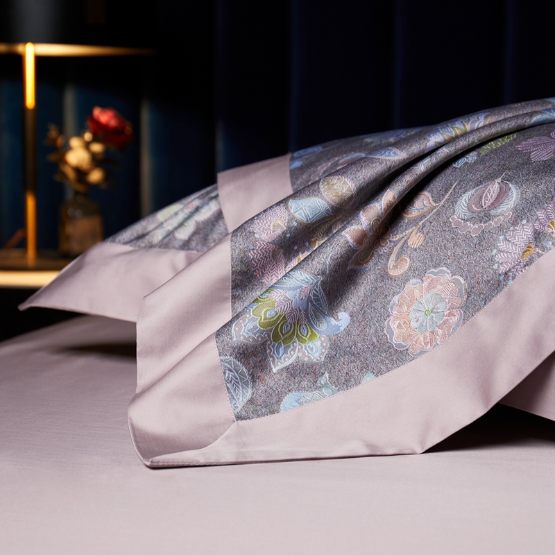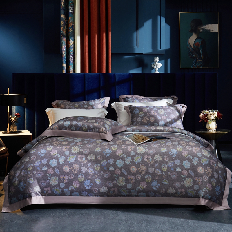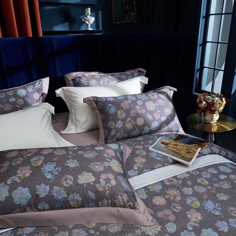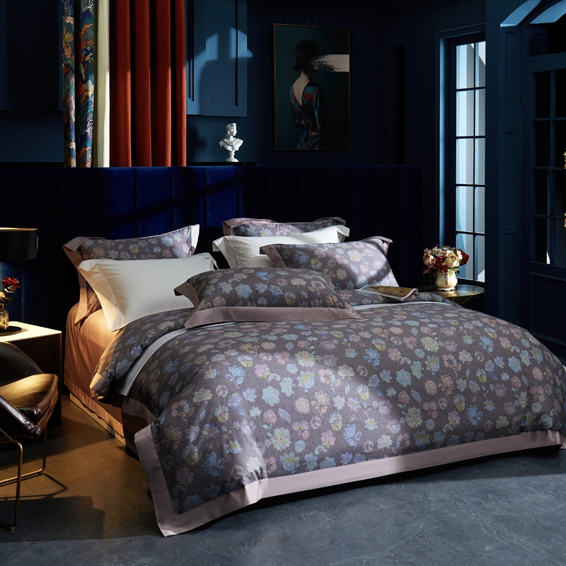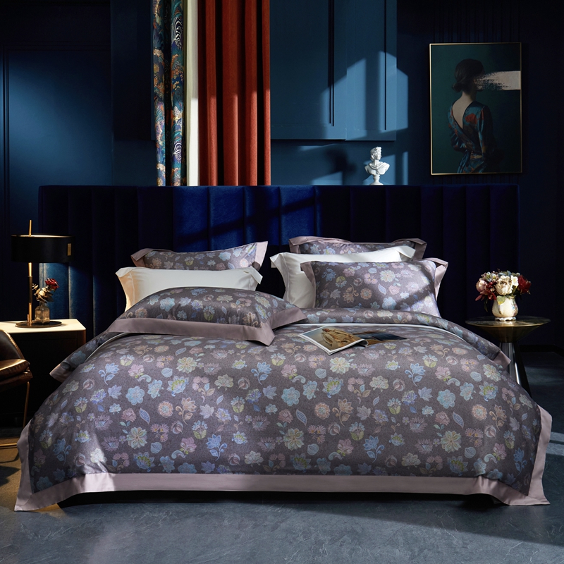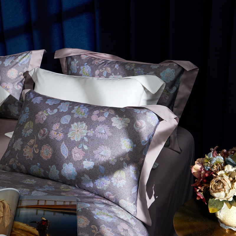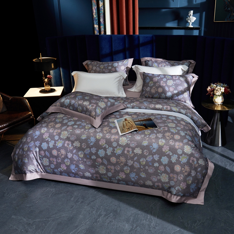 缔缦 2023新款100s长绒棉数码印花拼角款四件套系列-斯佩罗 斯佩罗 紫灰
